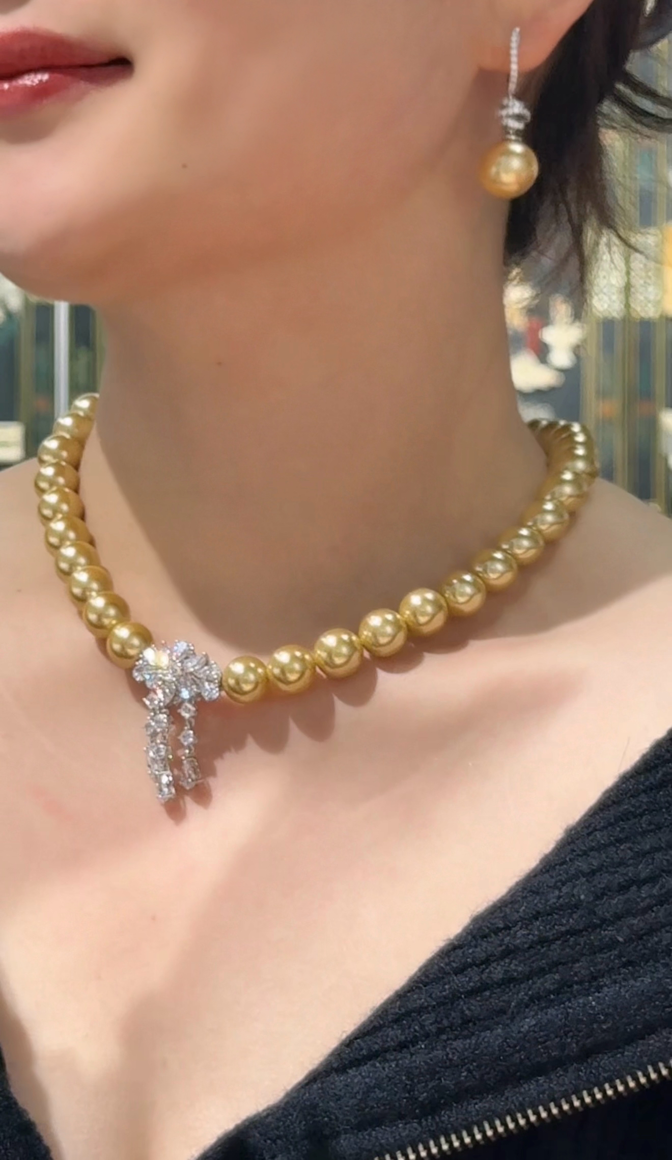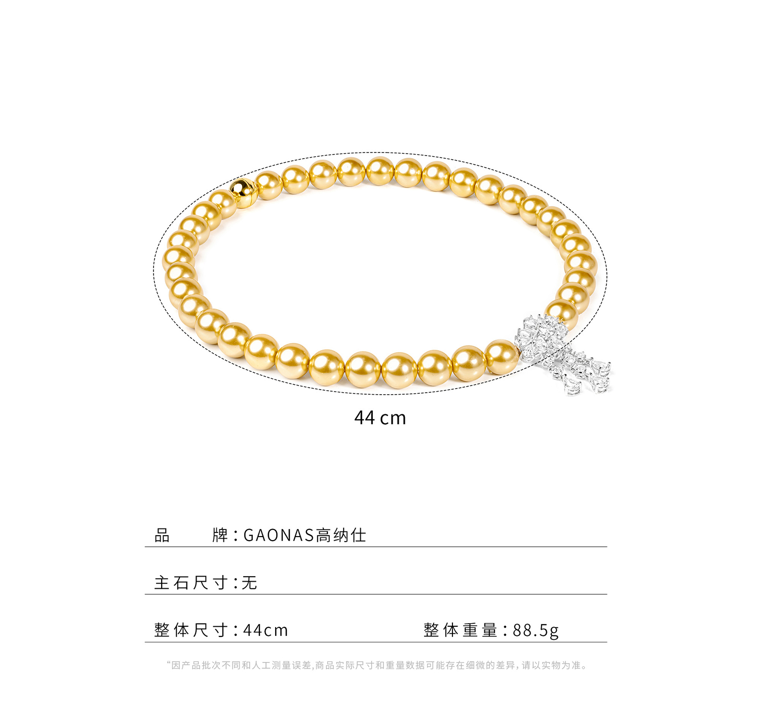 GAONAS高纳仕 仿真珍珠12mm金色珠项链