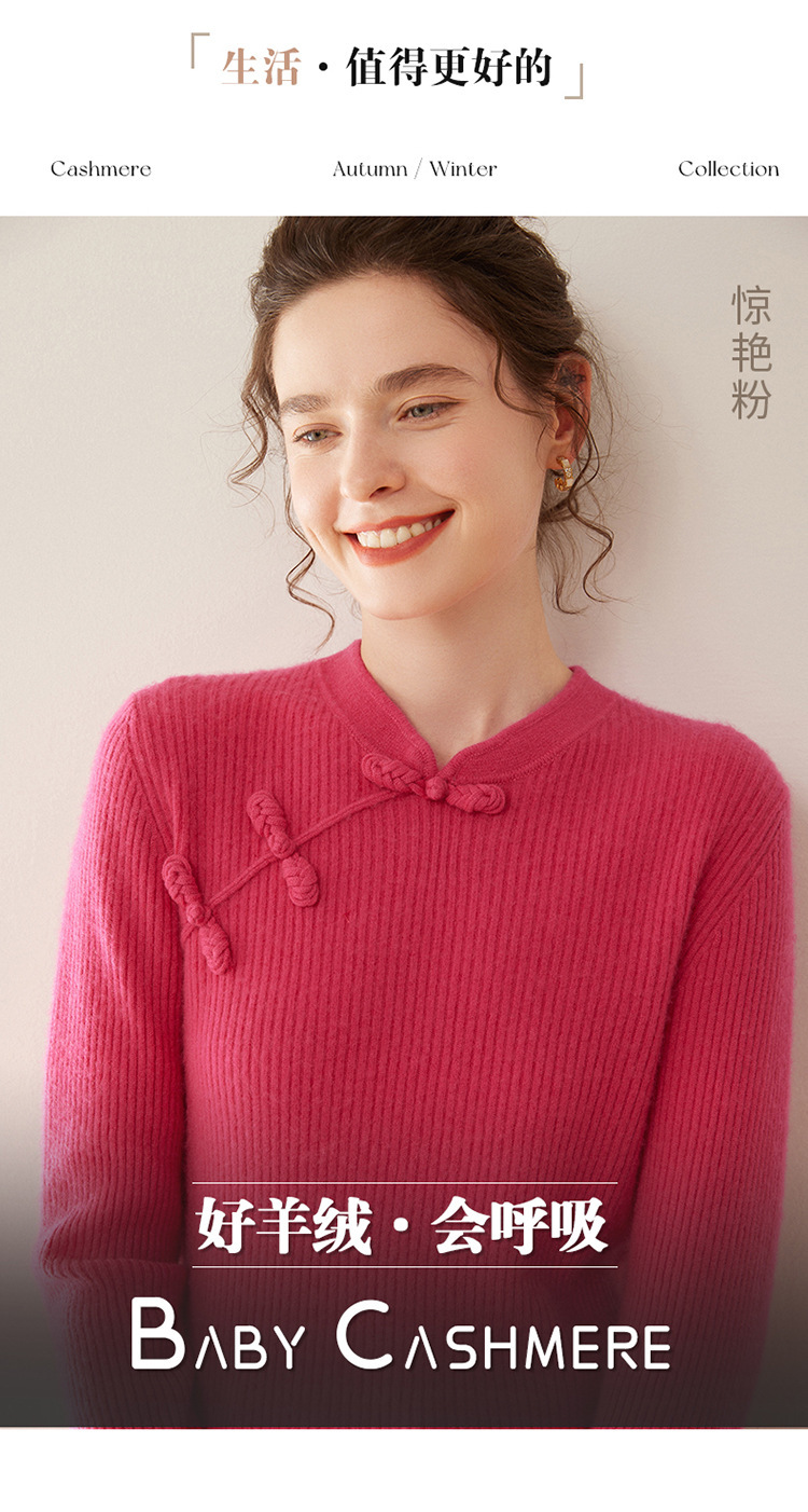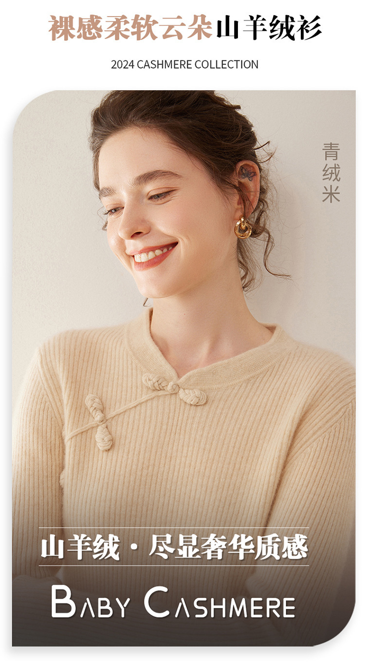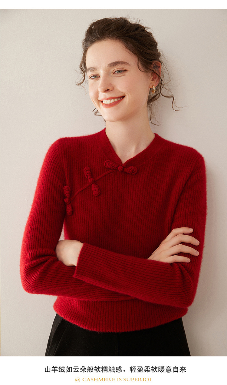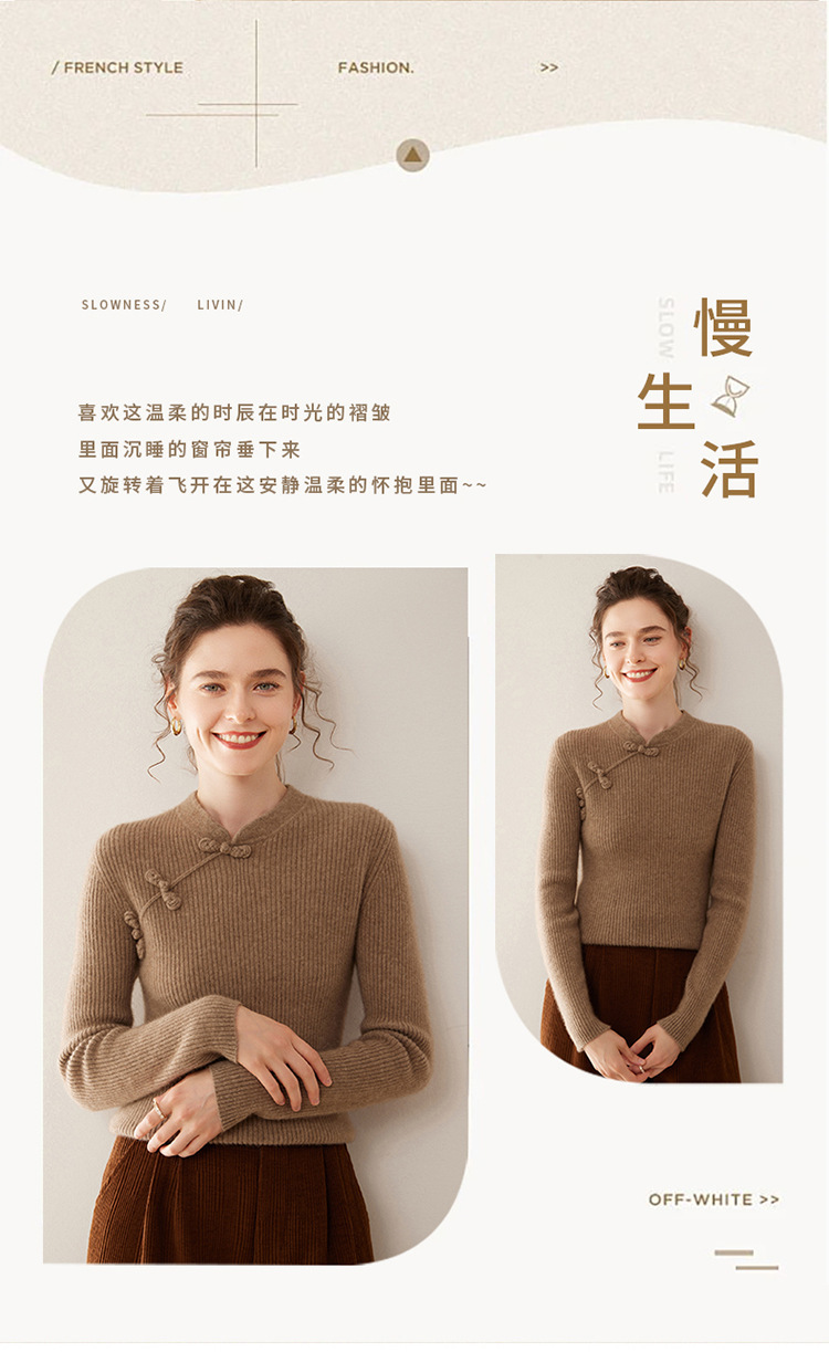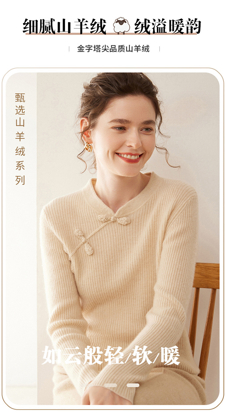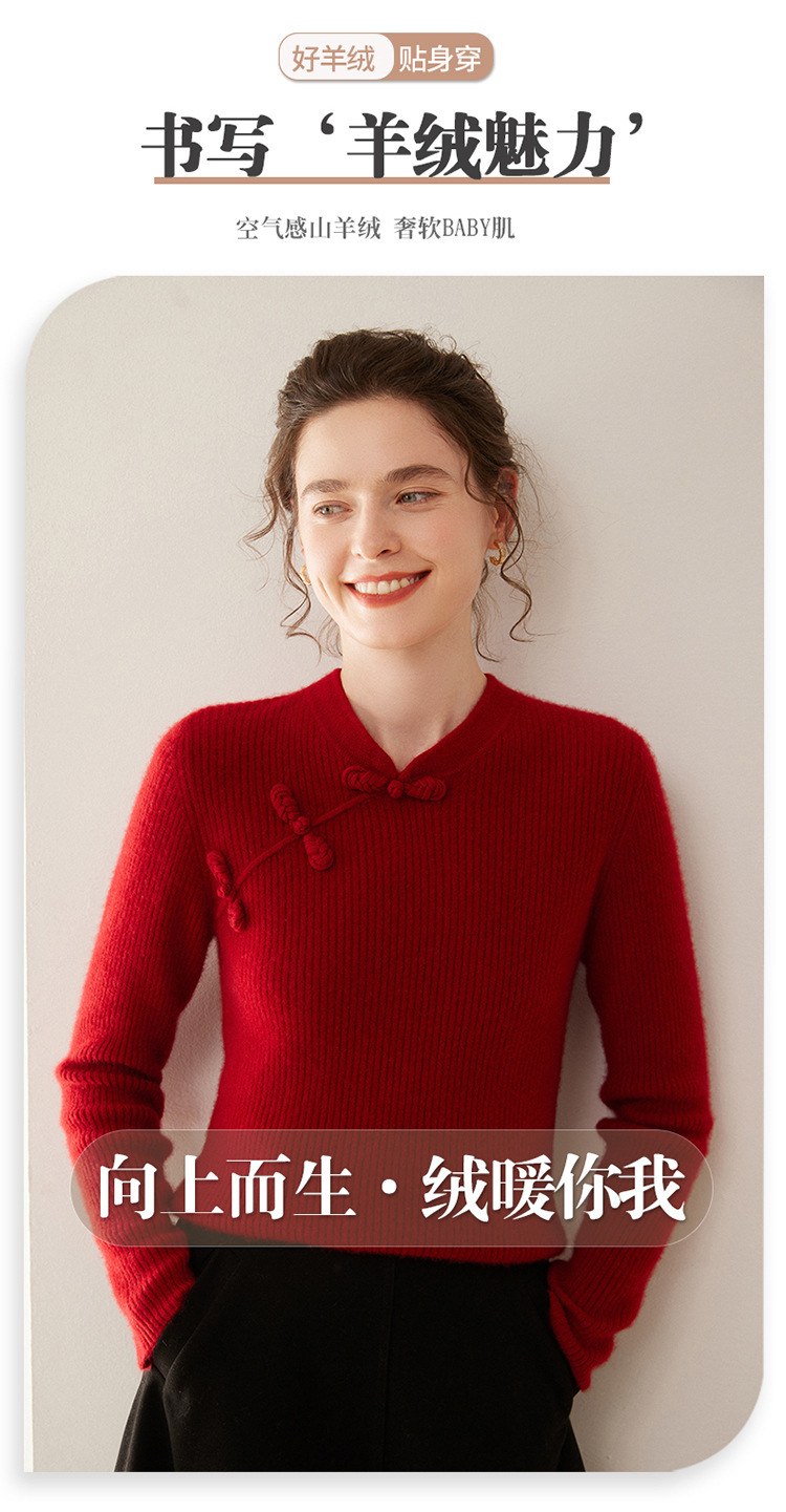 【高货QJ】全新升级【铂金会员422/天猫569/差价147】(14127) 洛诗琳秋冬新款中式羊绒衫国风盘扣设计复古羊毛显瘦上衣