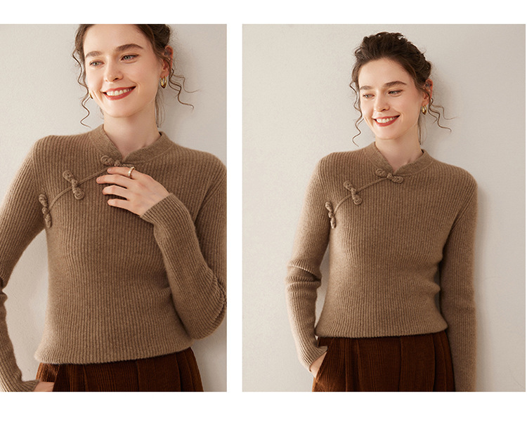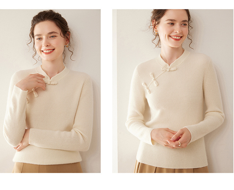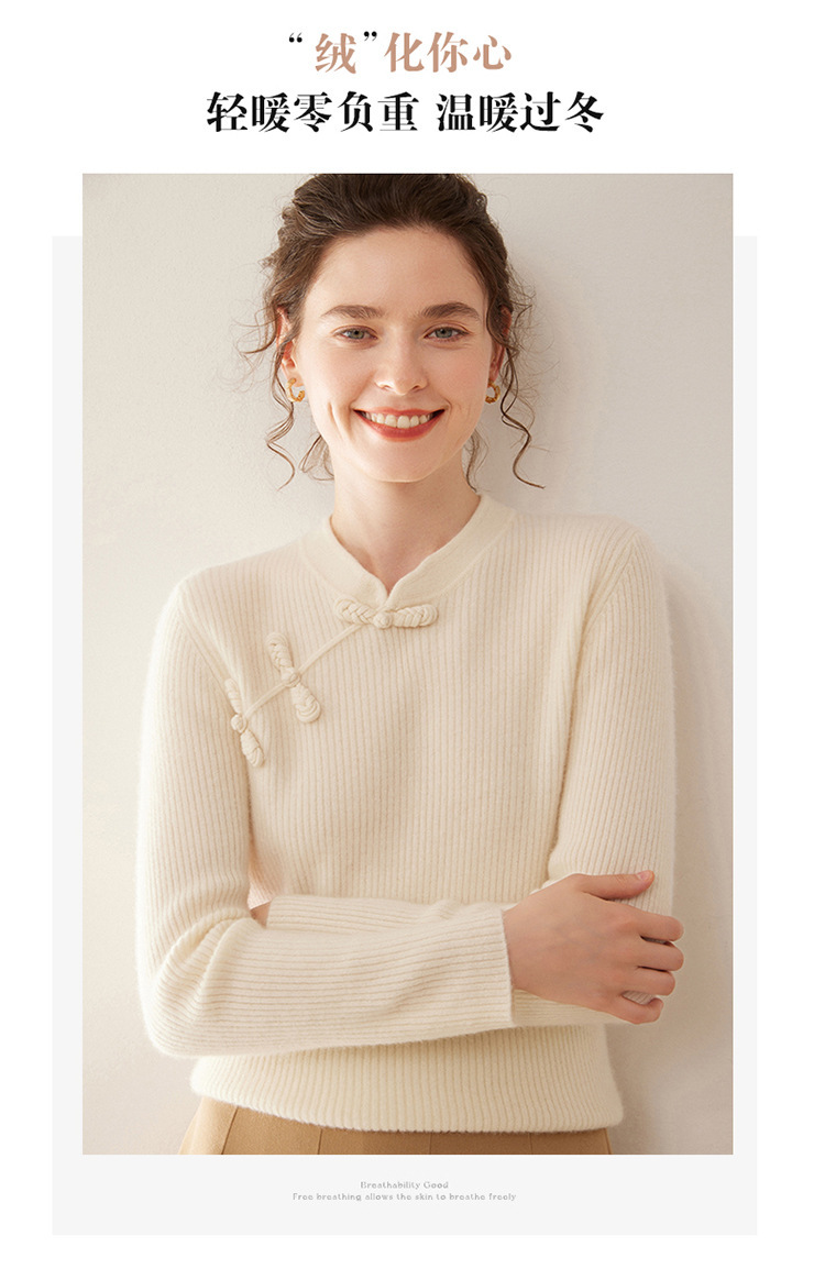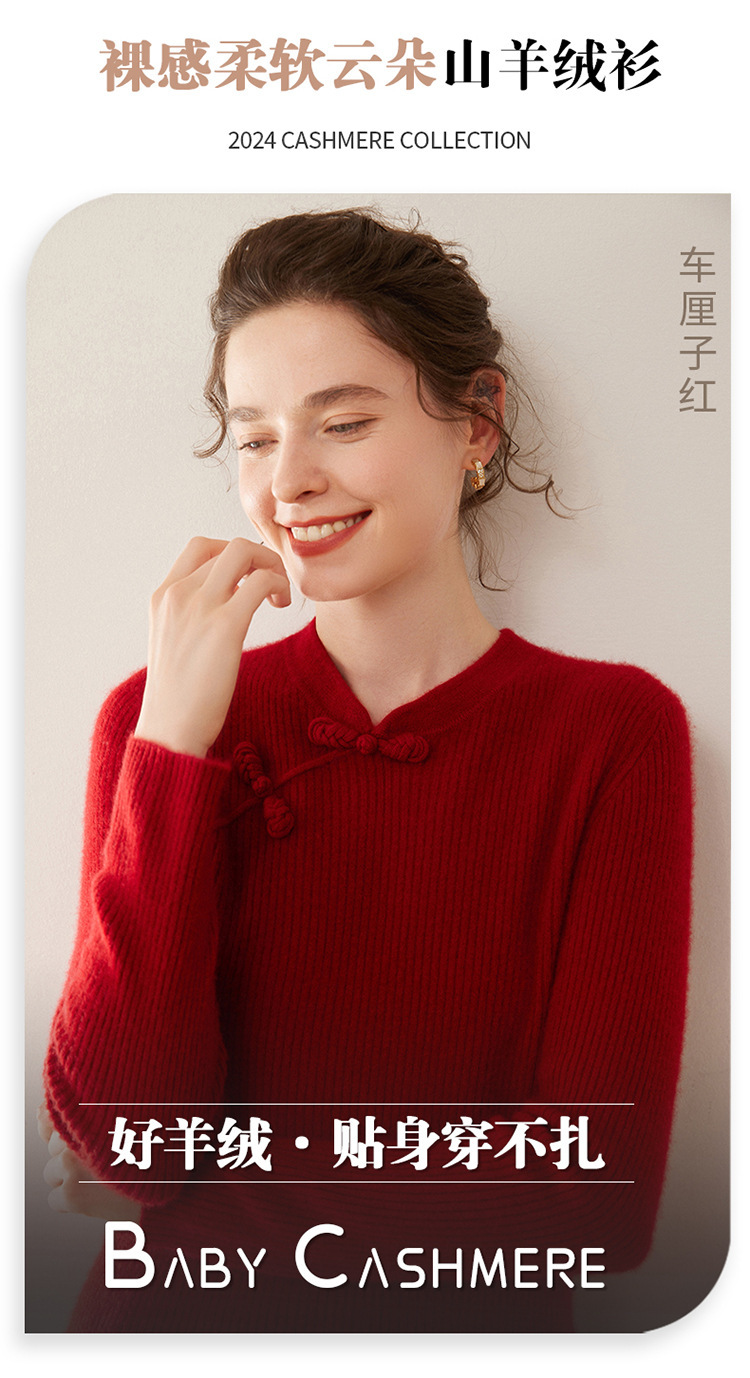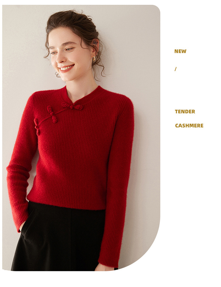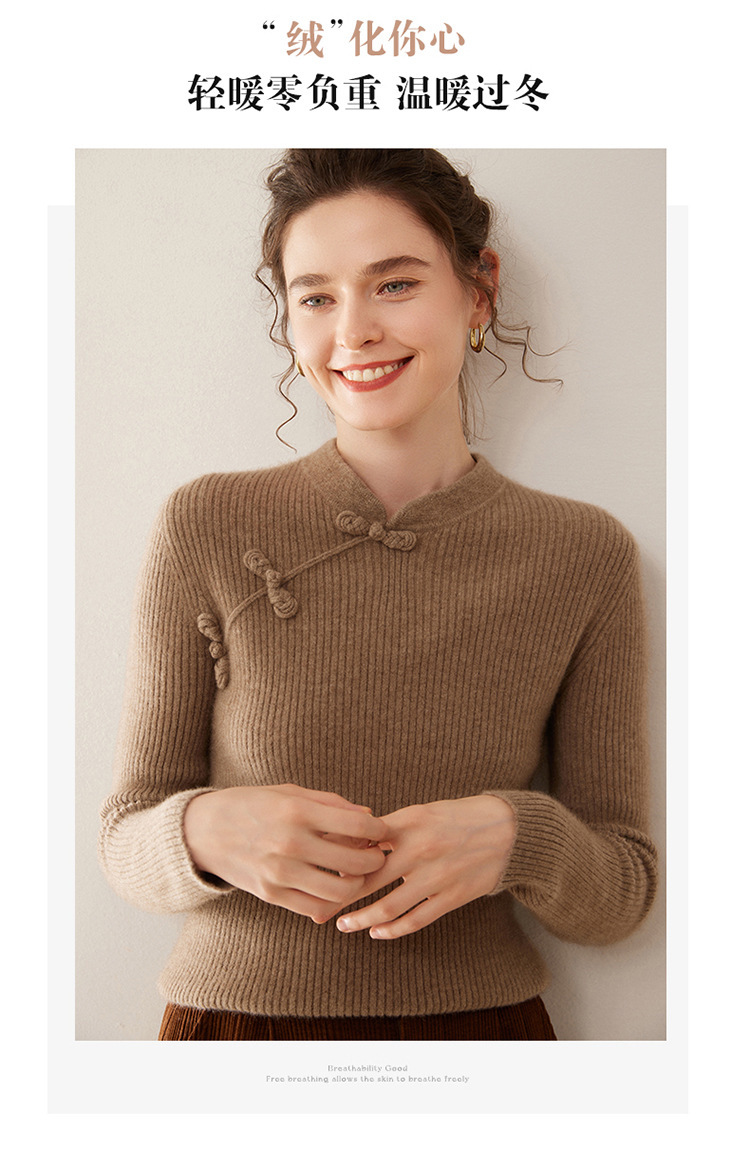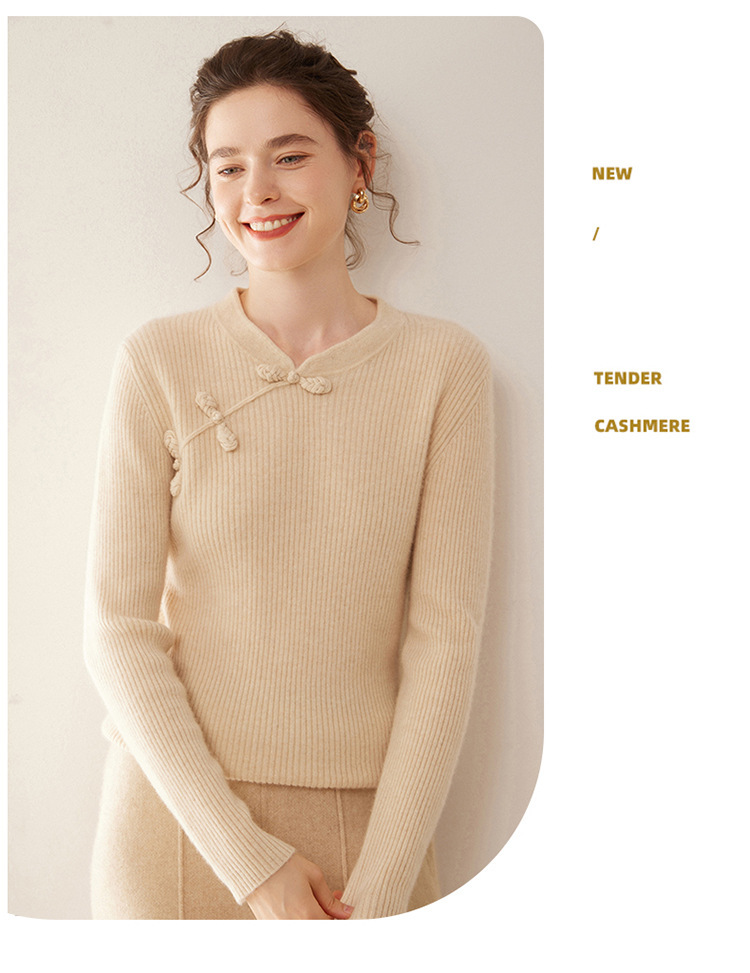 【高货QJ】全新升级【铂金会员422/天猫569/差价147】(14127) 洛诗琳秋冬新款中式羊绒衫国风盘扣设计复古羊毛显瘦上衣