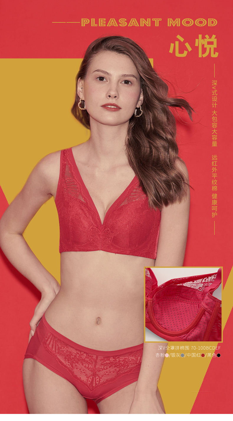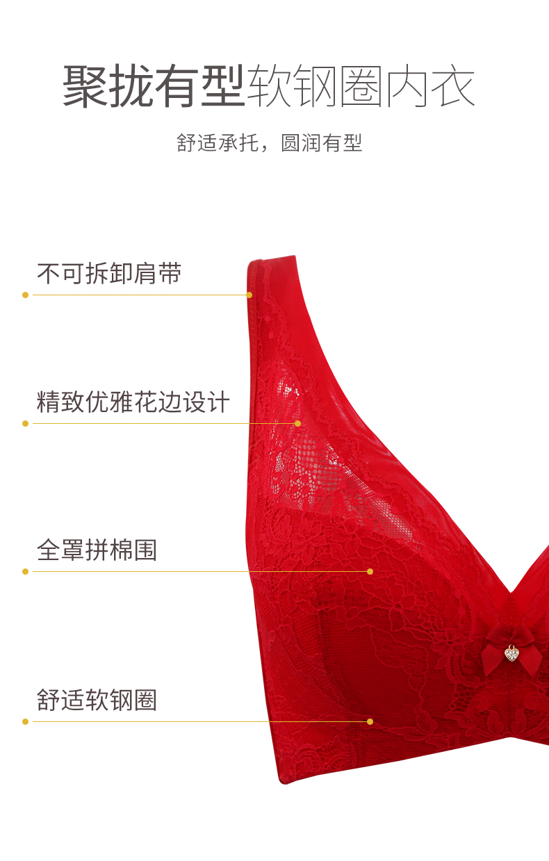 贝佳人文胸新款“心悦”深V全罩背心拼棉围-BW982221