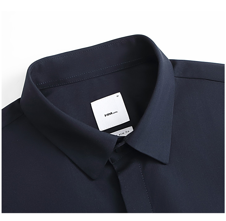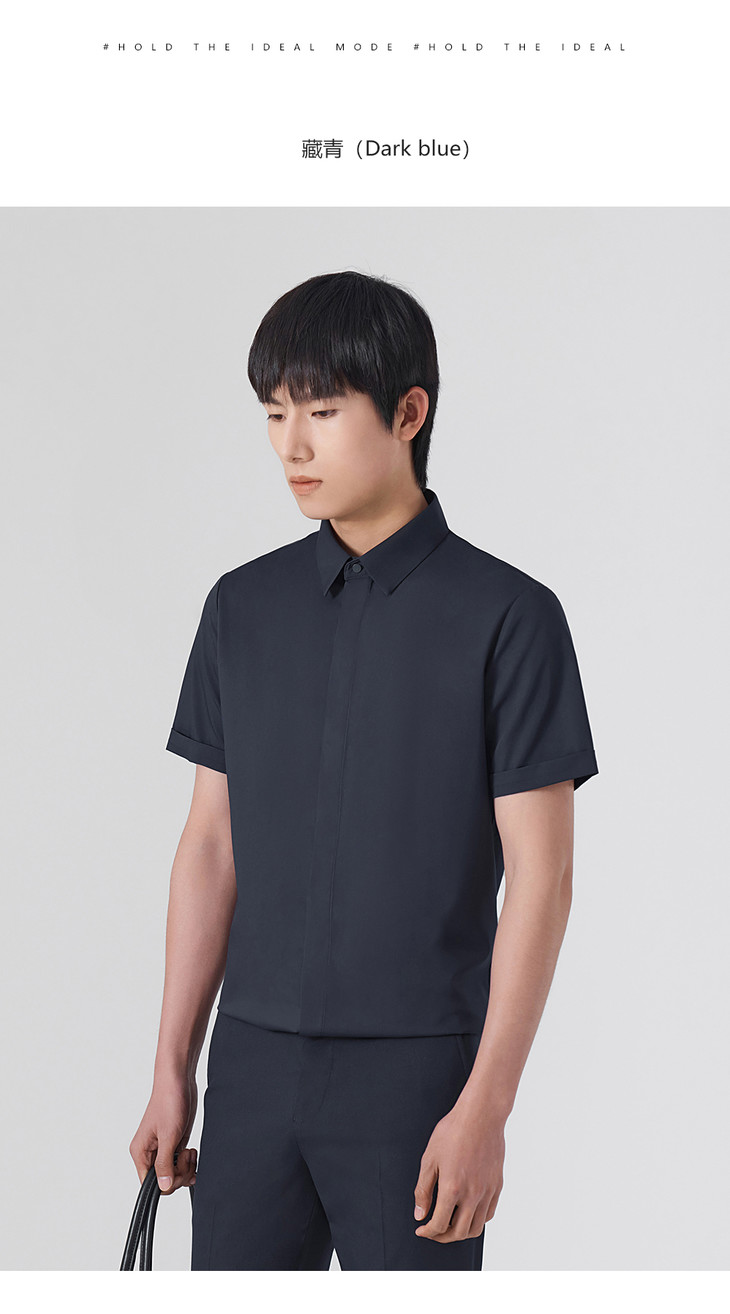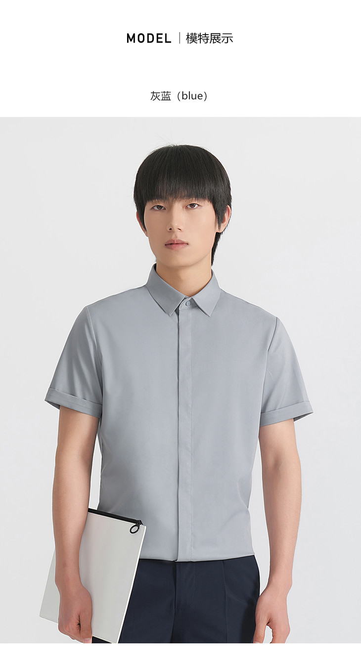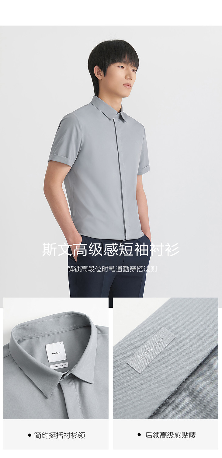 HIM漢崇 抗皱免烫修身正装短袖衬衫男商务通勤蓝色衬衣 2026夏季