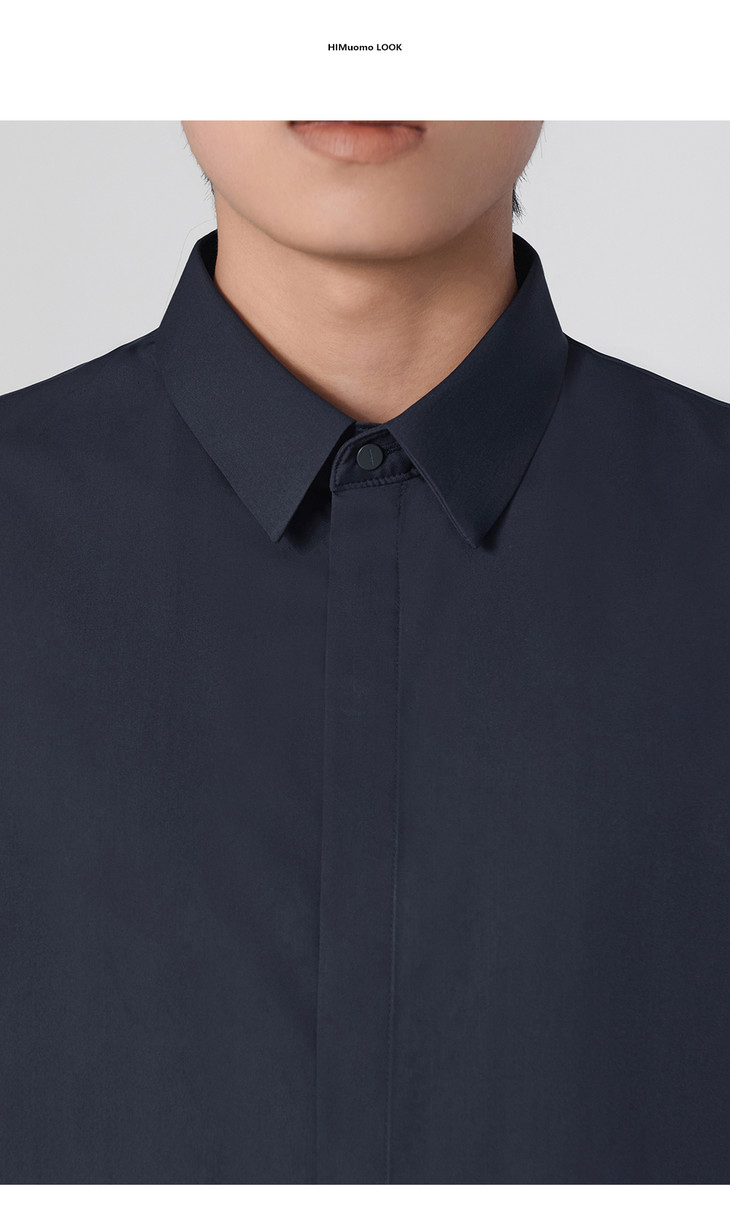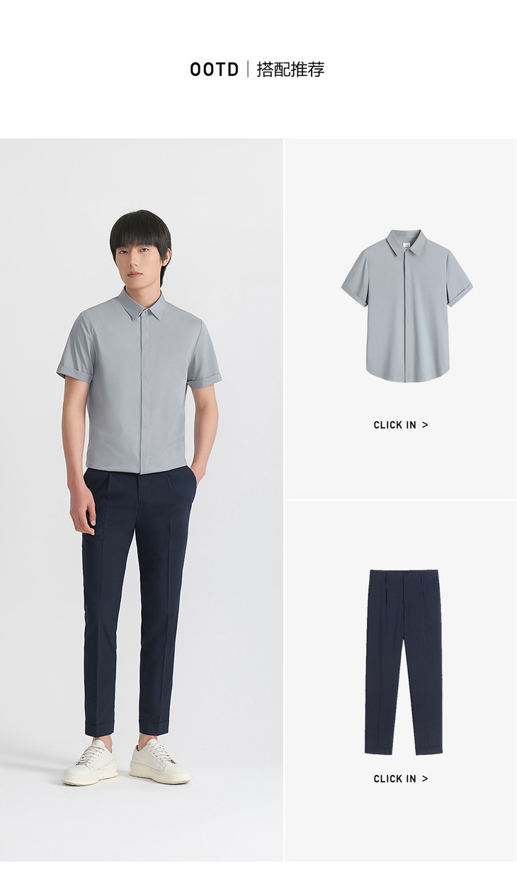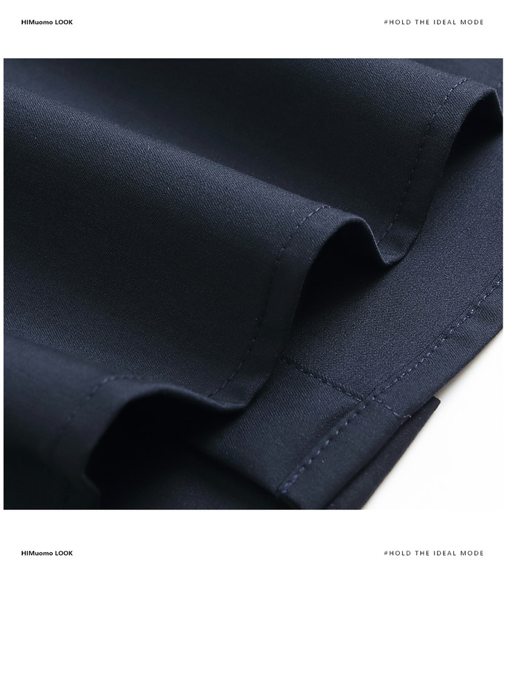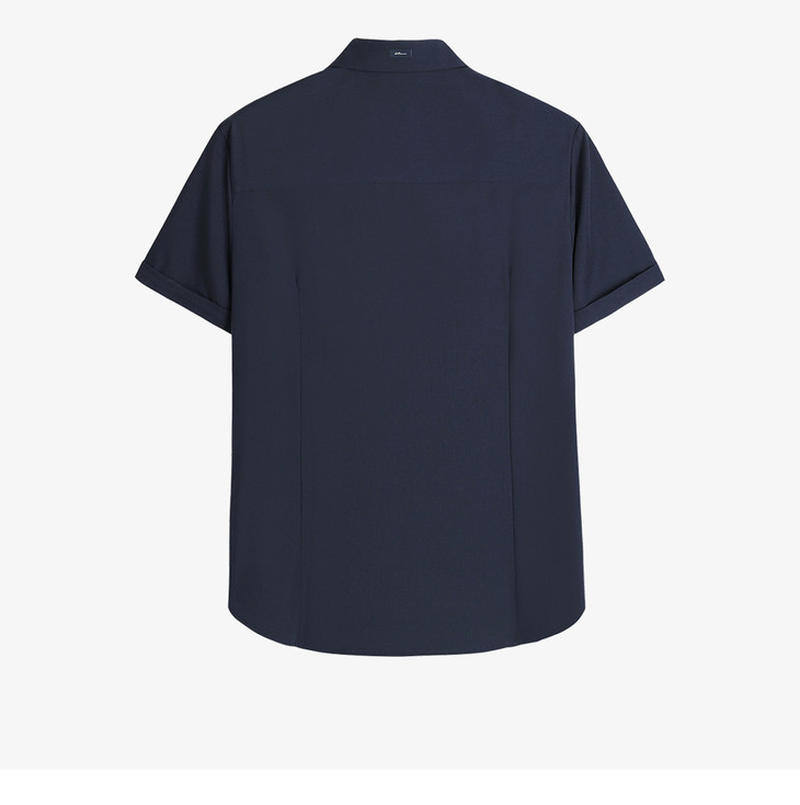 HIM漢崇 抗皱免烫修身正装短袖衬衫男商务通勤蓝色衬衣 2026夏季