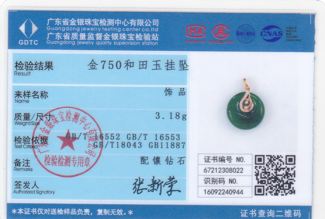 玉石尺寸:高抵扣直径18mm/菠菜绿 配镶:钻石