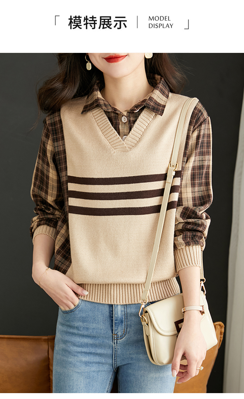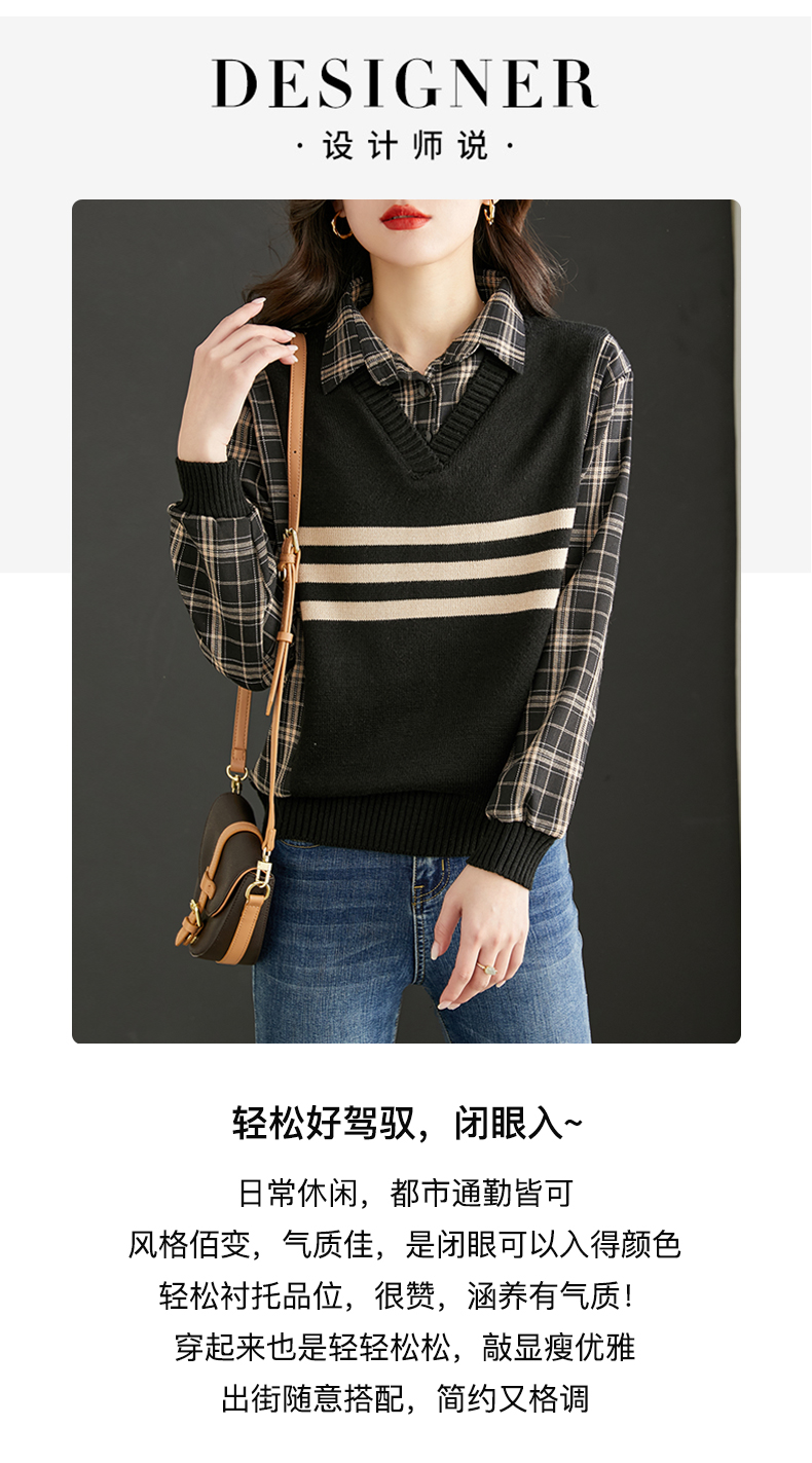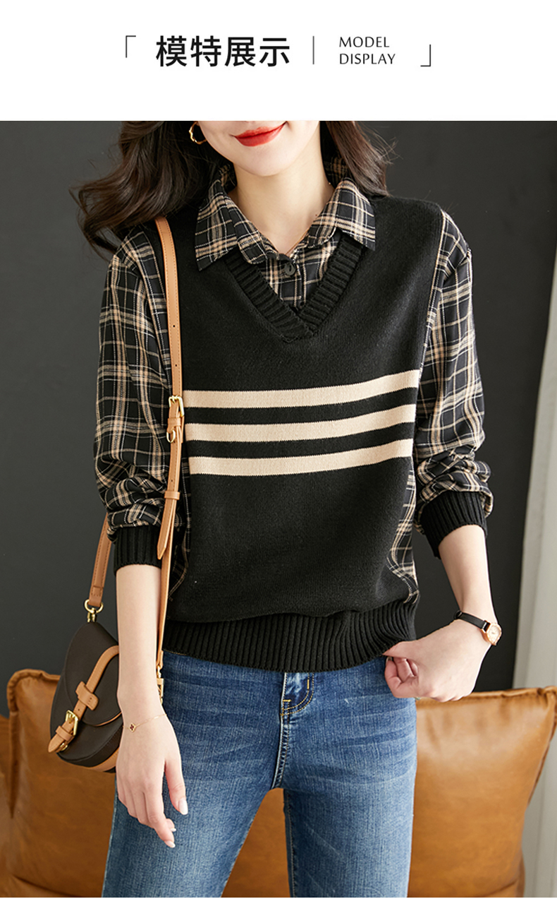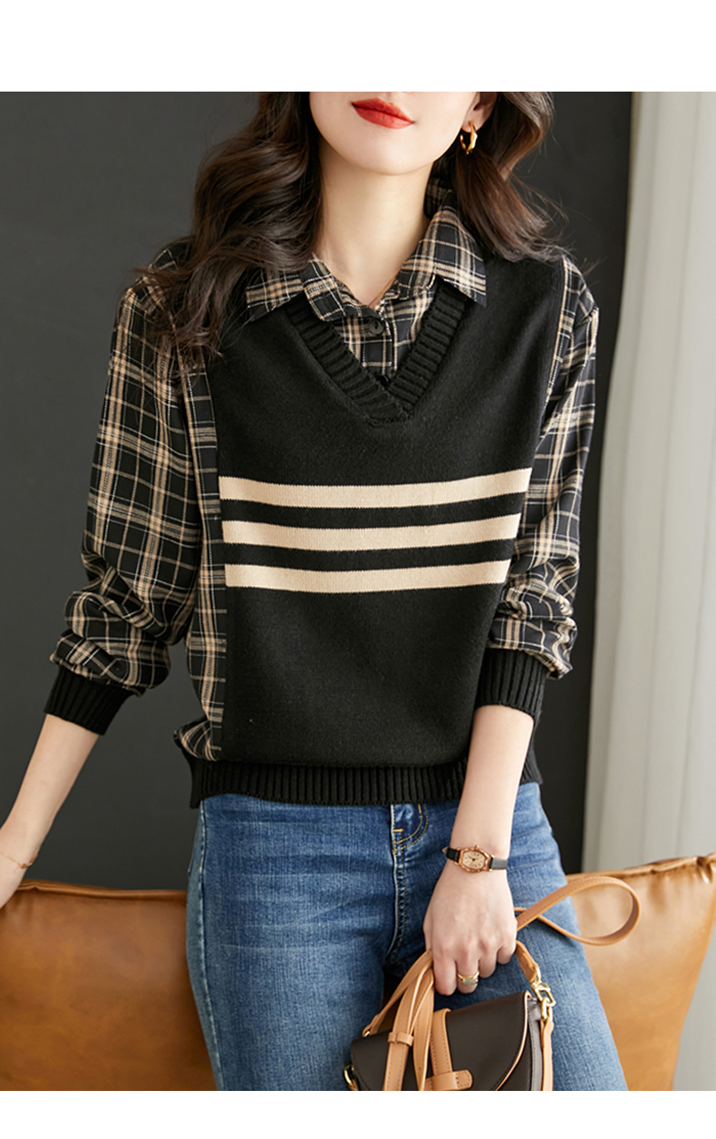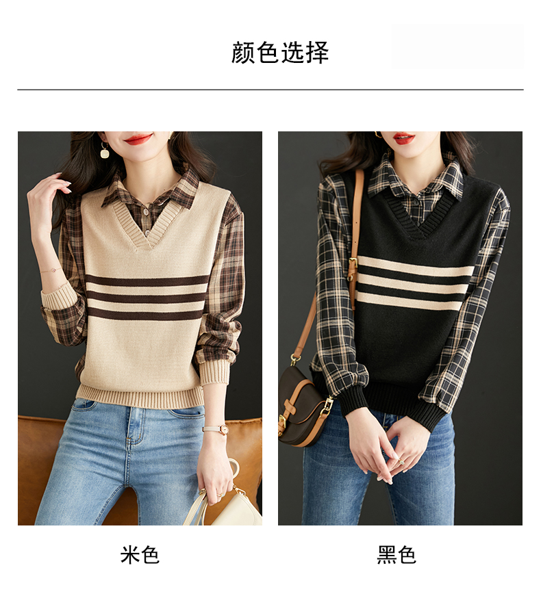 清新减龄,翻领拼接格纹假两件衬衫HR-LDSB232
