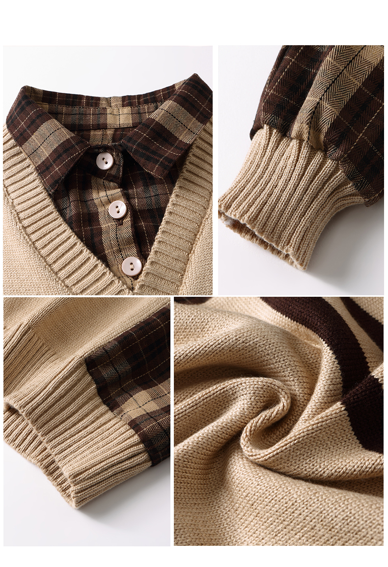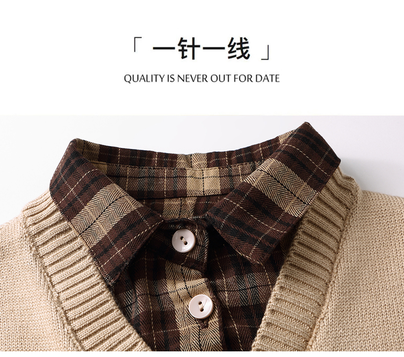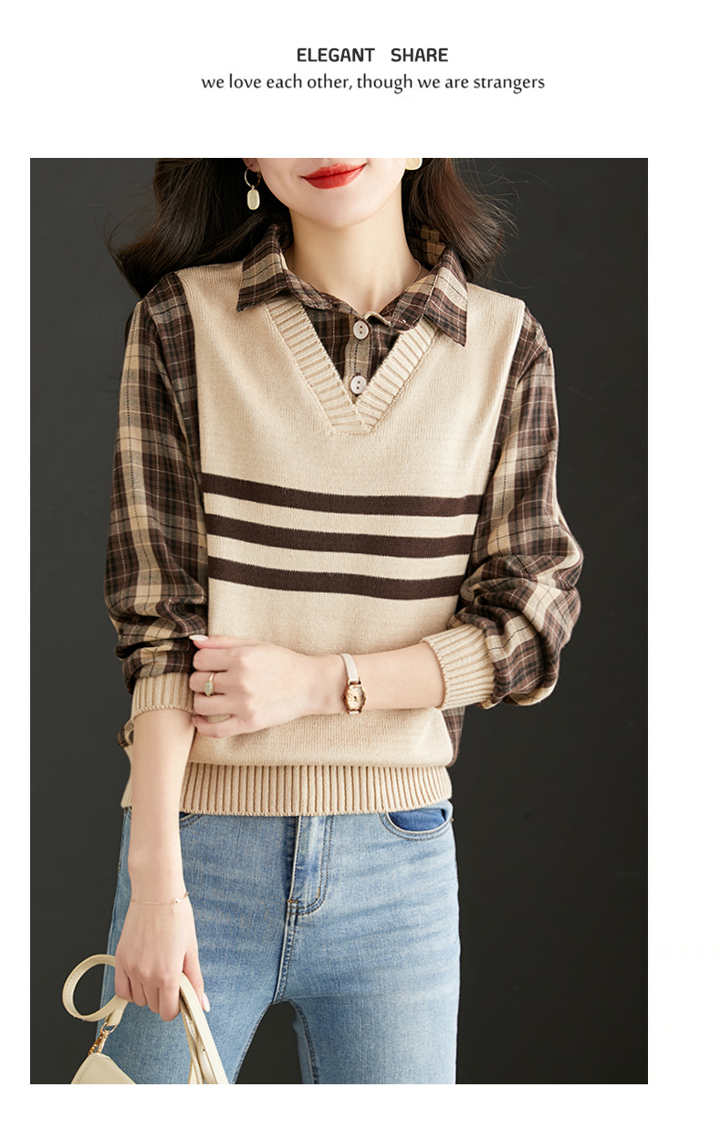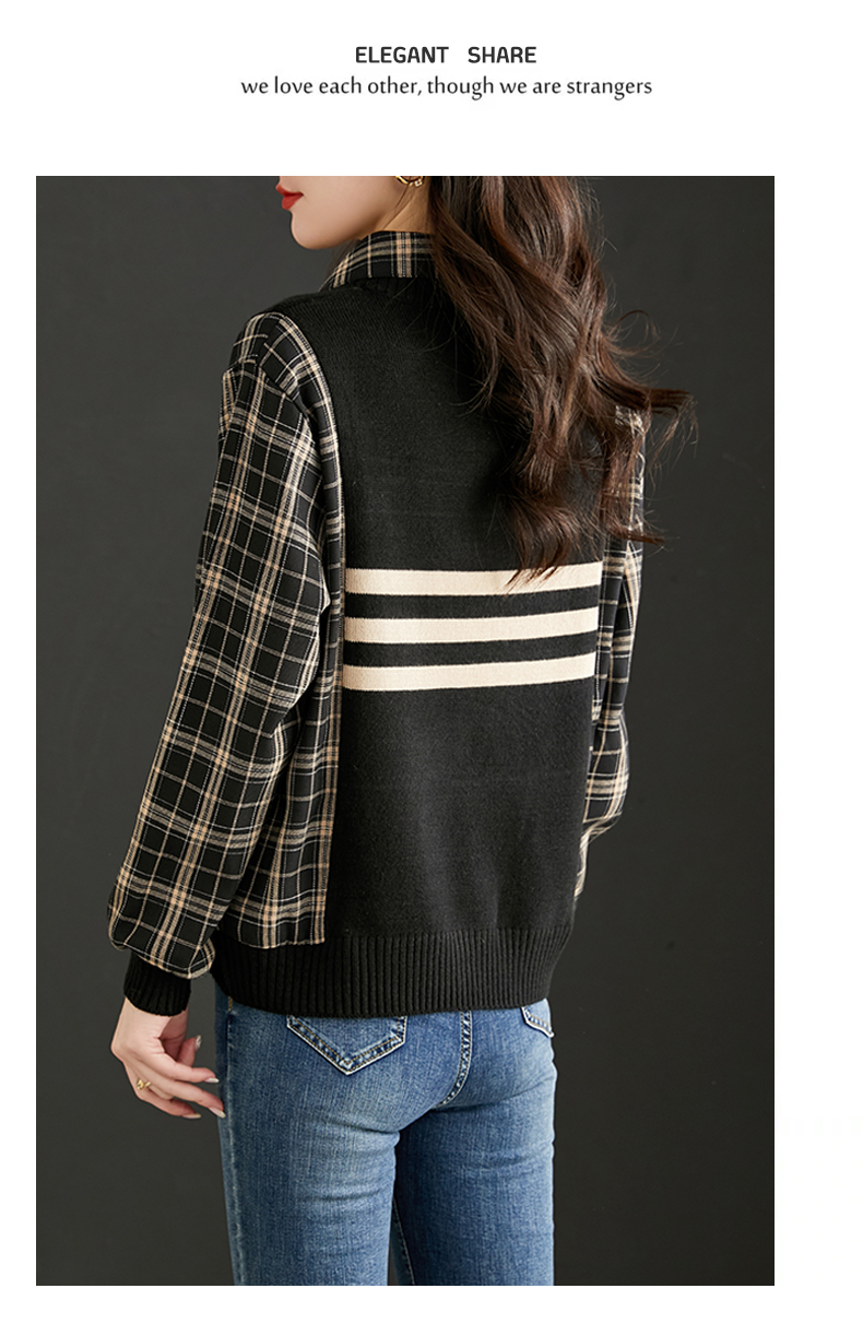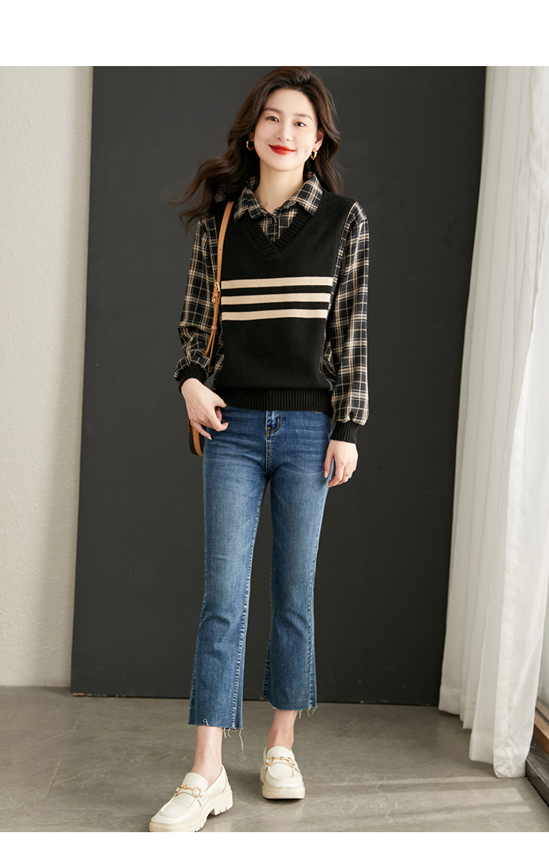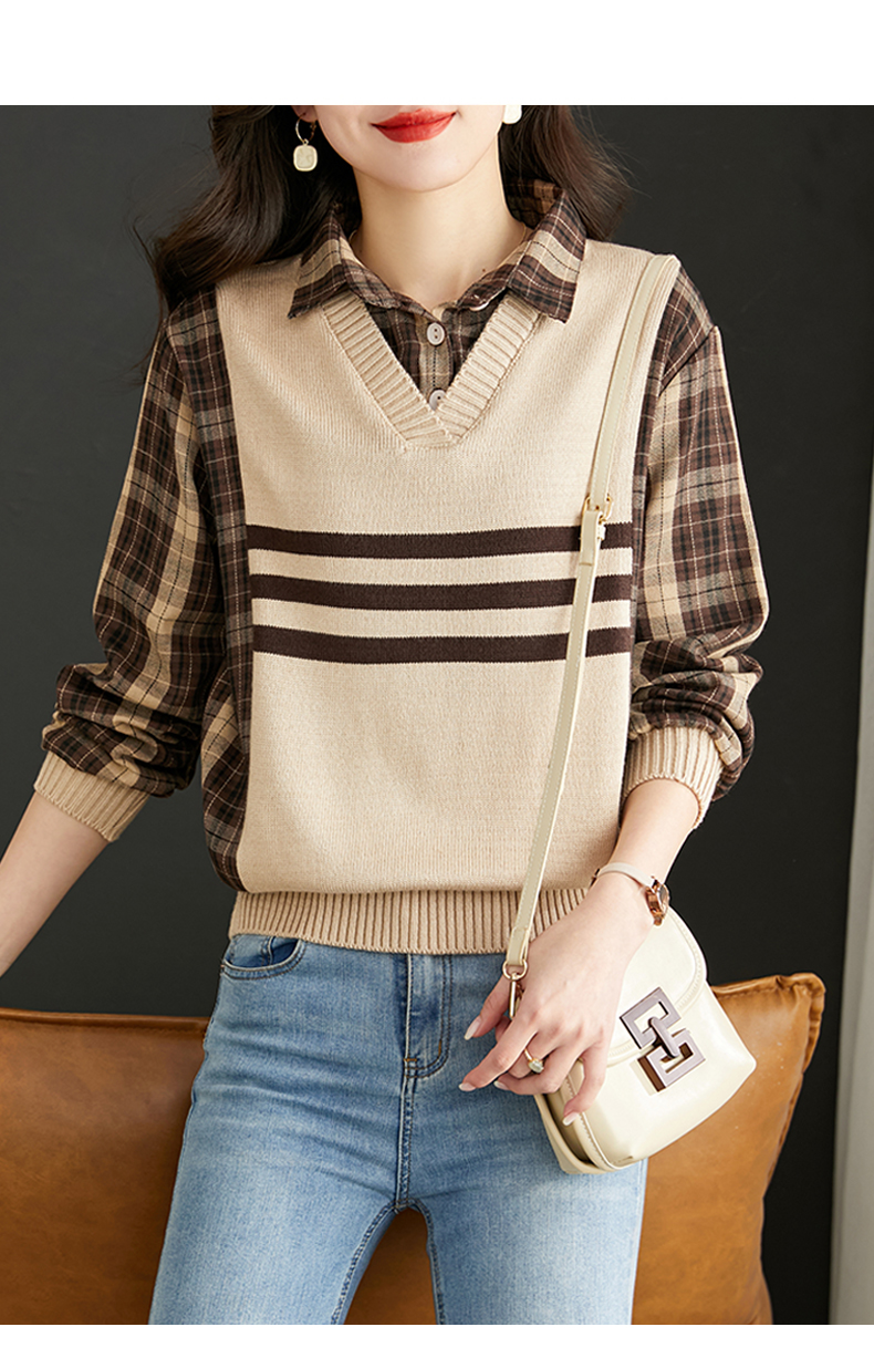 清新减龄,翻领拼接格纹假两件衬衫HR-LDSB232