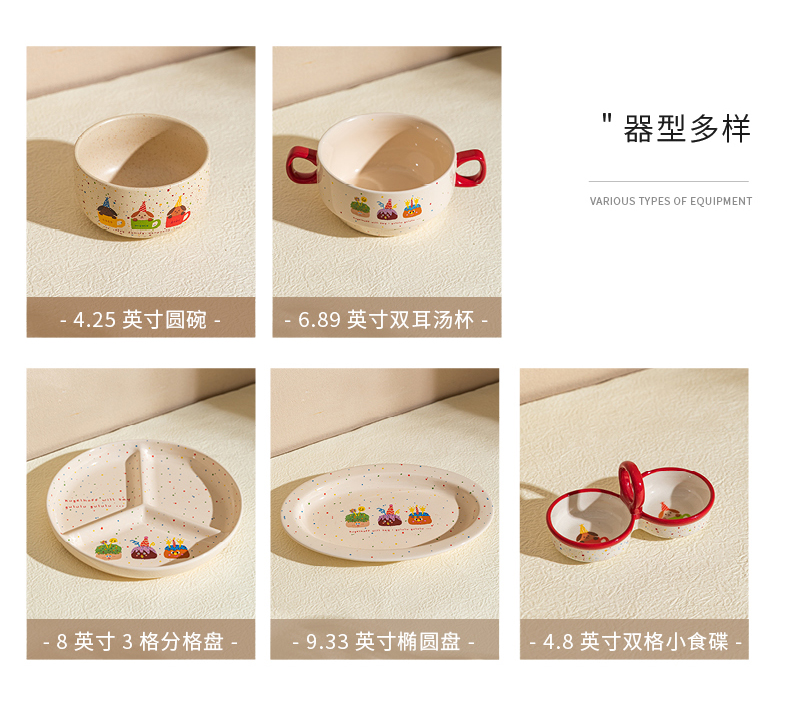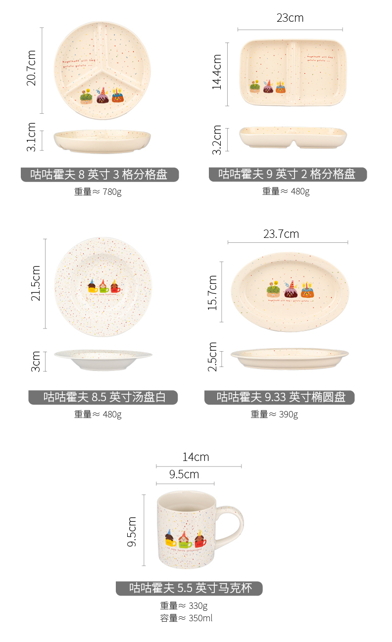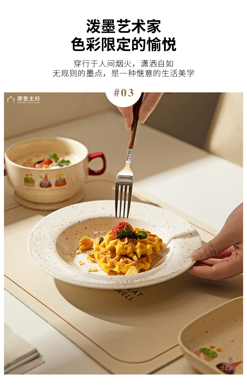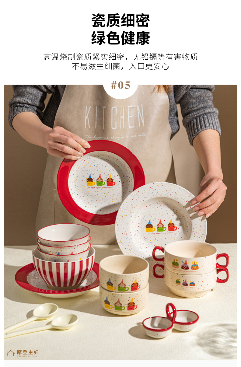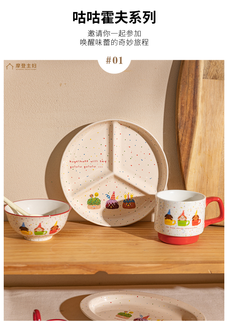 摩登主妇芝麻点可爱陶瓷碗盘子家用卡通餐具饭碗面汤碗盘分格餐盘