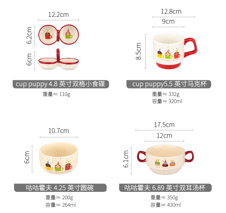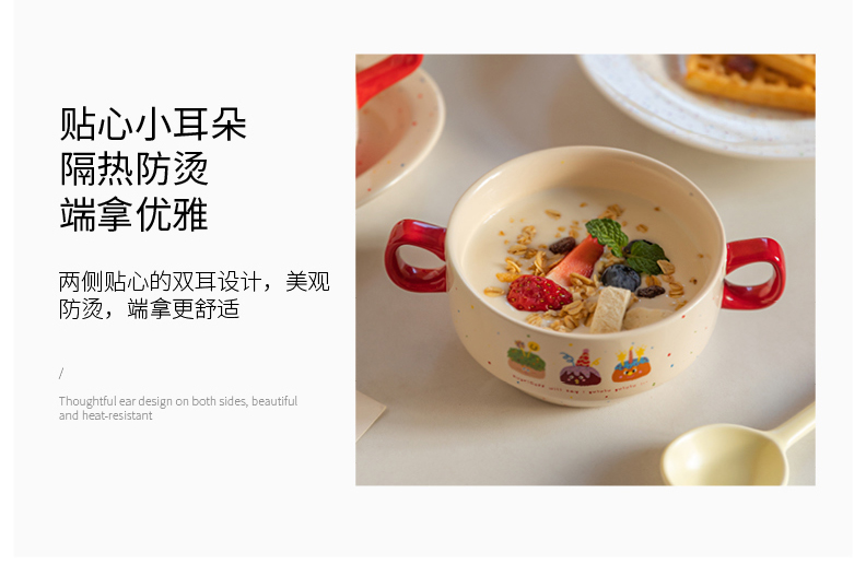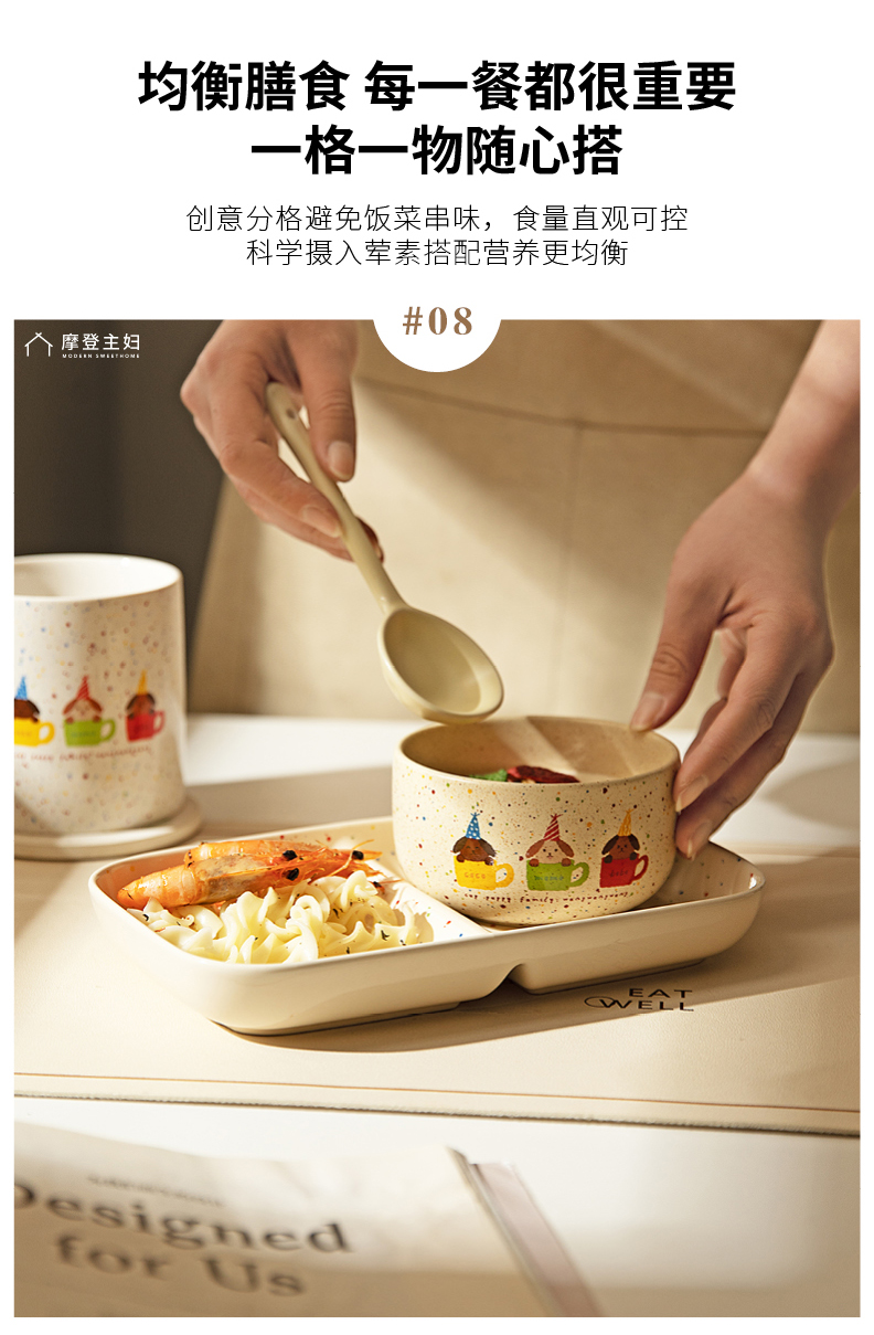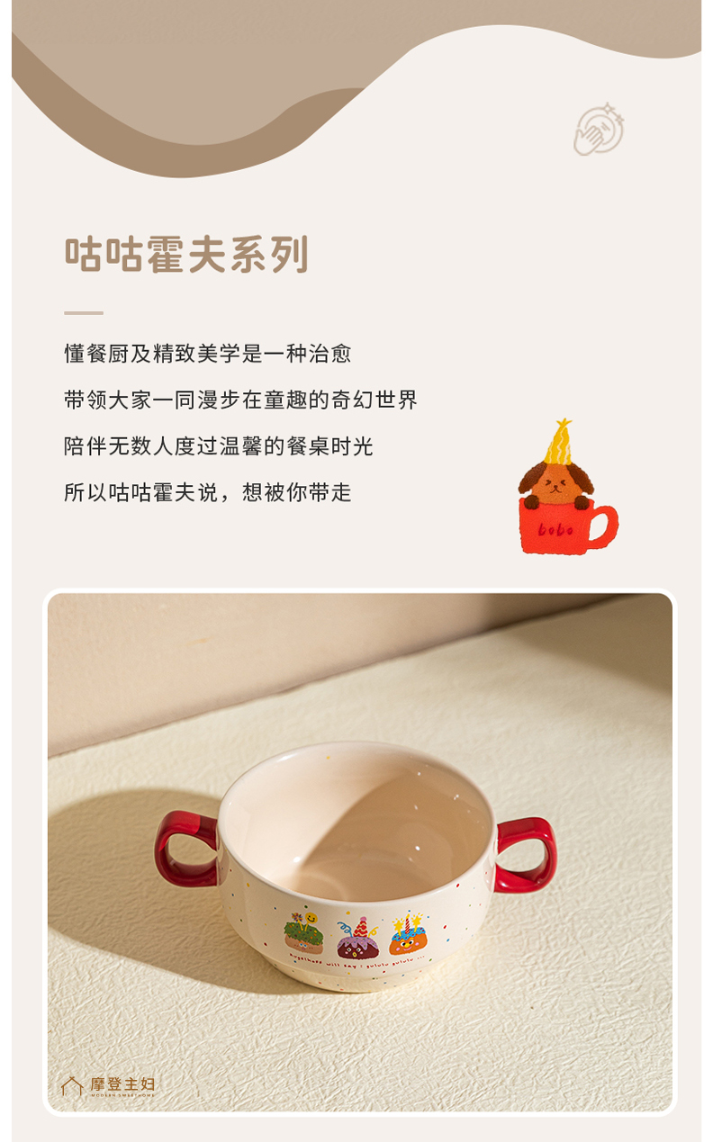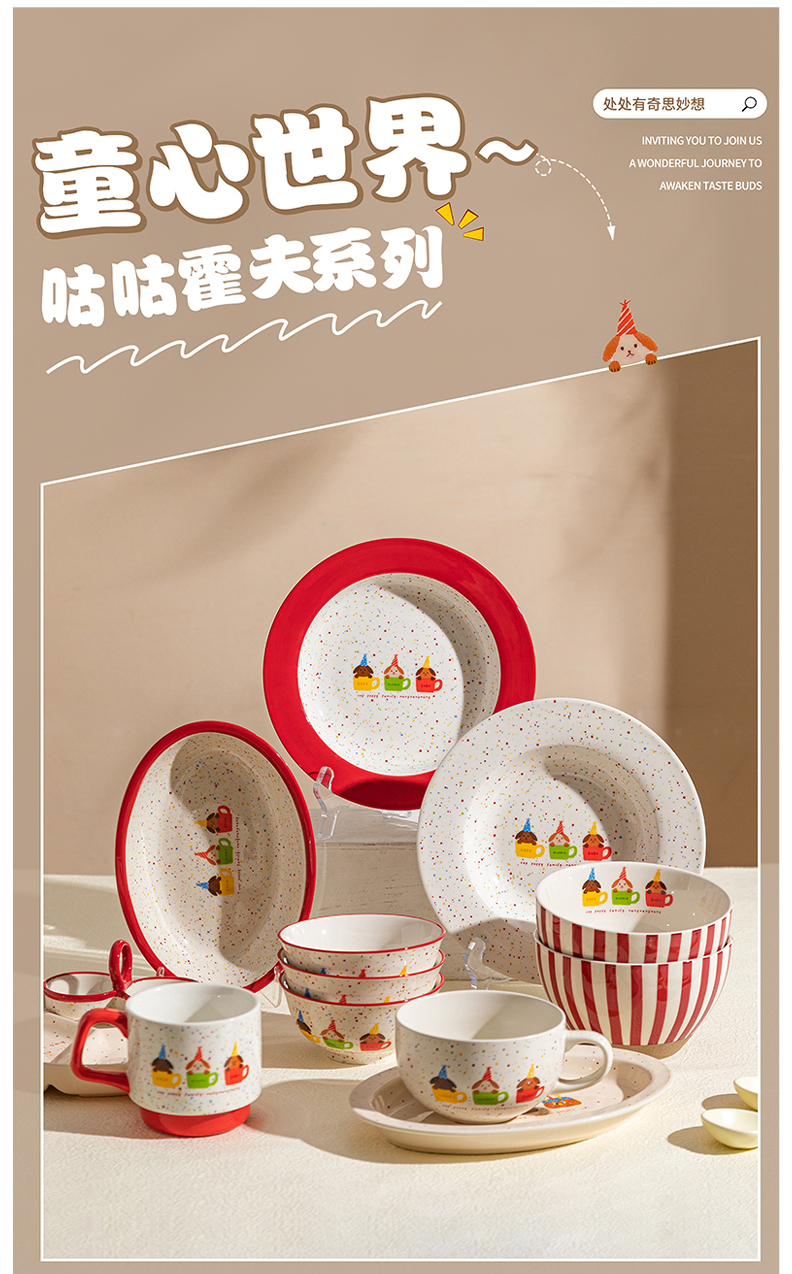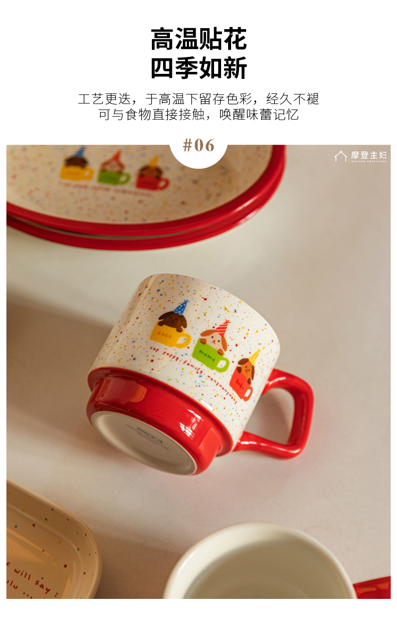 摩登主妇芝麻点可爱陶瓷碗盘子家用卡通餐具饭碗面汤碗盘分格餐盘