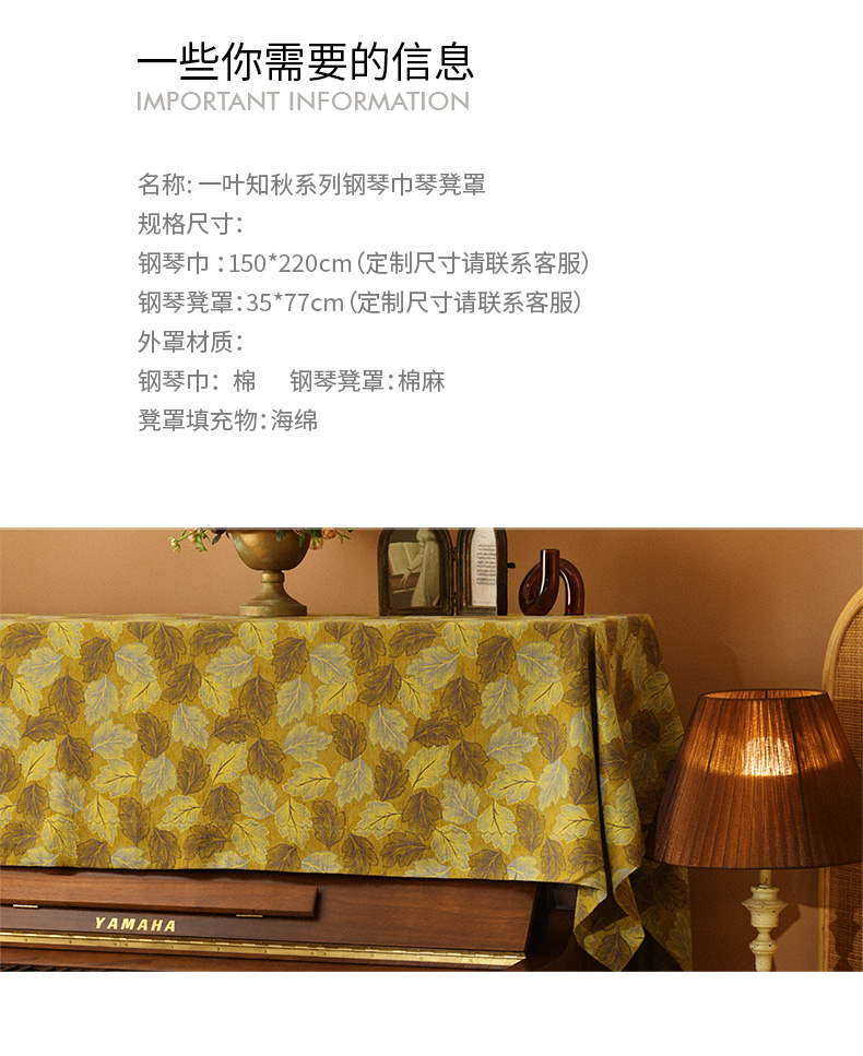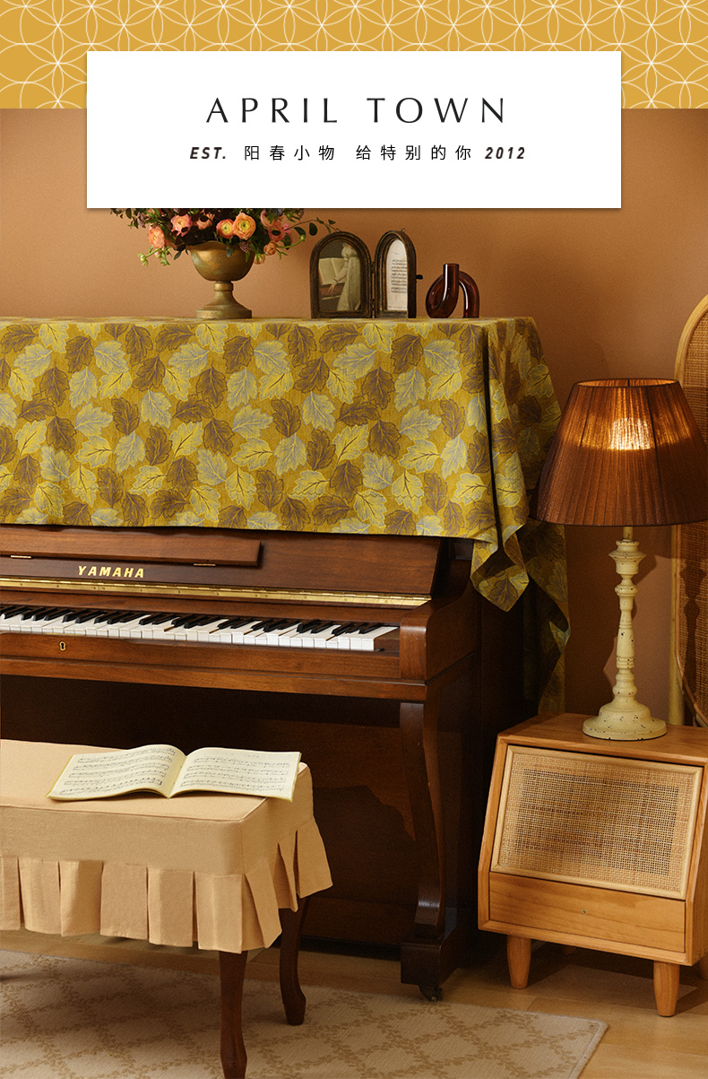 一叶知秋系列钢琴巾钢琴凳罩北欧现代简约钢琴罩全罩新款钢琴巾