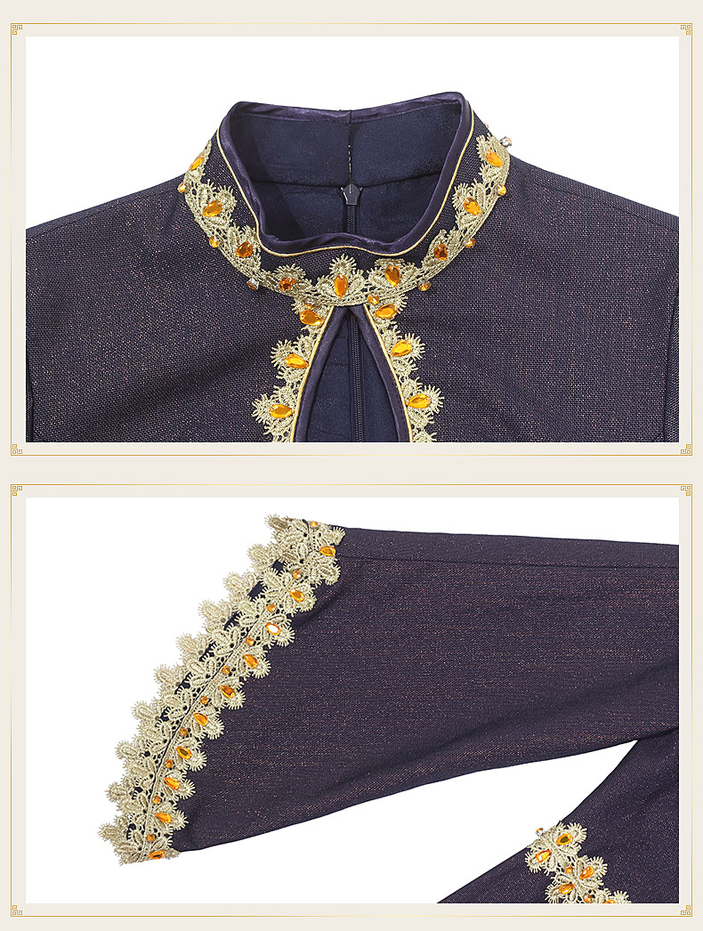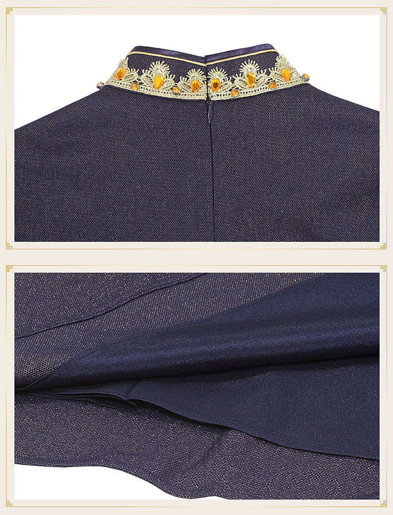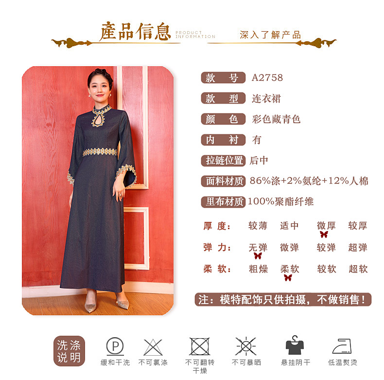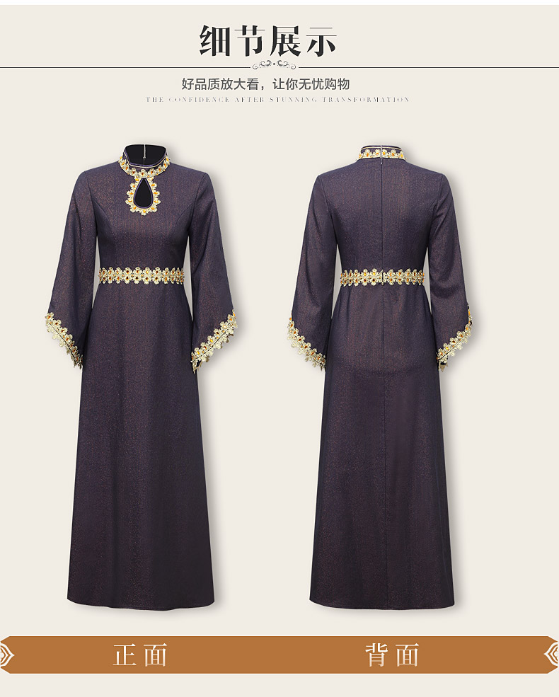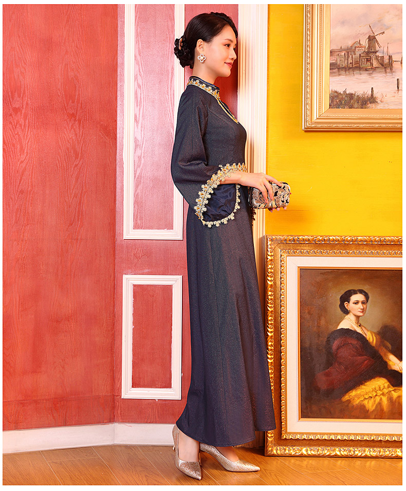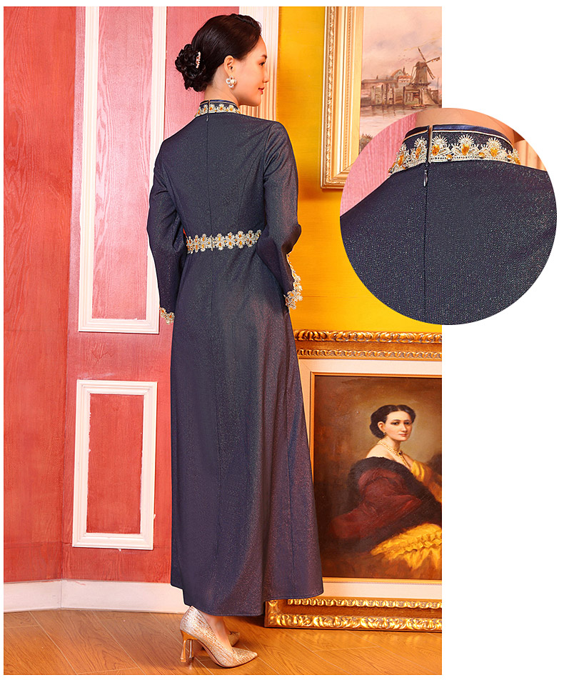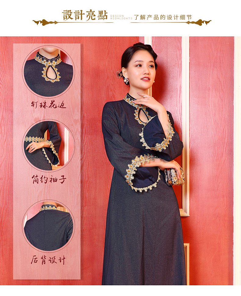 DLQ-A2758新款高端名媛气质修身立领钉珠花边长款礼服裙
