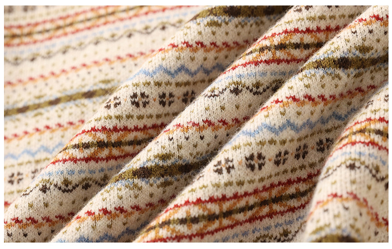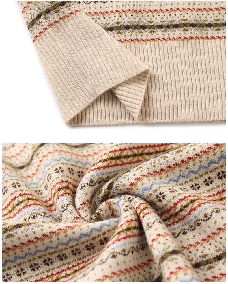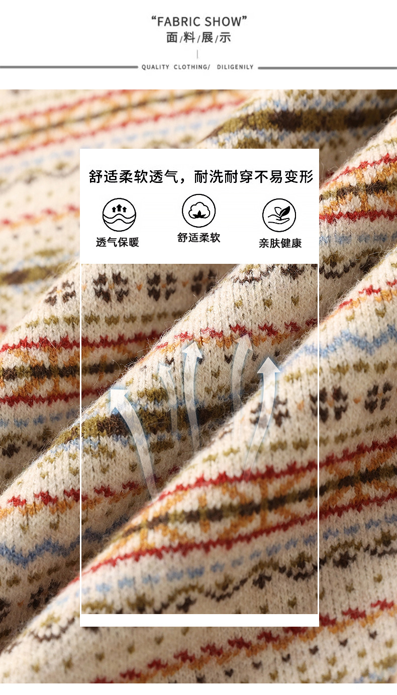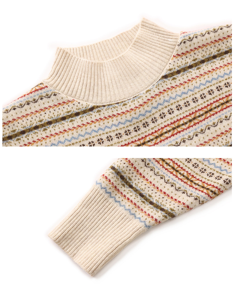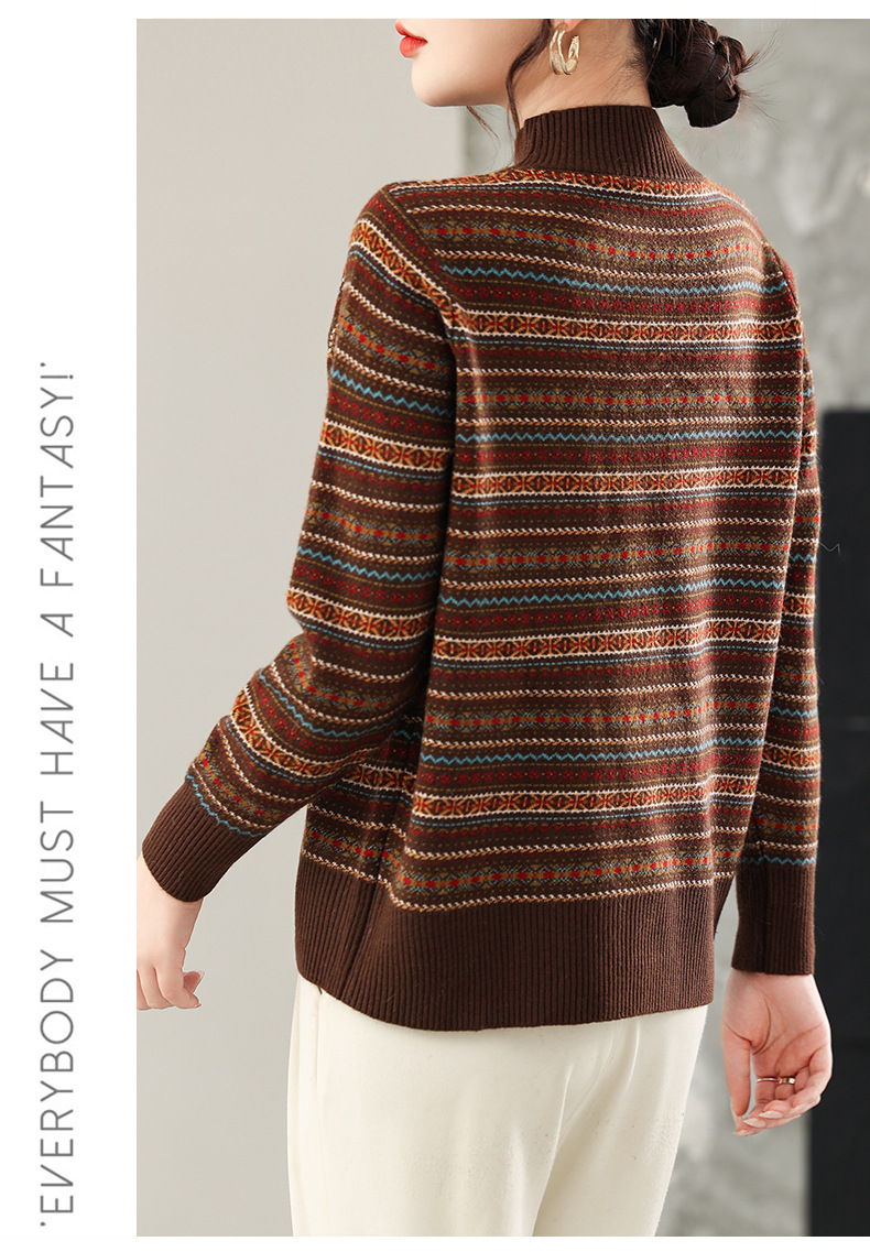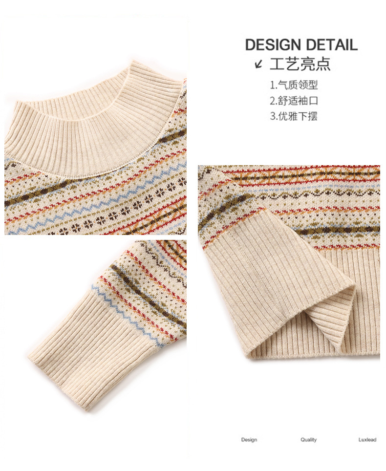 CC 25348复古条纹针织衫漂亮减龄上衣半高领宽松大码