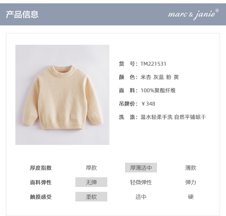 马克珍妮秋装新款 男女童雪尼尔套头毛衣 儿童毛衫221531