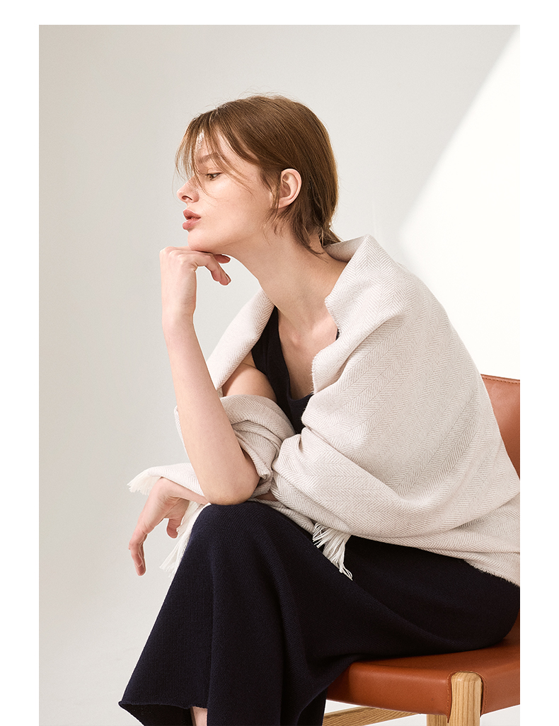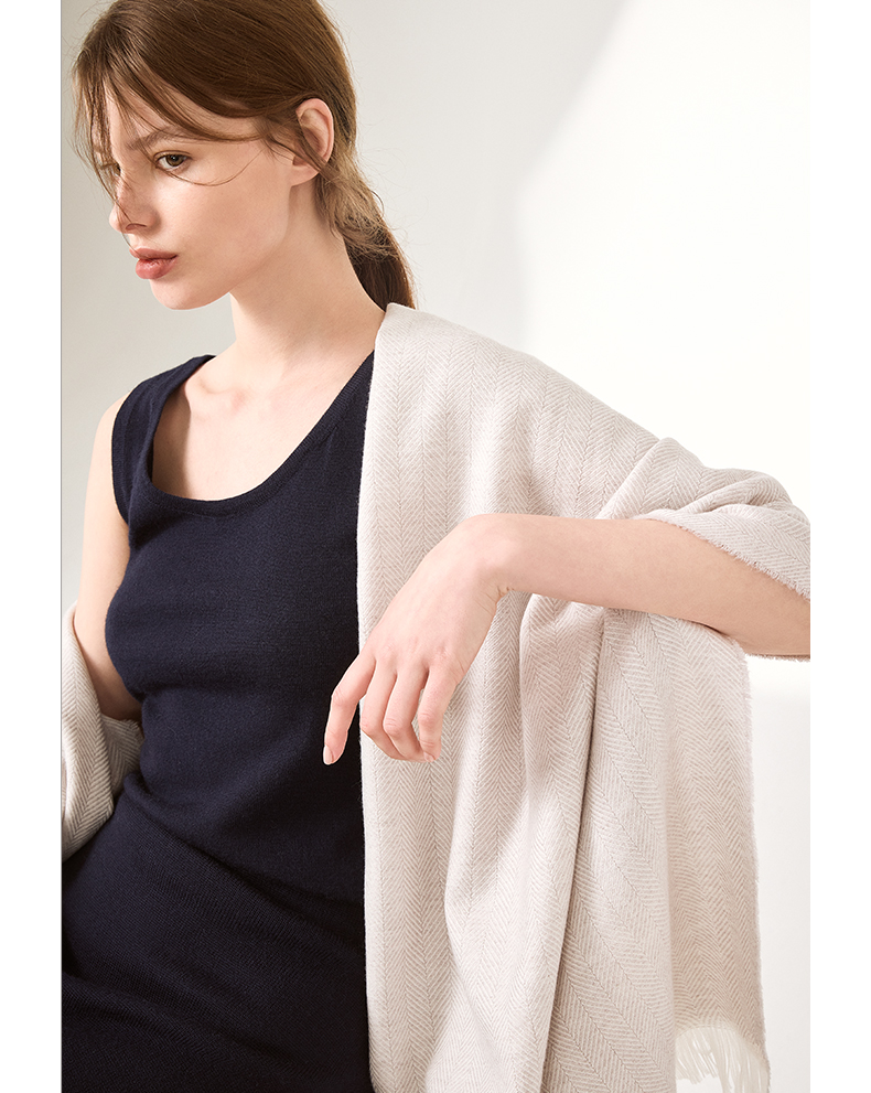 Johnstons of Elgin人字纹超细美利奴羊毛披肩空调毯大围巾