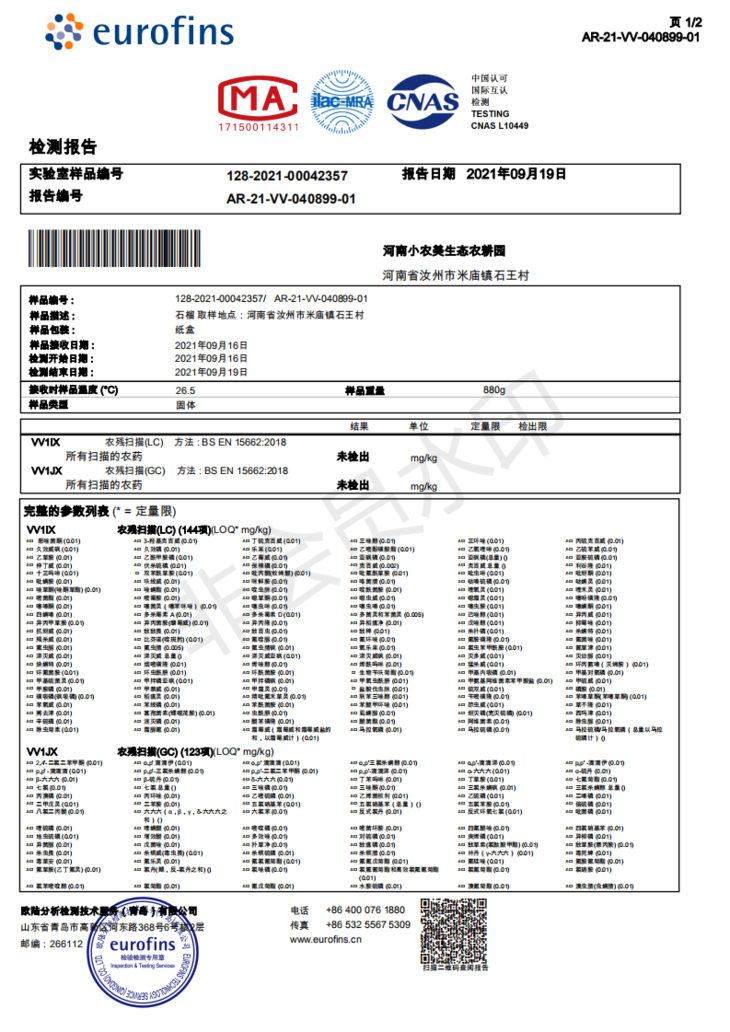 2021年在上架之前, 我们也做了260+农残检测,无检出。