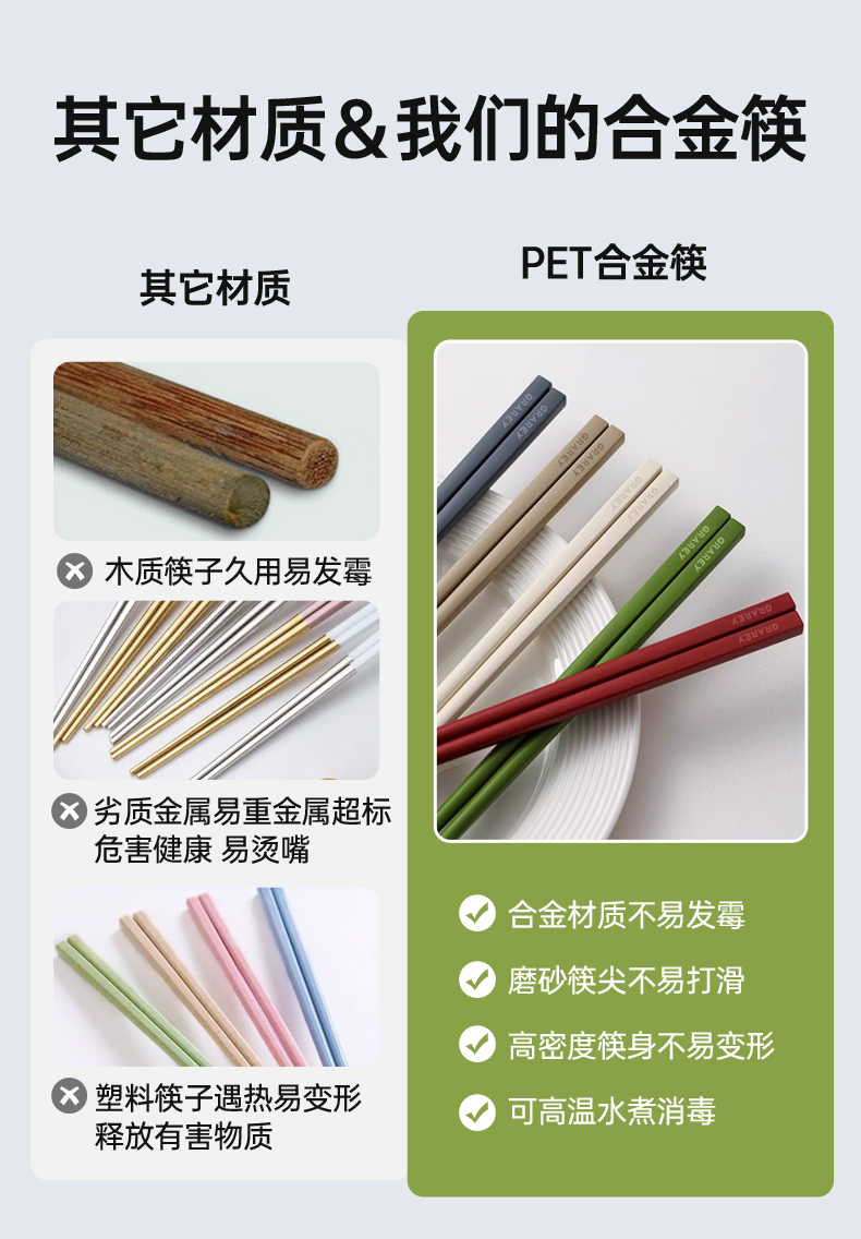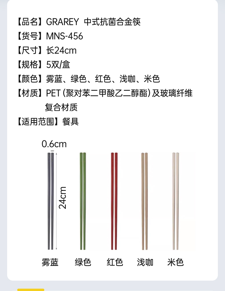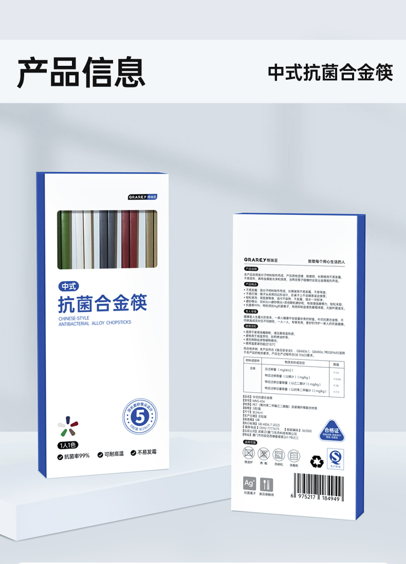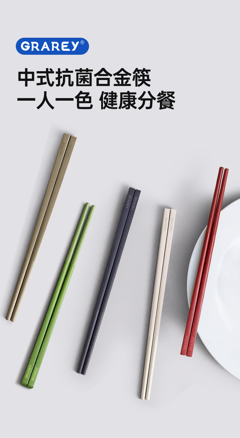 GRAREY格瑞亚中式抗菌合金筷(5色各1)/5双补单专用