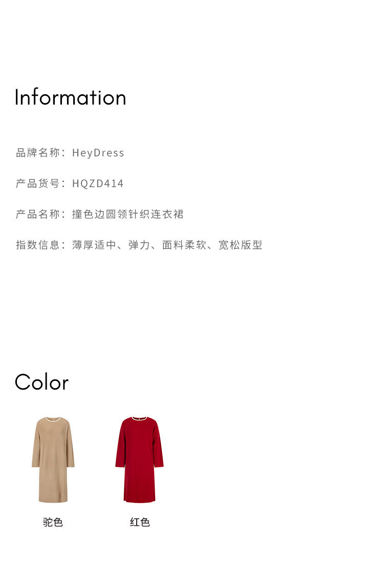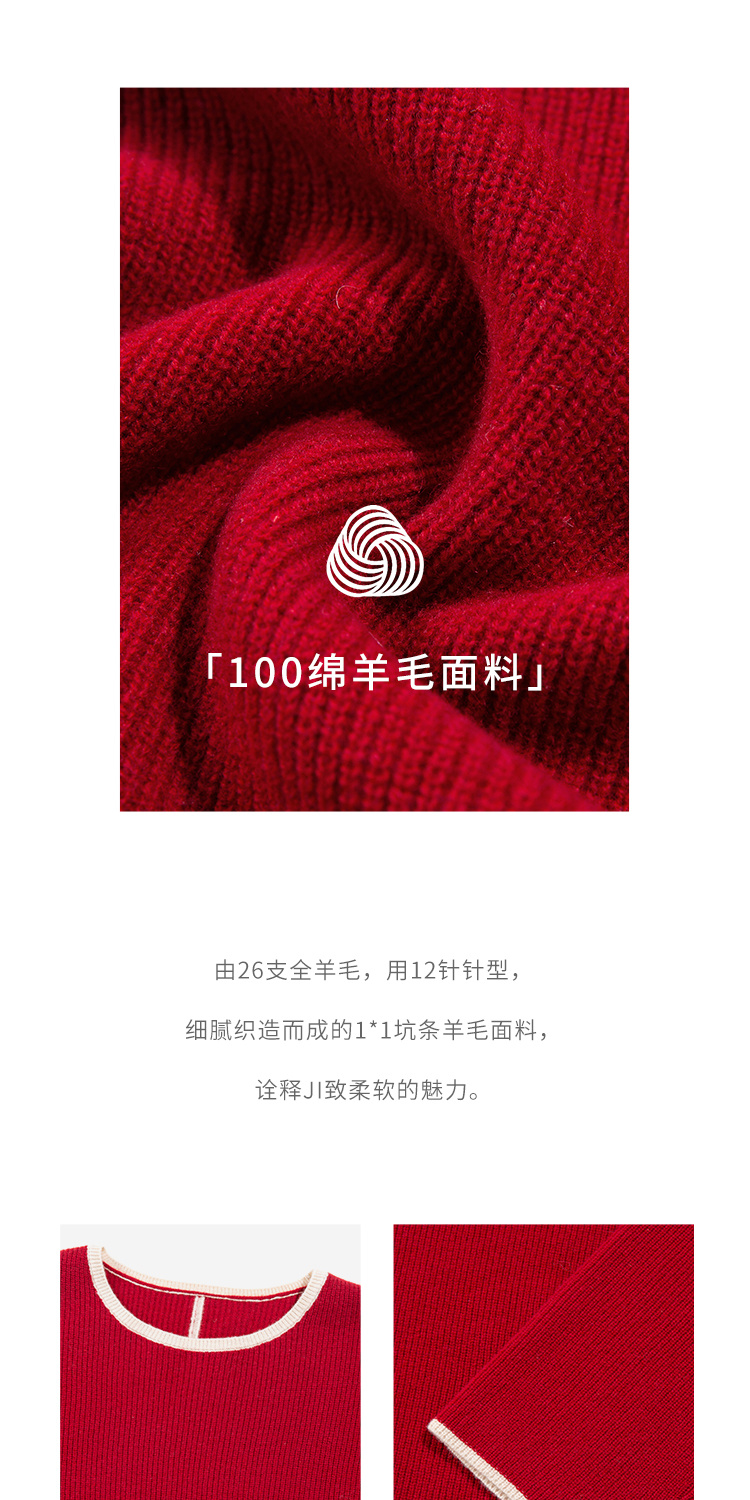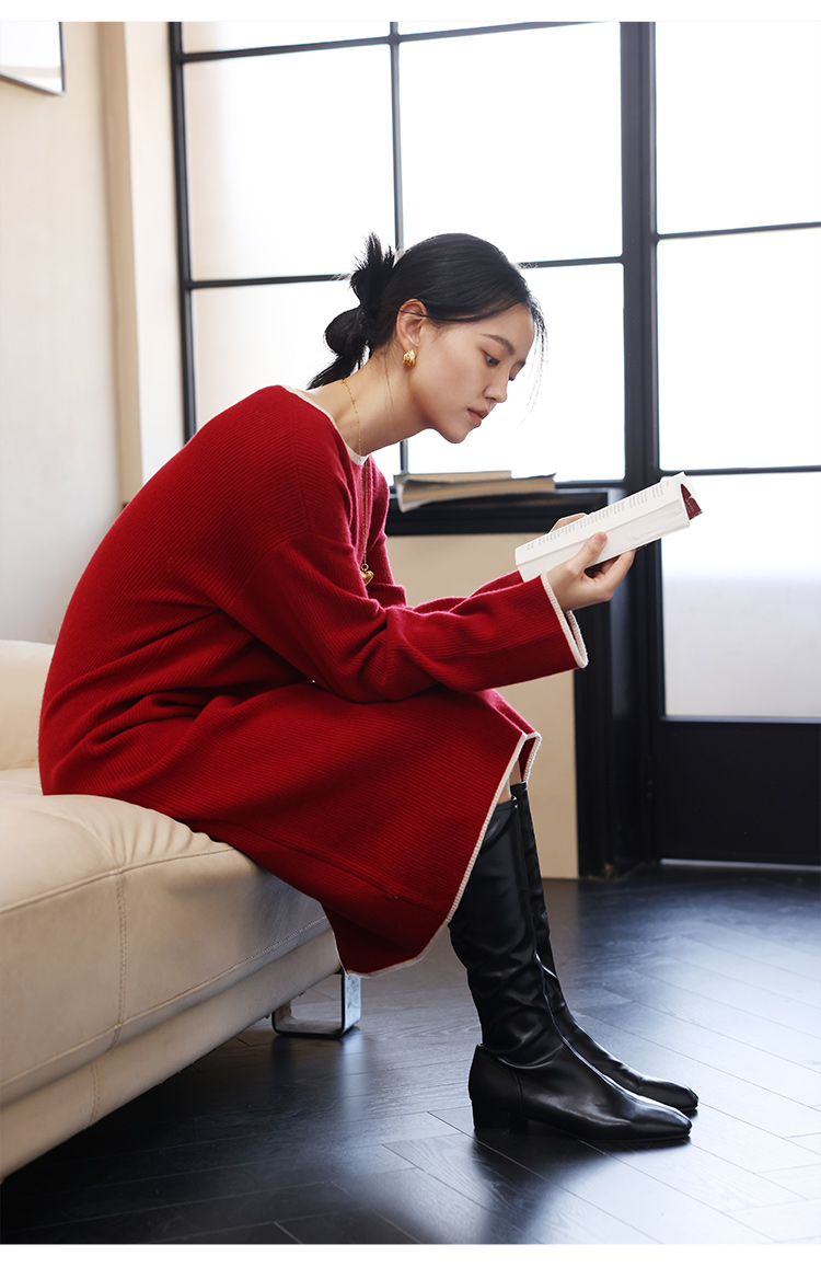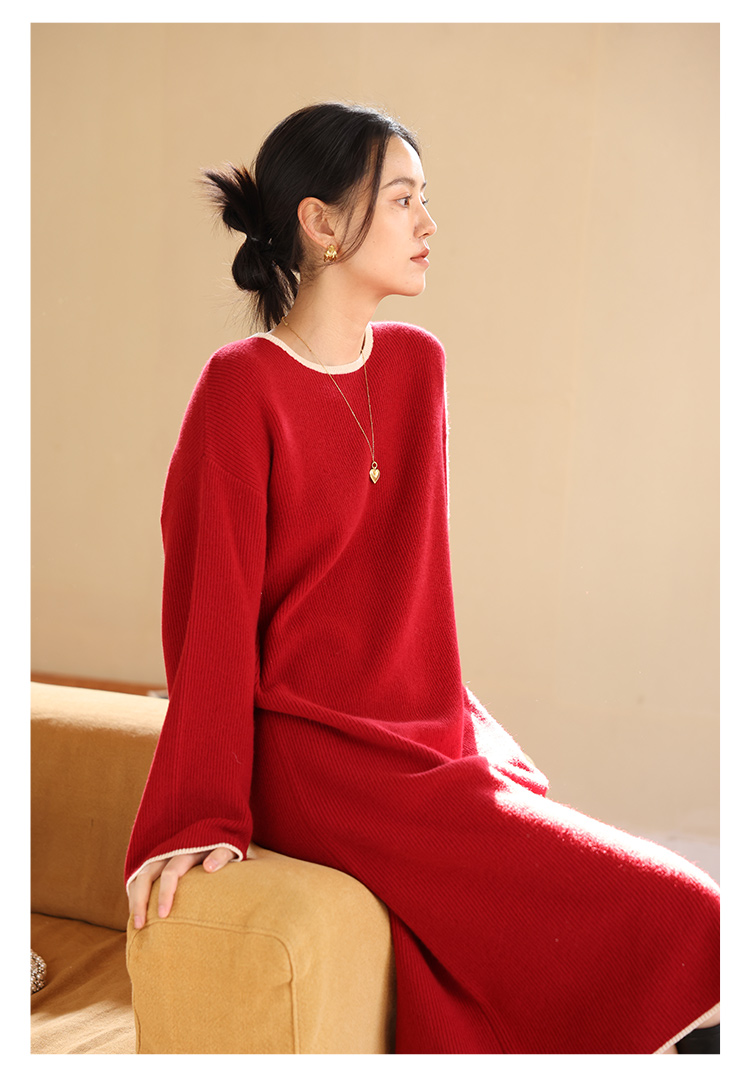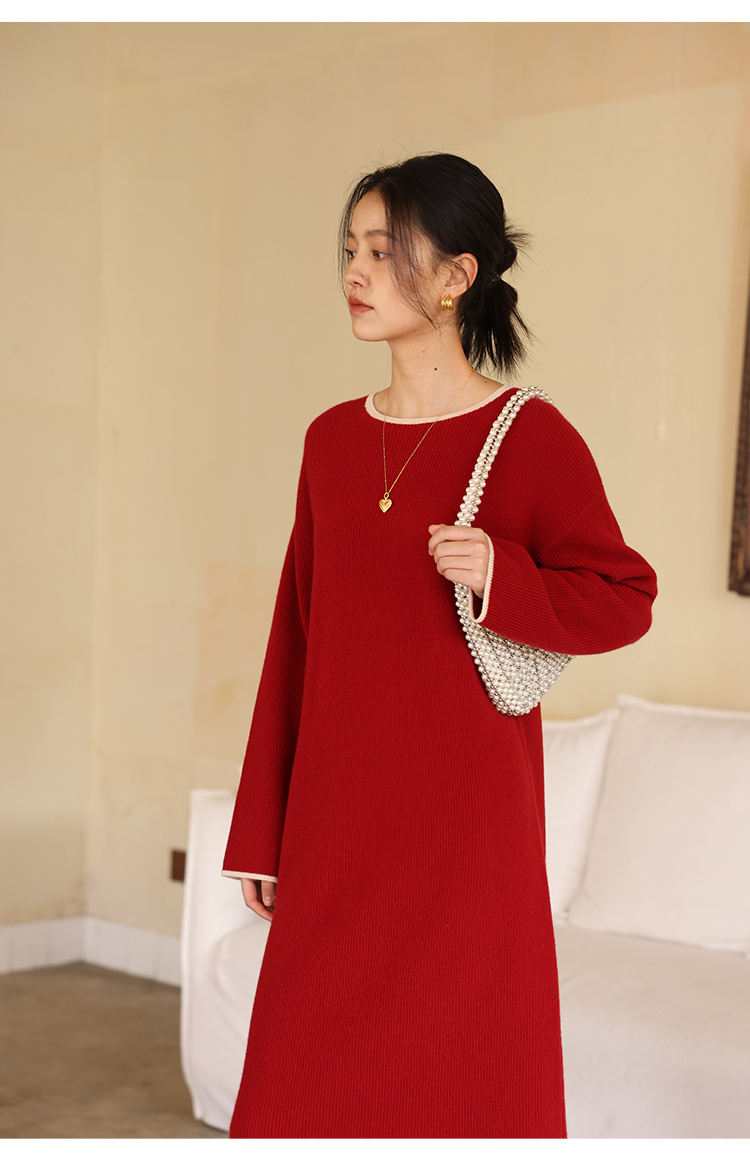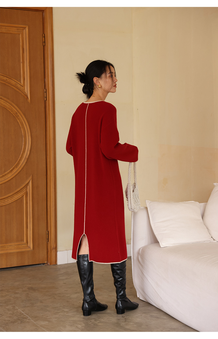 HeyDress100绵羊毛针织连衣裙冬季法式复古宽松慵懒感撞色气质裙