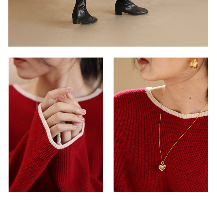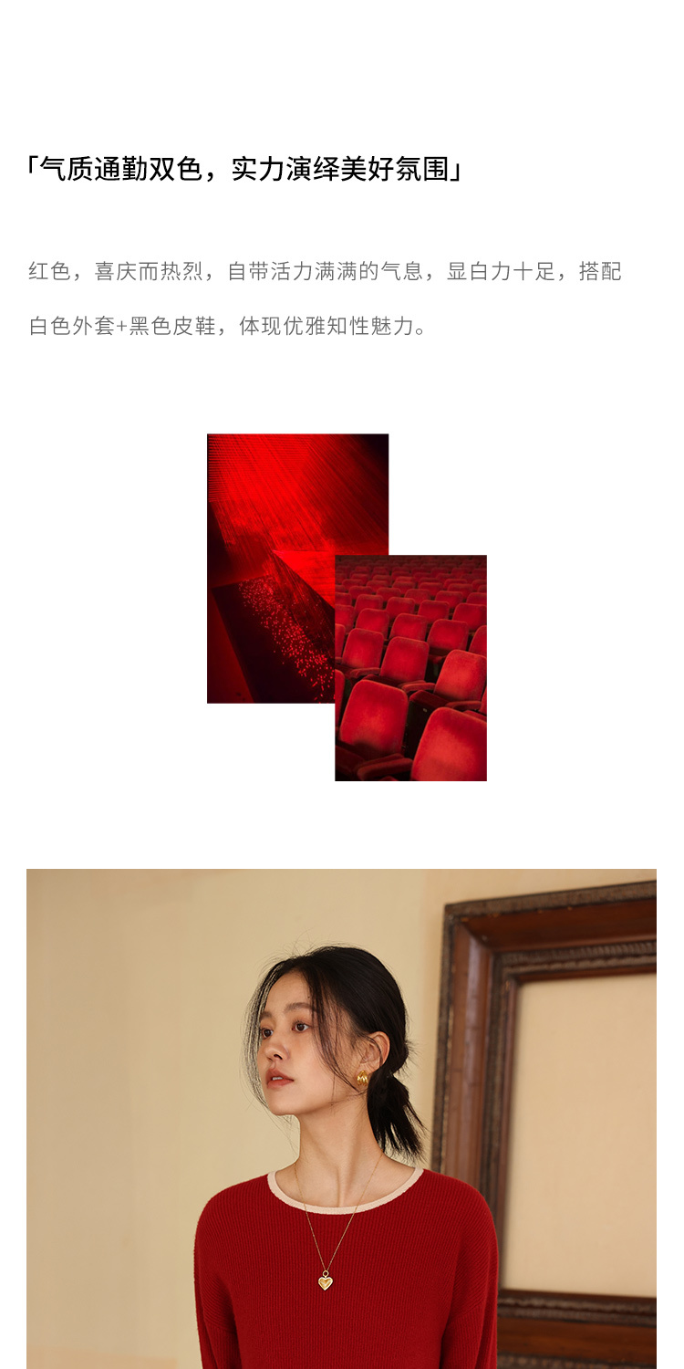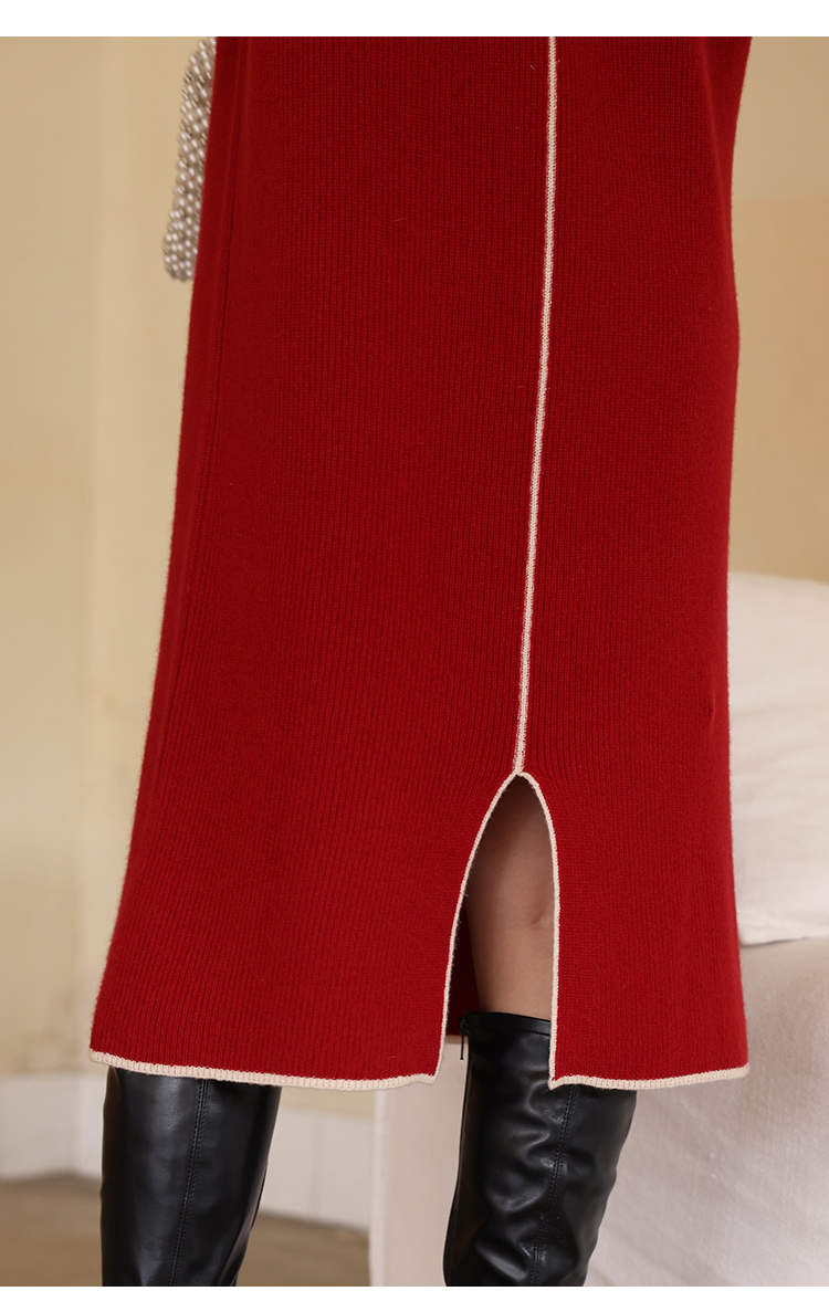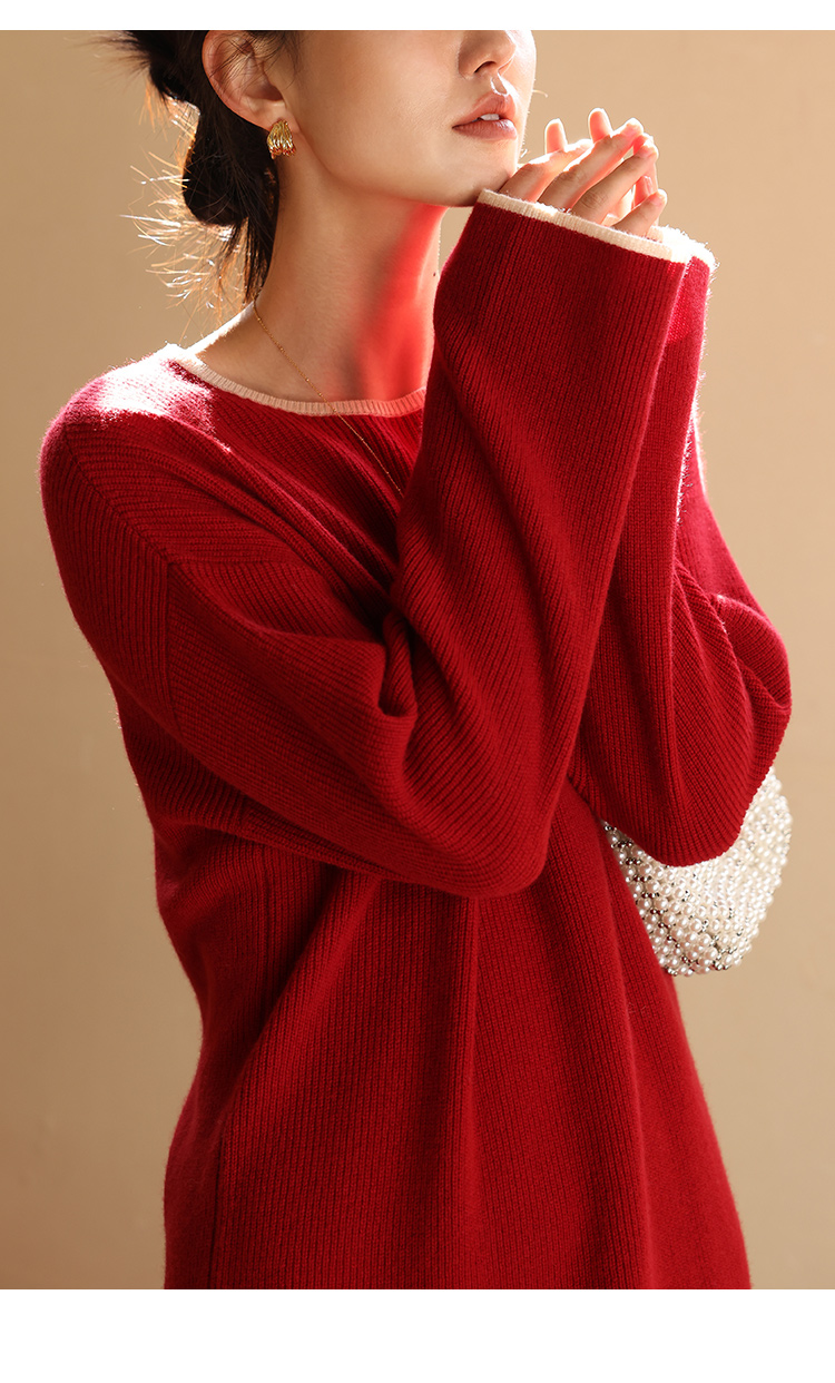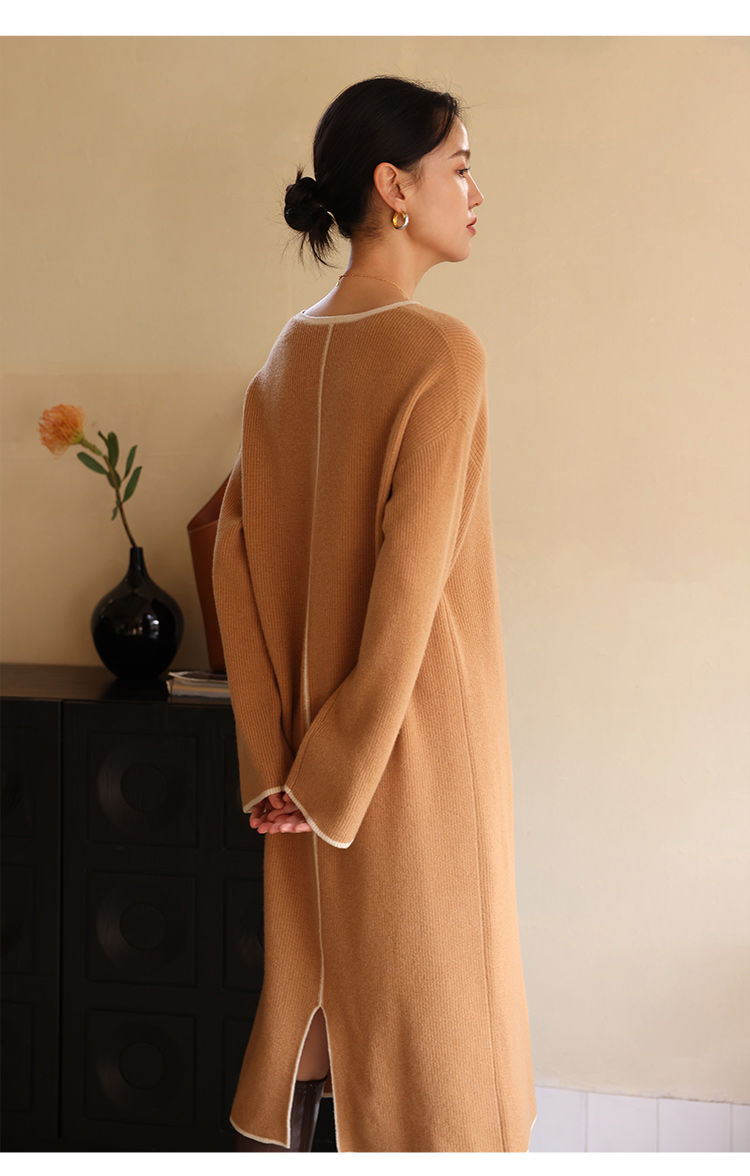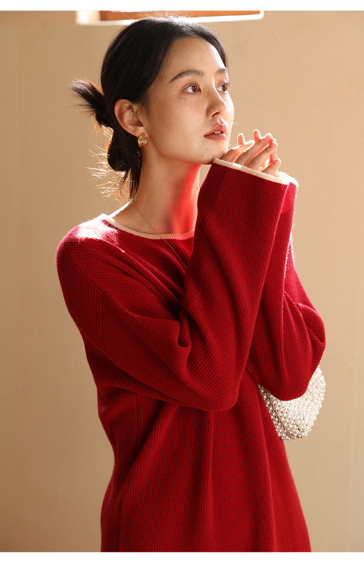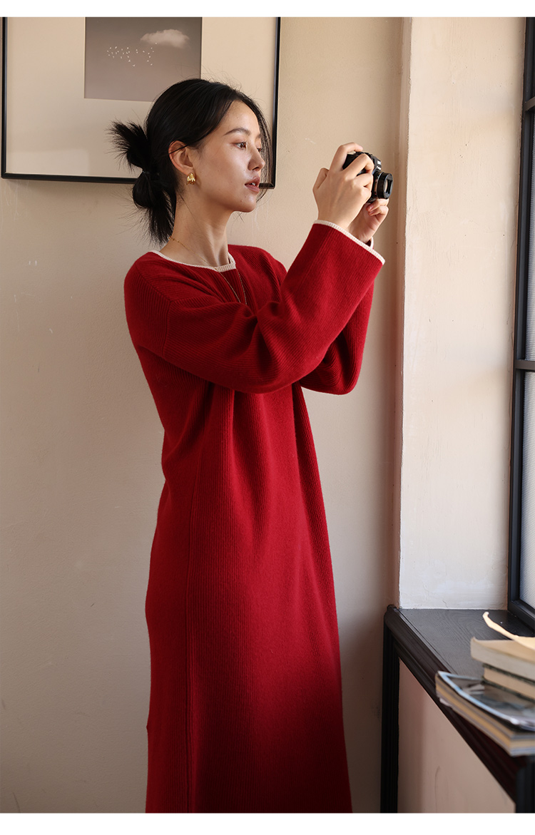 HeyDress100绵羊毛针织连衣裙冬季法式复古宽松慵懒感撞色气质裙