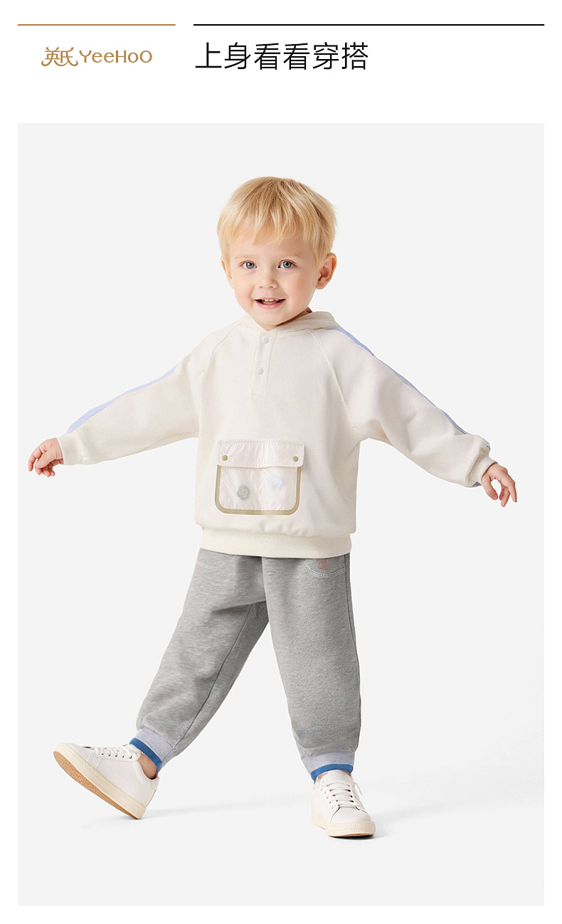 【商场同款】英氏童装儿童长袖连帽卫衣春秋休闲衣服男童上衣百搭