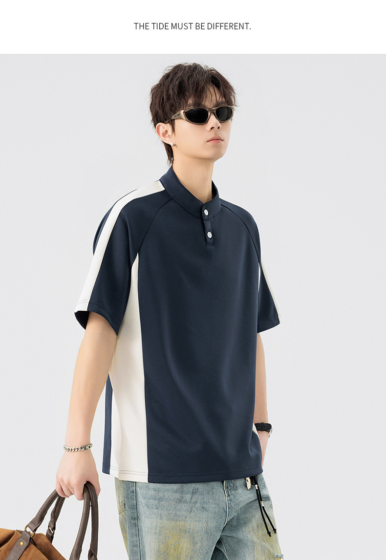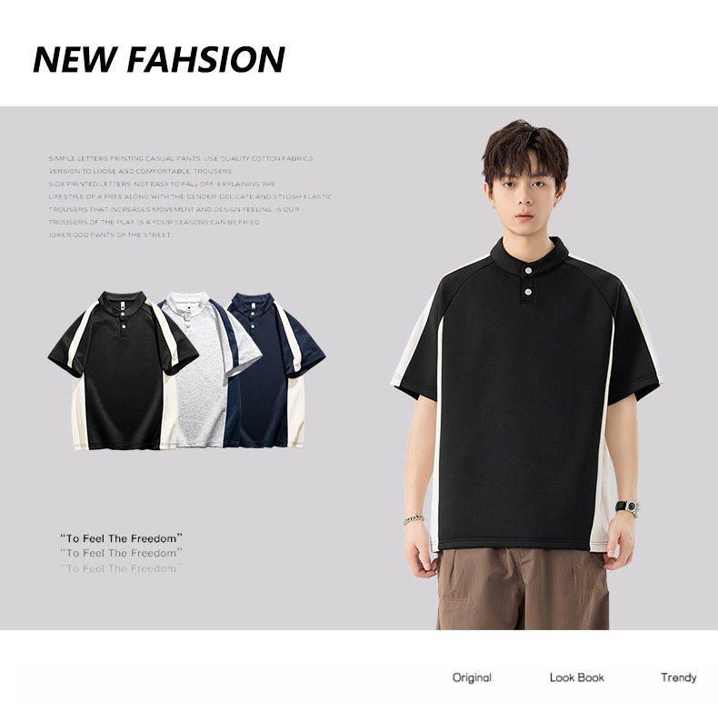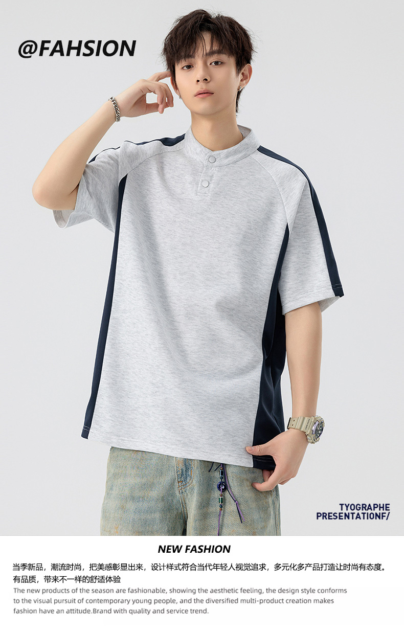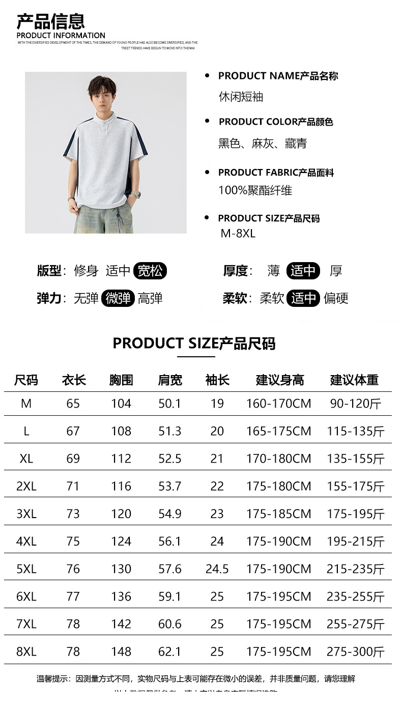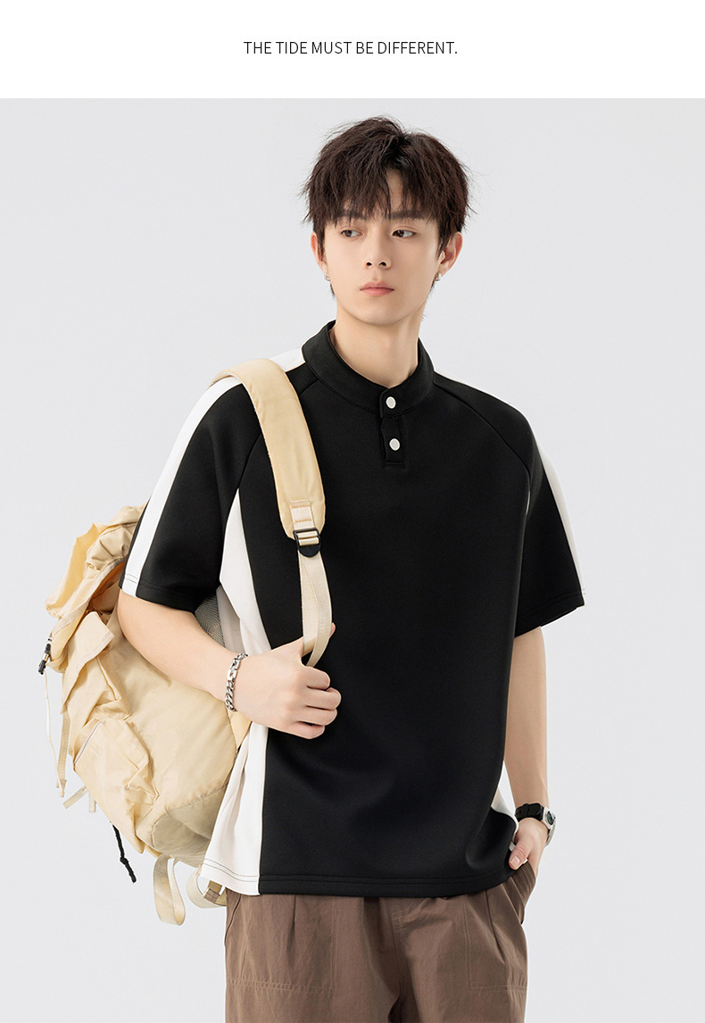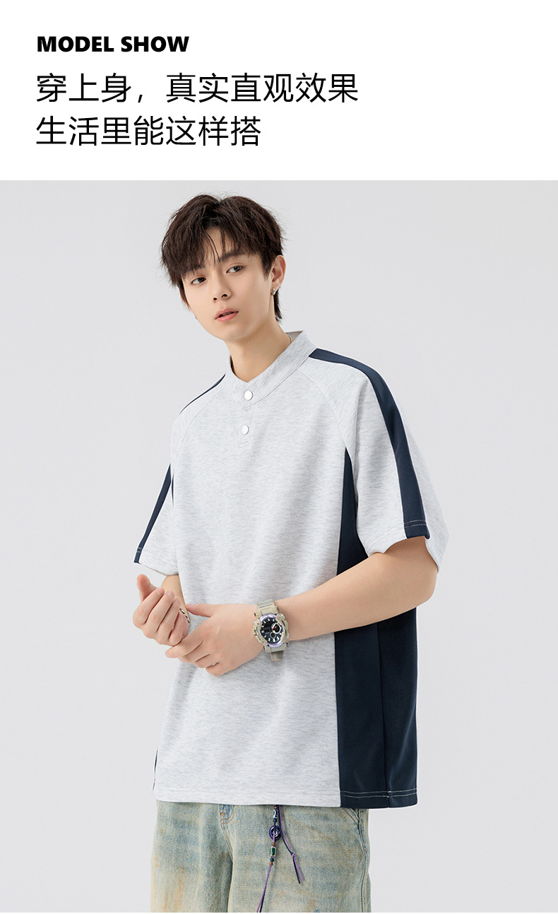 【DSL】大依优型大码立领短袖POLO衫T恤夏季加肥加大肥佬休闲宽松透气弹力男装上衣潮款