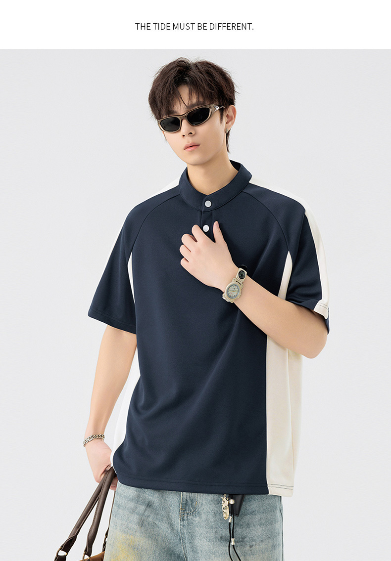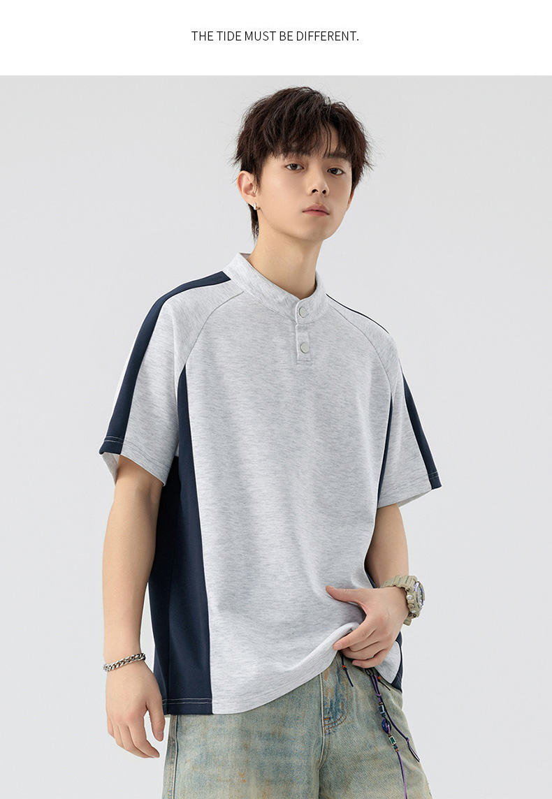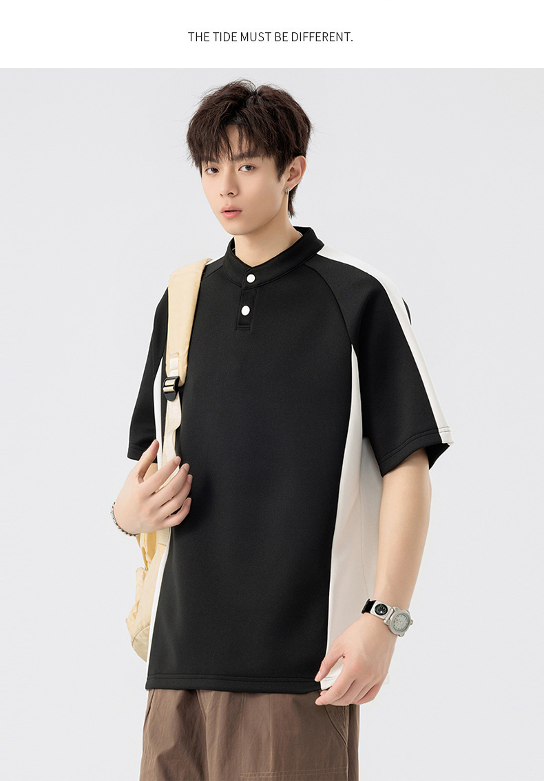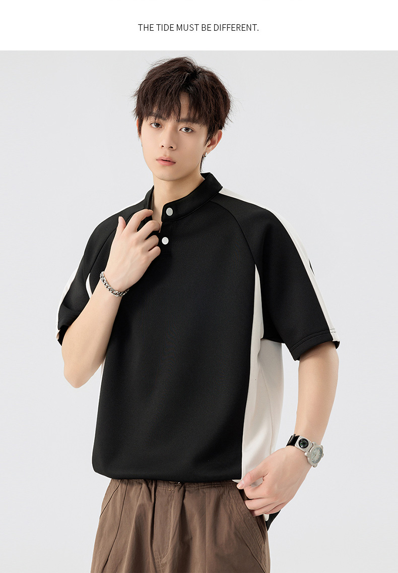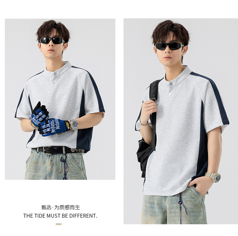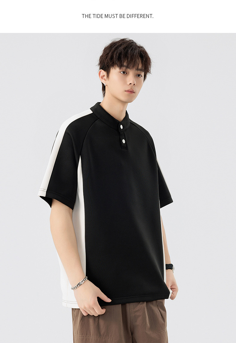 【DSL】大依优型大码立领短袖POLO衫T恤夏季加肥加大肥佬休闲宽松透气弹力男装上衣潮款