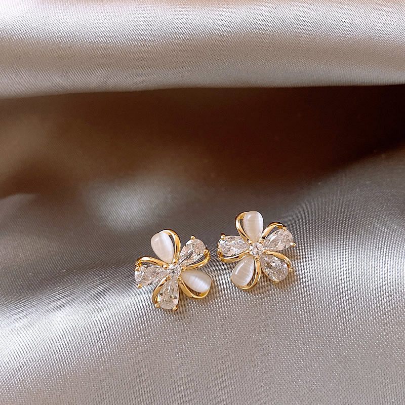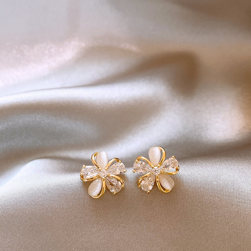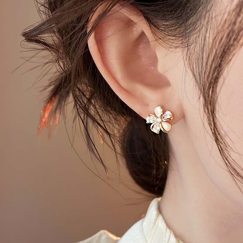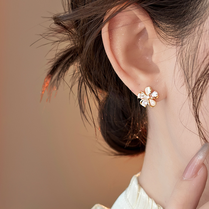 雀说 金色锆石花朵耳钉精致小巧轻奢耳环