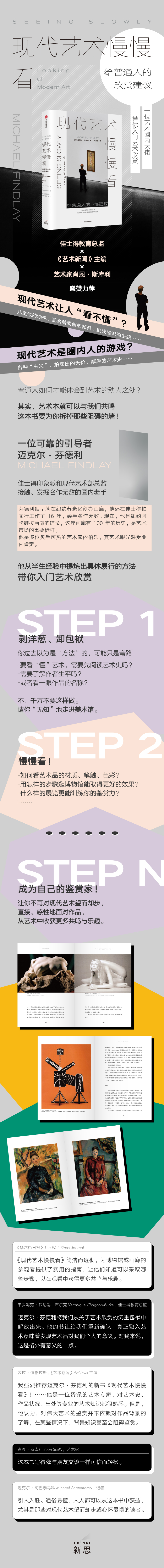 这是一本帮你学会如何欣赏当代艺术的入门书。“我也能画”“看不懂画的什么”“这也叫艺术?”——这是大多数人看到当代艺术时的内心独白,策展人、艺术商人迈克尔•芬德利的这本书则让人摸到欣赏当代艺术的门道。这不是面面俱到的艺术史,也不是针对特定作品的艺术评论,而是通过教普通人观察色彩与笔触、理解创作意图等等,来解决大众的“看不懂”。这正是芬德利的看家本领,作为一个艺术经销商,他必备的能力是,使艺术品的购买者果断砸下定金。而关键就在于,他必须简明地向对方解释艺术品好在何处,并带对方当场臣服于艺术品的光辉之下。