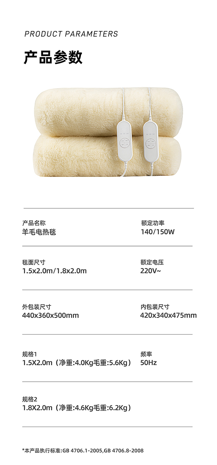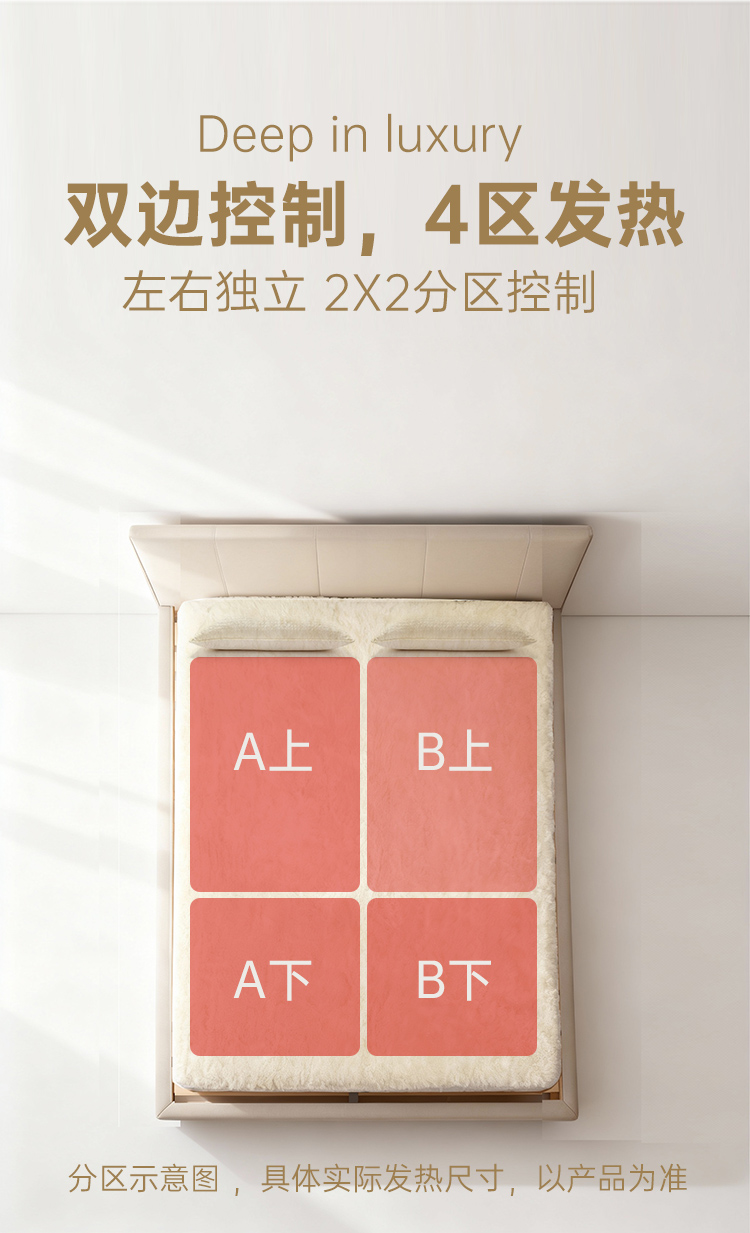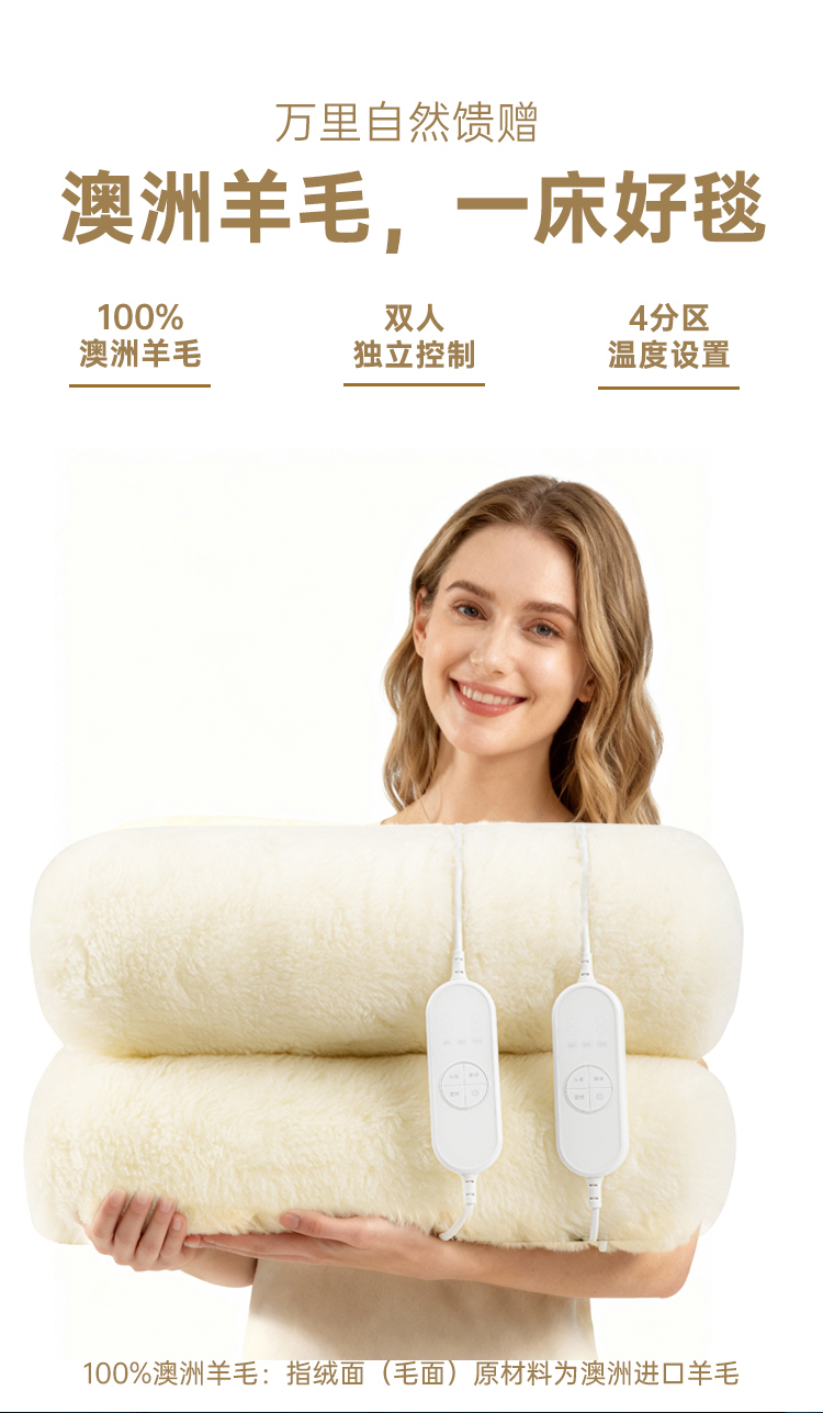 radialight澳洲羊毛电热毯2025新款单双人双控4分区澳洲羊毛电褥子
