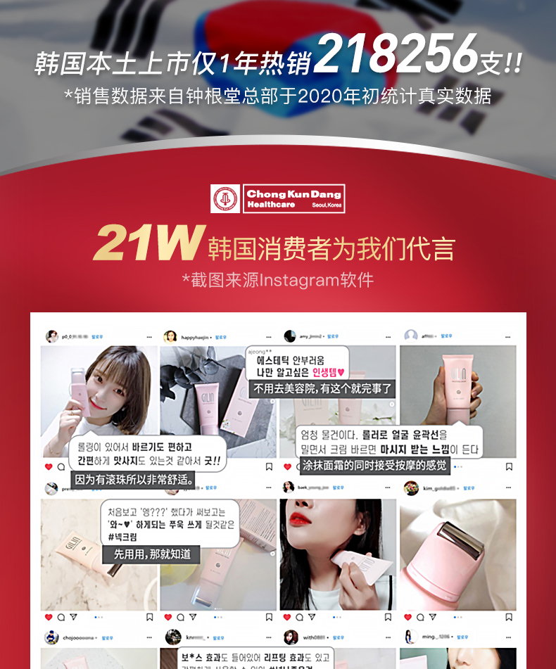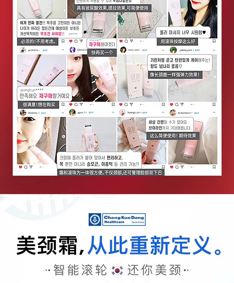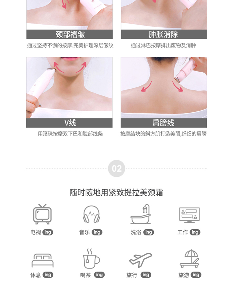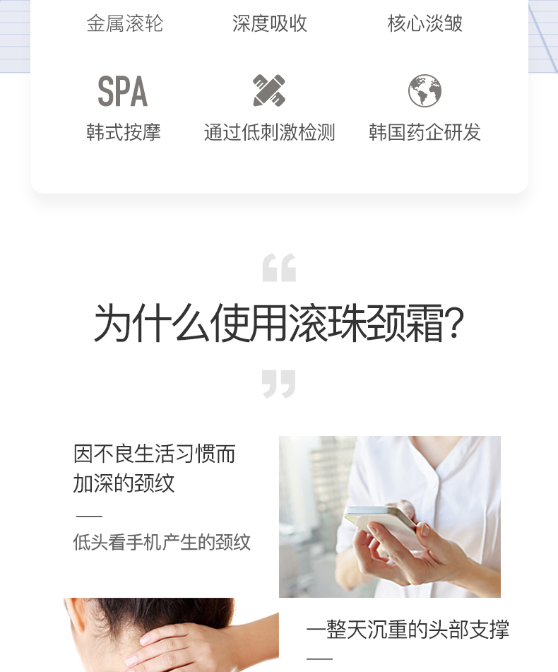 韩国钟根堂健康/天鹅颈长颈鹿紧致提拉美颈霜淡化颈纹滚珠按摩45g