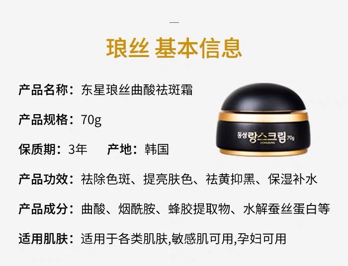 【门店现货】韩国东星琅丝祛斑霜淡化斑点改善暗沉美白提亮老年斑黄褐斑雀斑妊娠斑70g