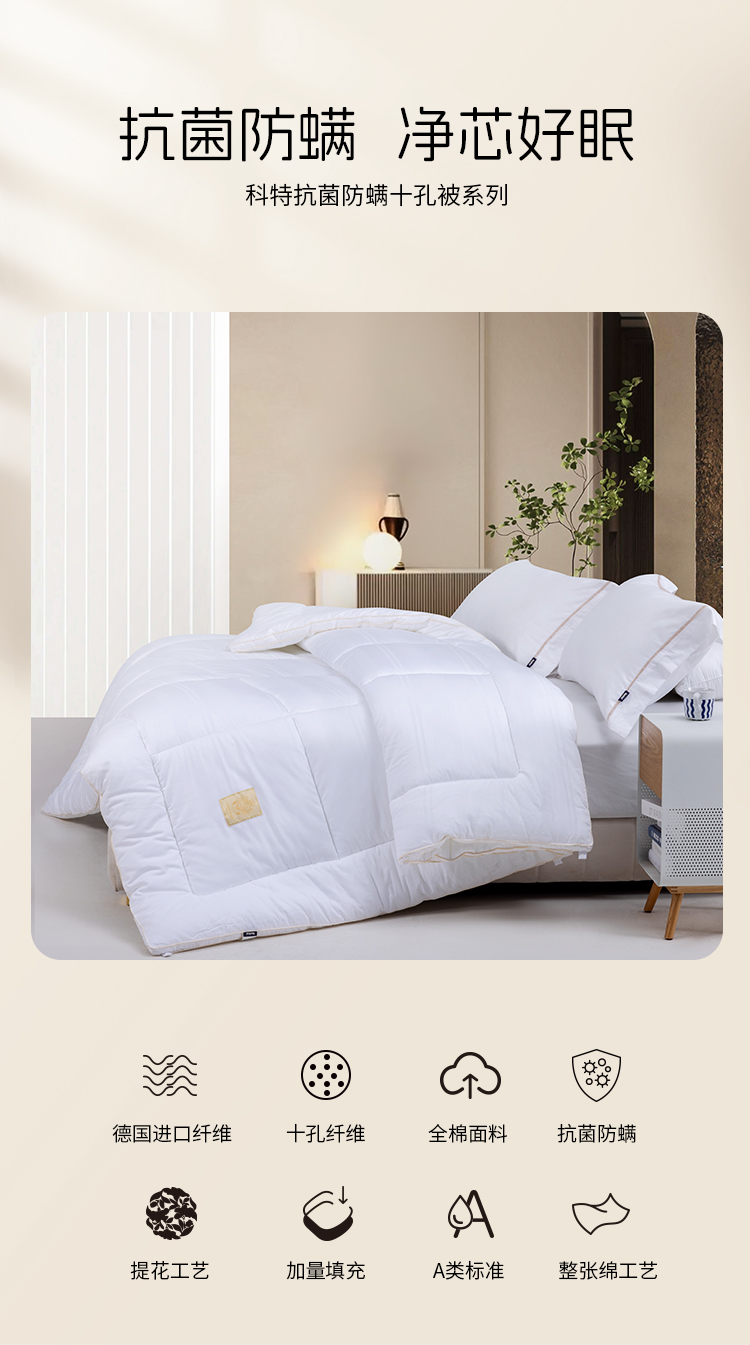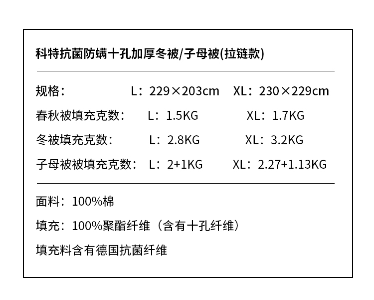多喜爱 科特抗菌防螨十孔春秋被/加厚冬被/拉链子母被【德国进口纤维】【全棉面料】【提花工艺】【A类标准】【织带织标】加量填充 整张绵工艺