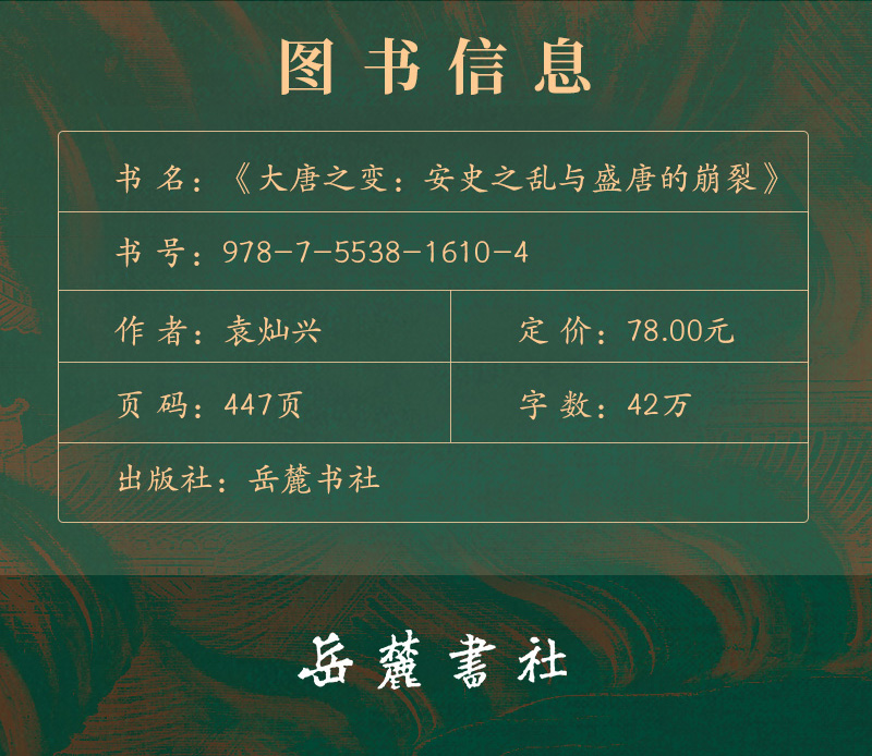大唐之变: 安史之乱与盛唐的崩裂 袁灿兴著 岳麓书社