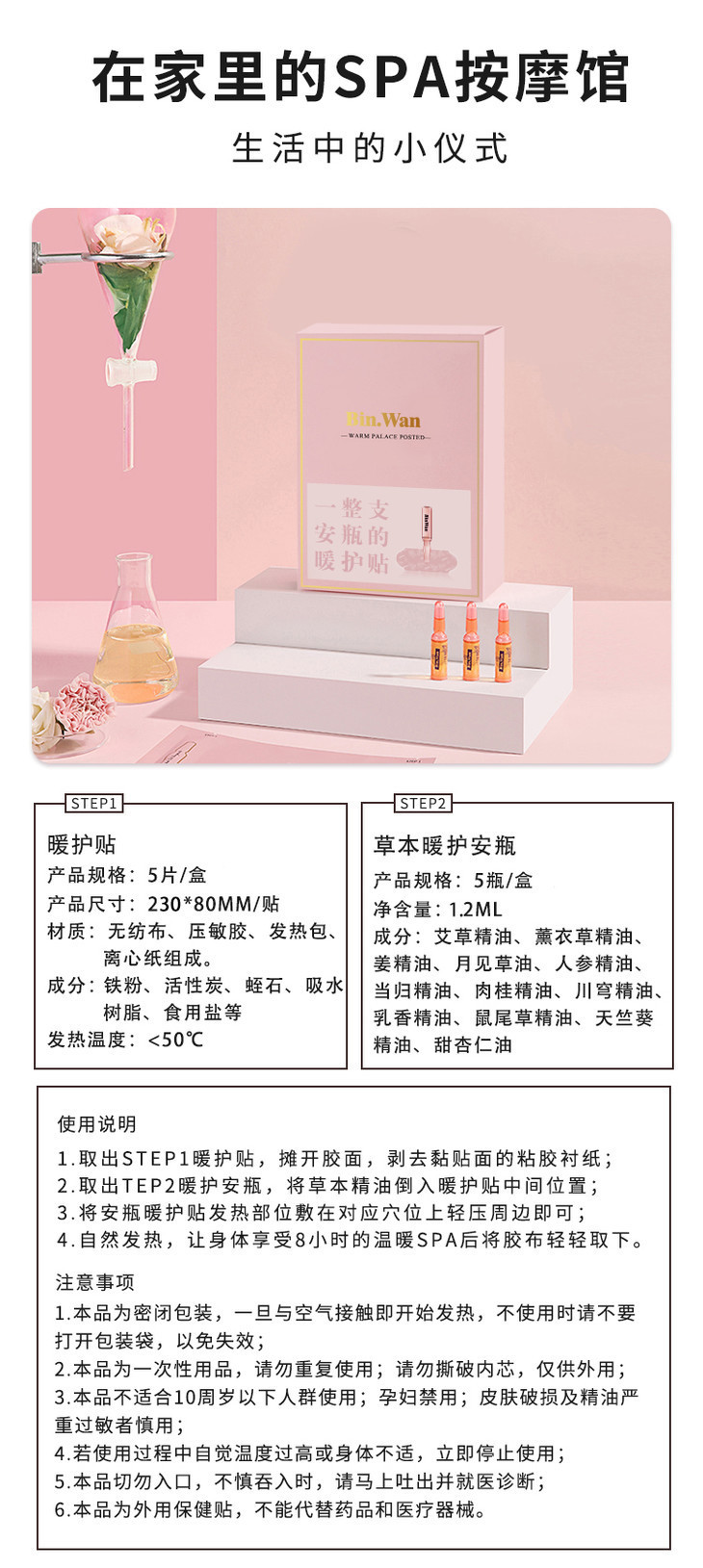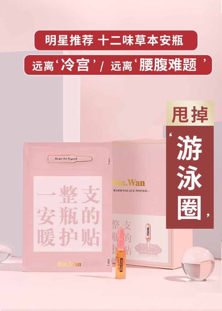 「明星推荐远离“湿胖”」BINWAN彬万安瓶精油暖宫贴恒温发热缓解宫寒十二味草本安瓶艾草热敷轻巧便携超值3盒装