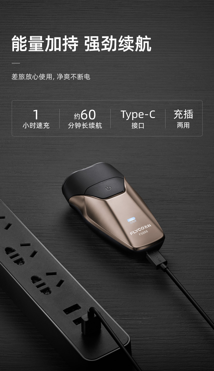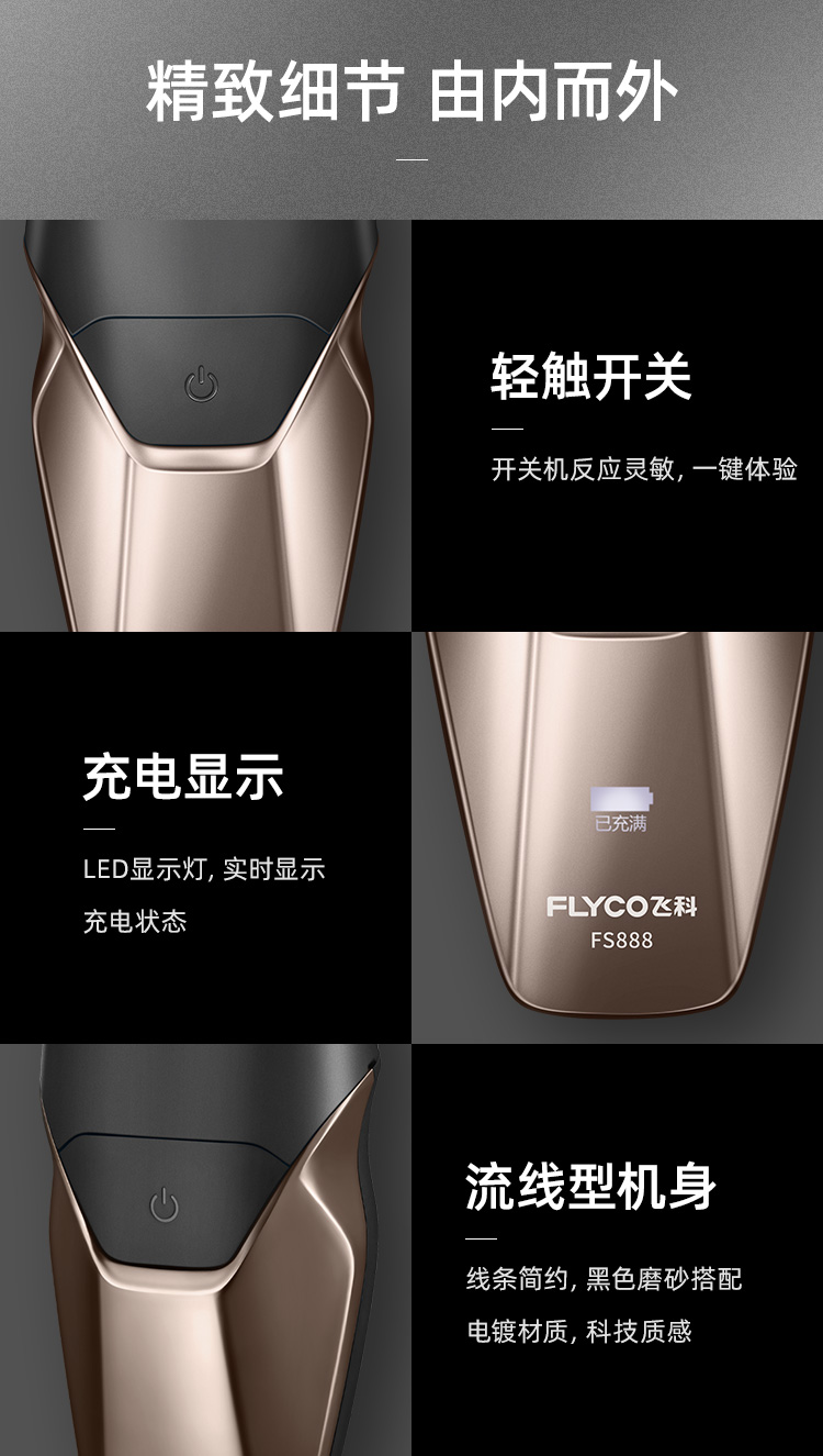 飞科(FLYCO)电动剃须刀 男士刮胡刀 全身水洗 便携充电式车载胡须刀FS888(线下同款)