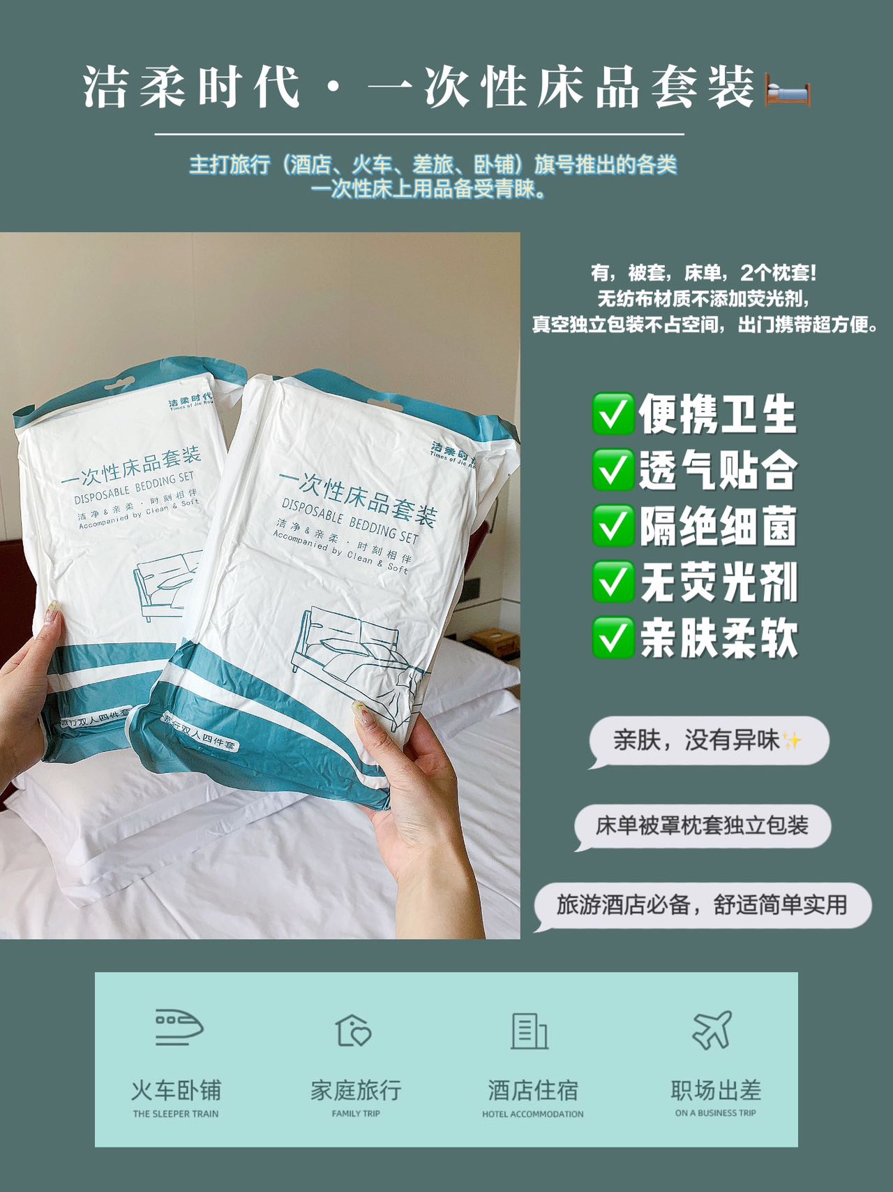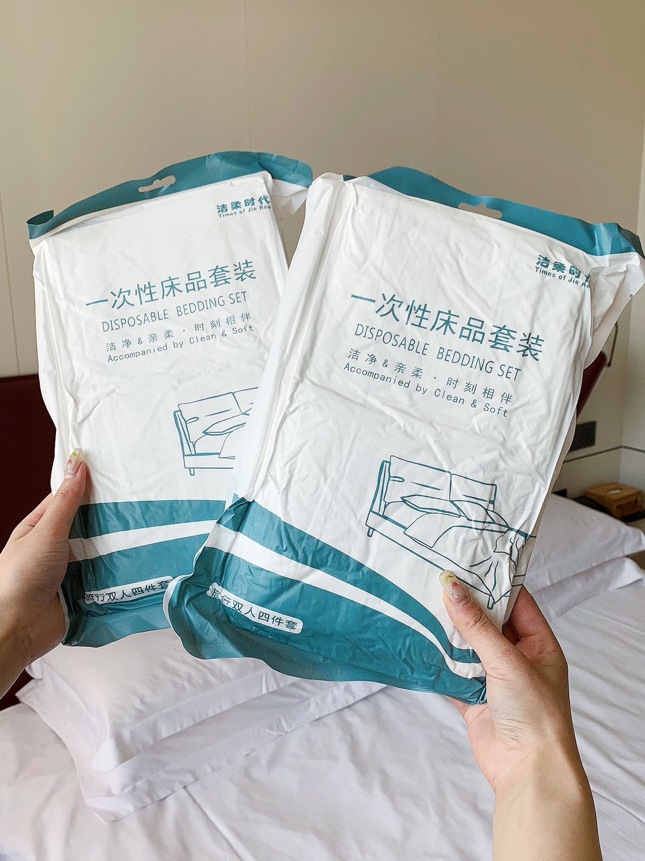 旅行健康有保障 | 一次性便携套装床品四件套床单被罩/浴巾/毛巾组合装 旅行出差必备