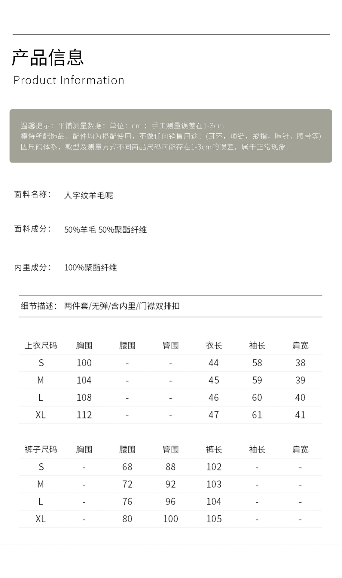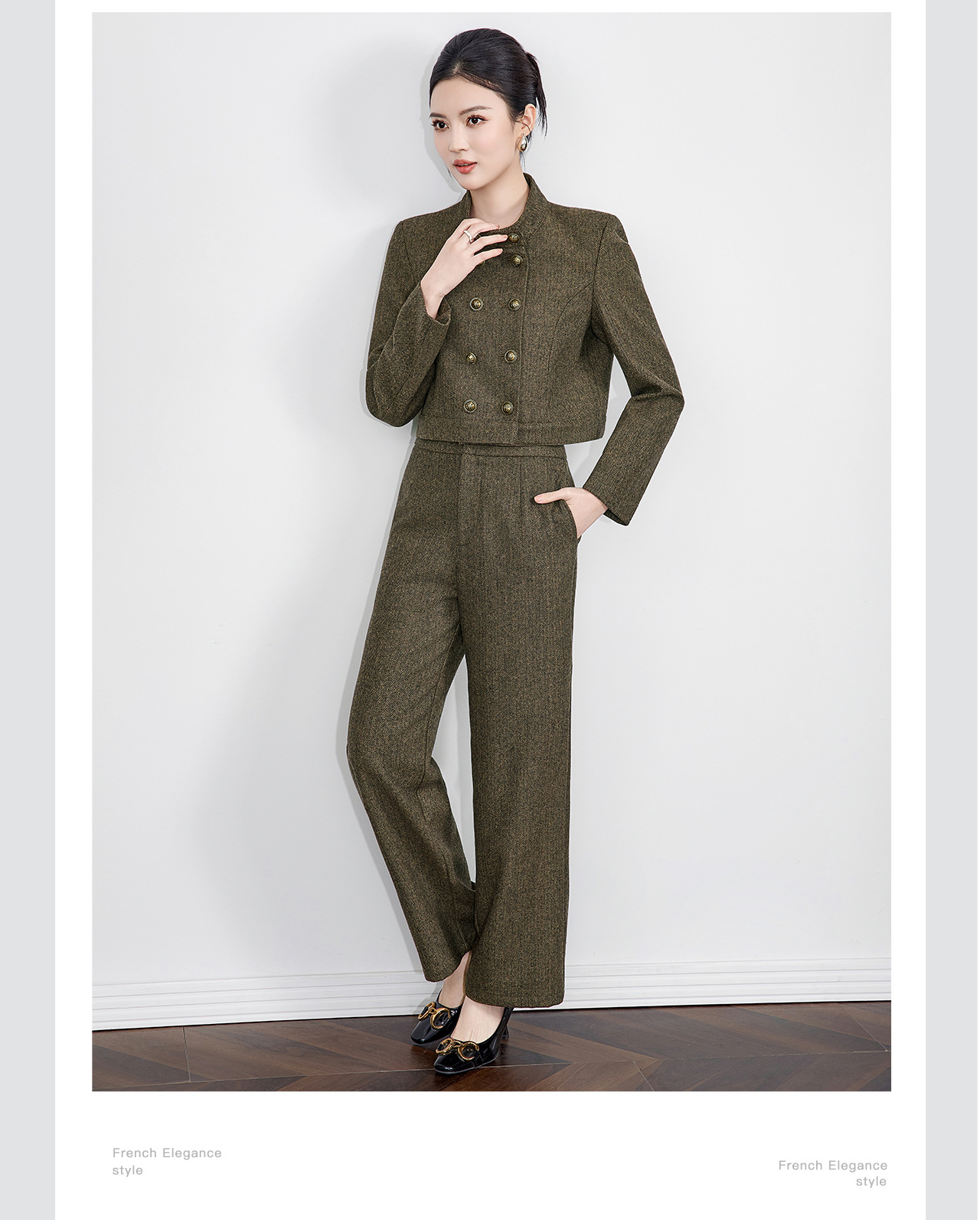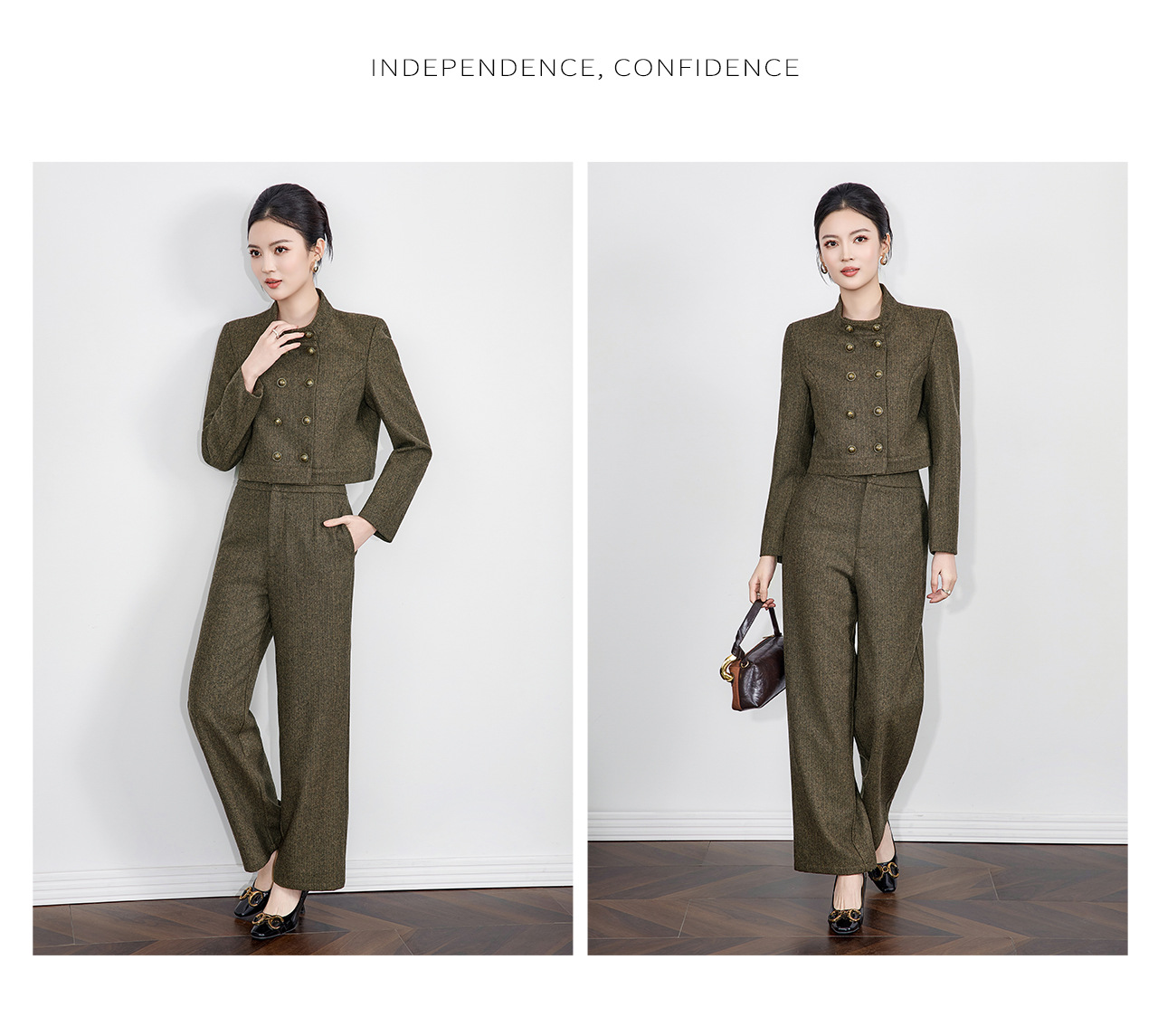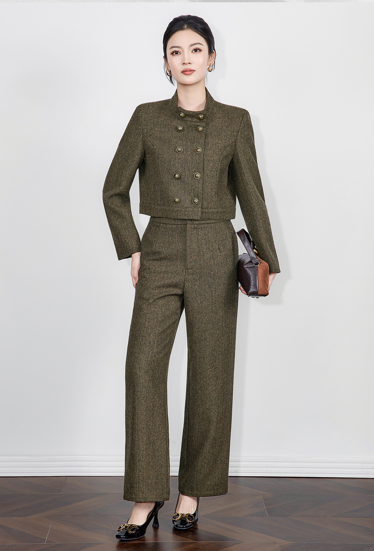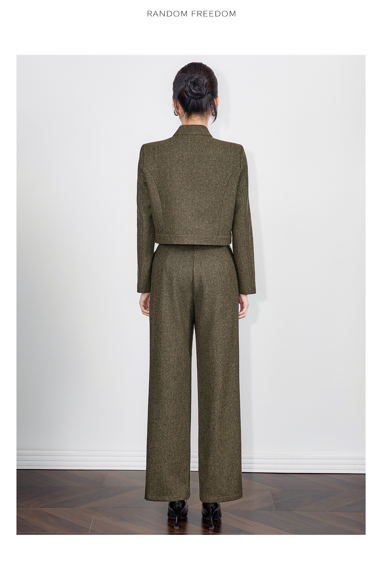 「高货wl」全新升级【铂金会员468/天猫629/差价161】(99511)洛诗琳2025秋冬气质人字纹羊毛呢外套高腰阔腿裤两件套女