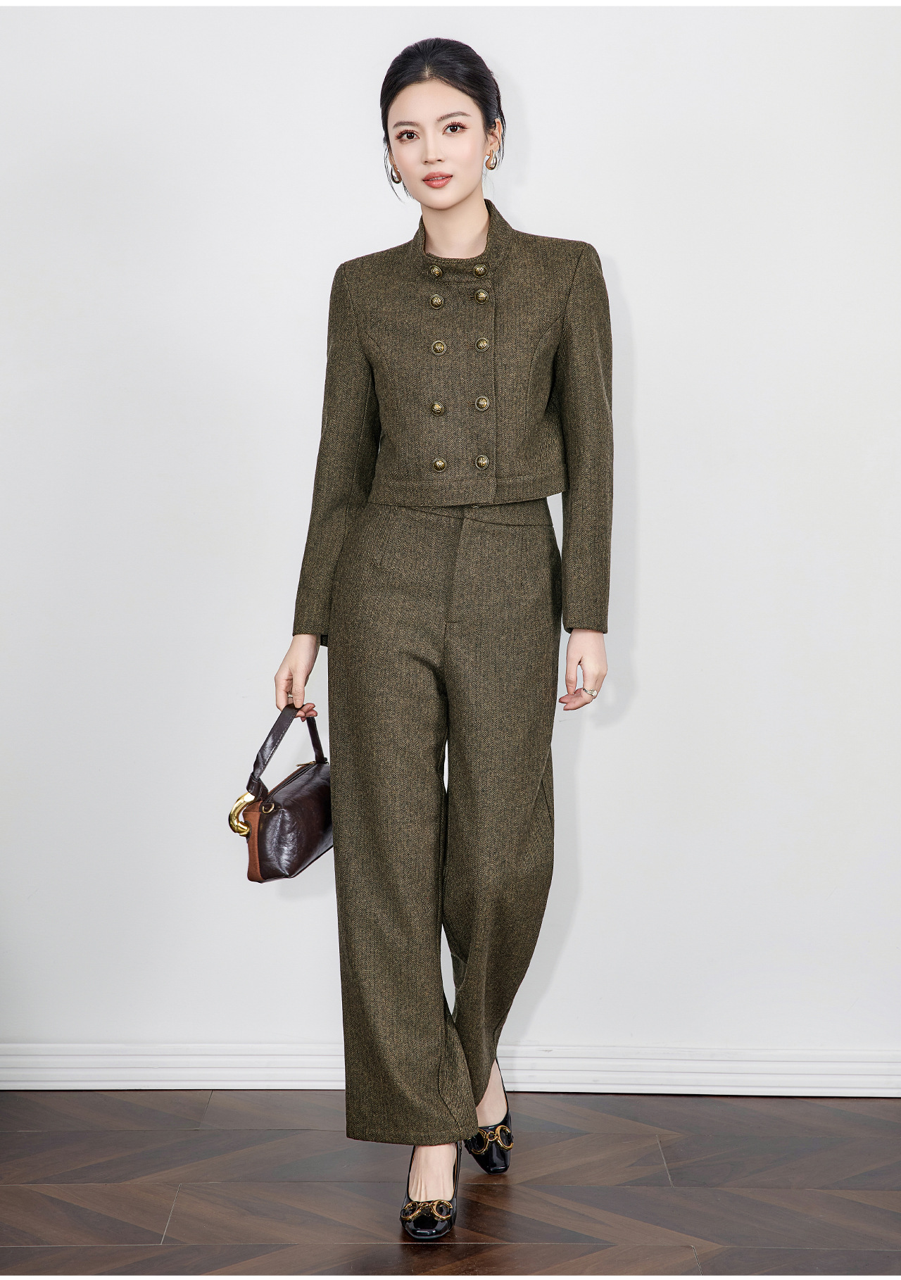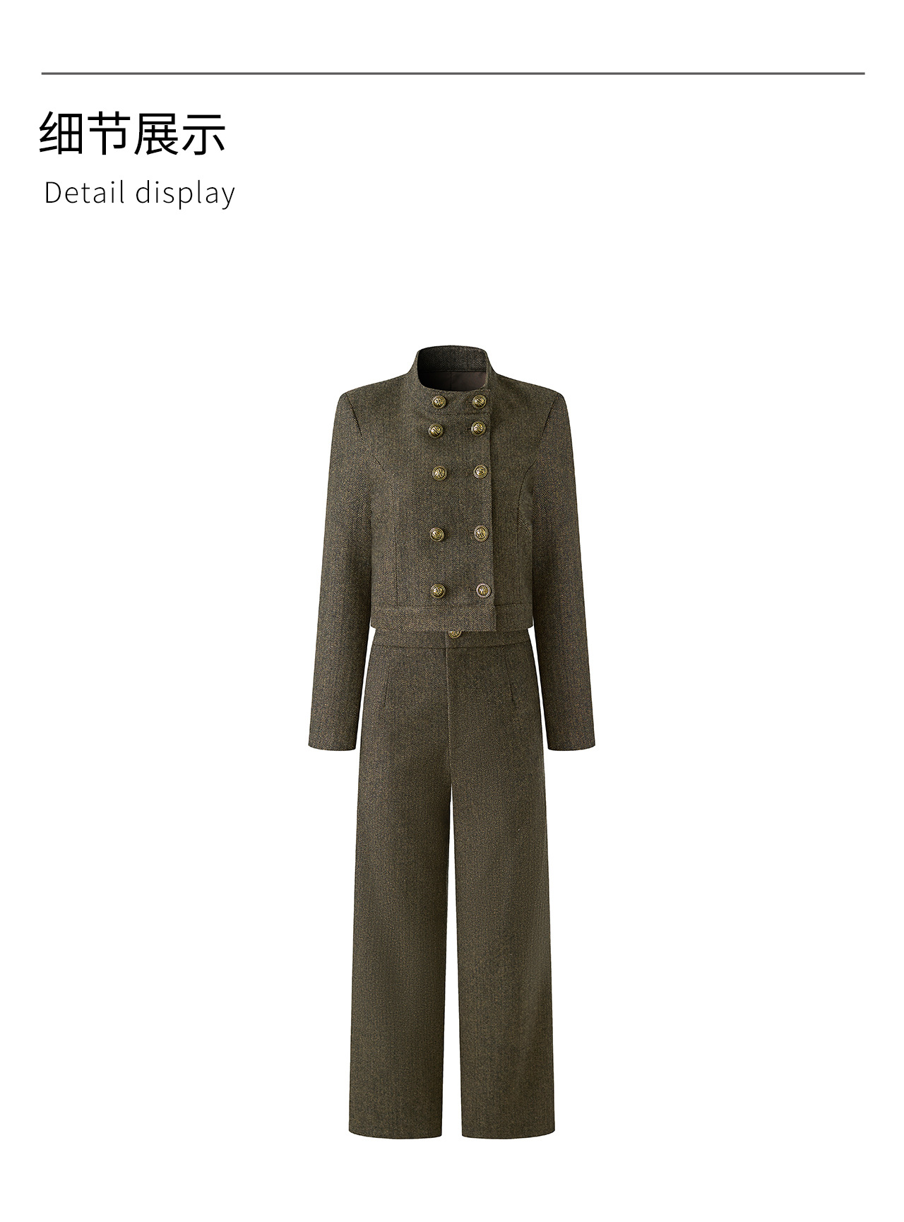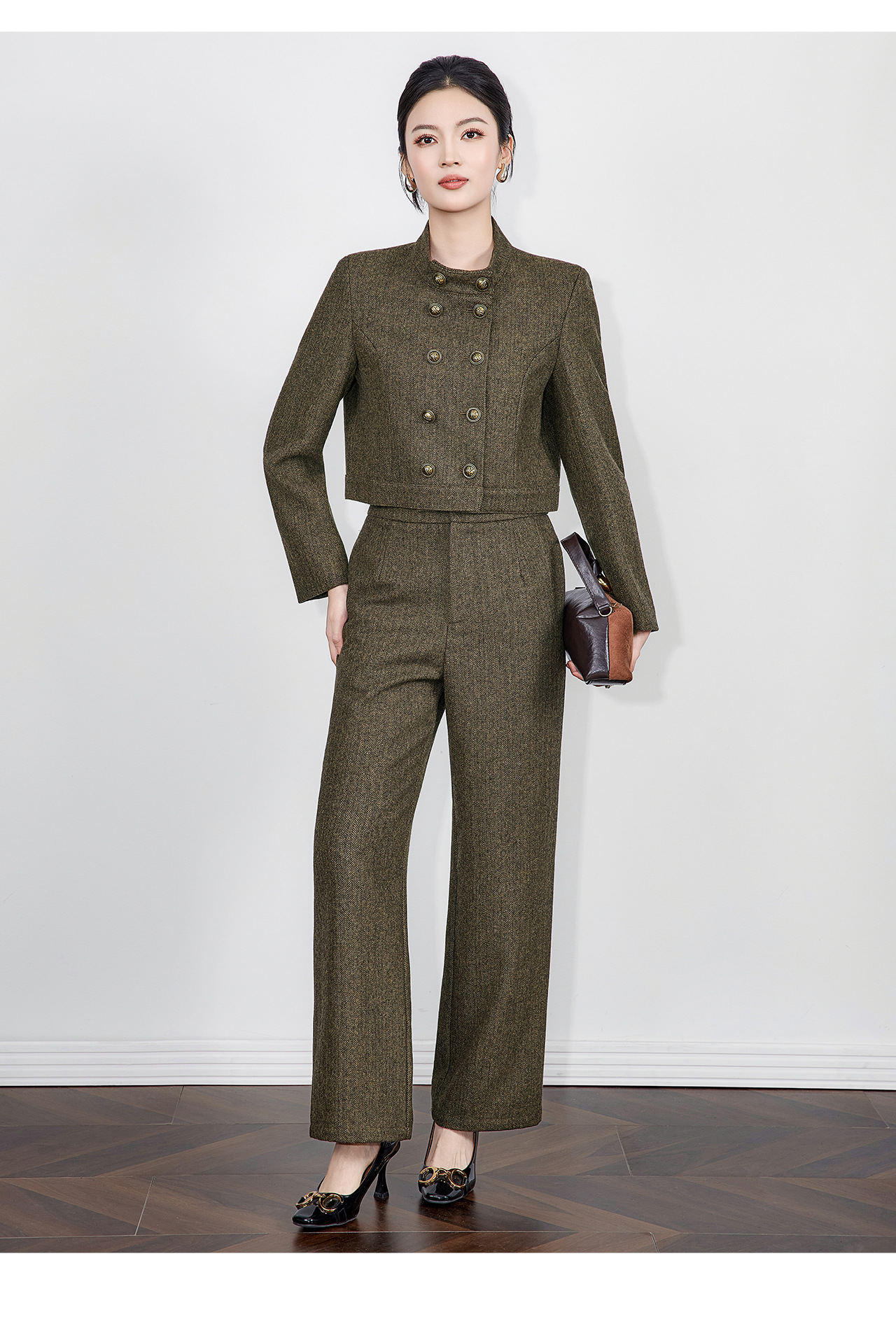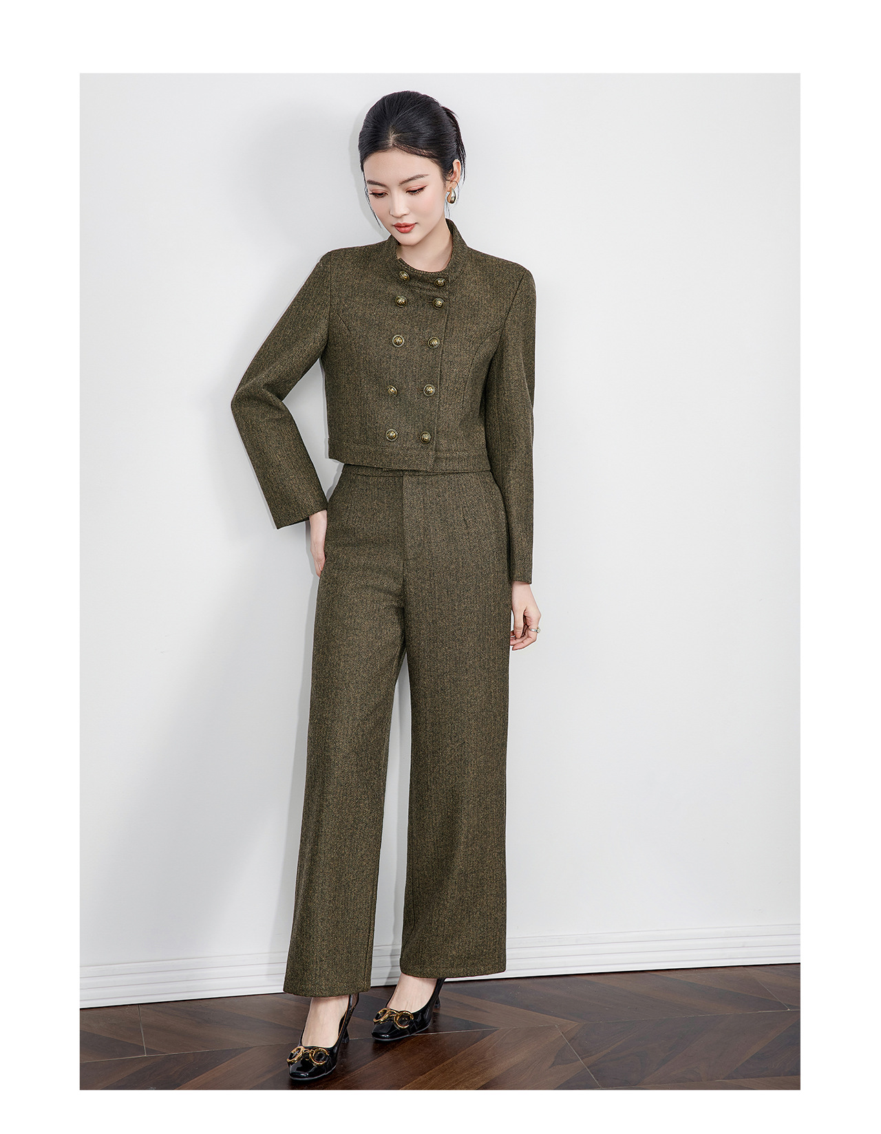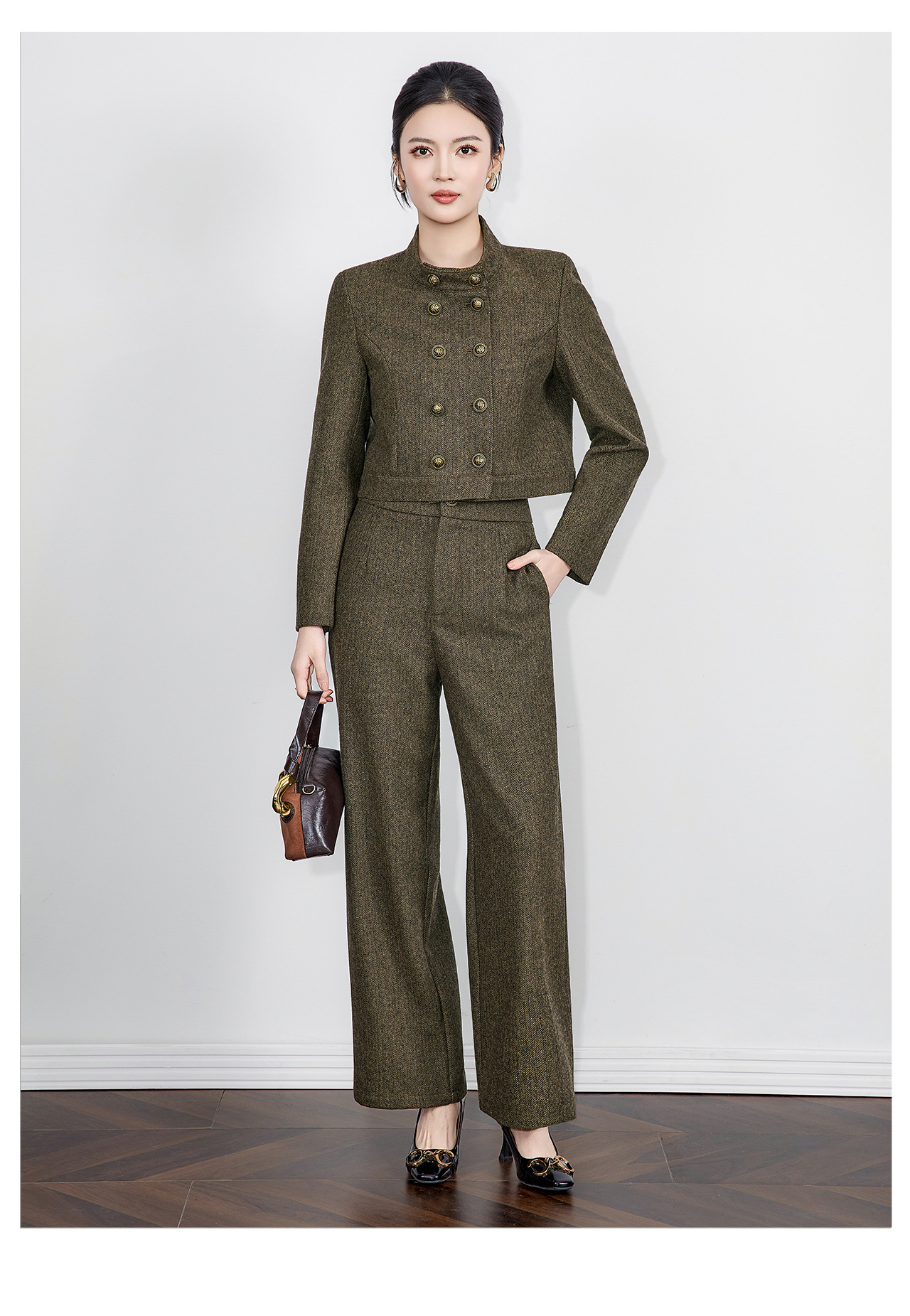 「高货wl」全新升级【铂金会员468/天猫629/差价161】(99511)洛诗琳2025秋冬气质人字纹羊毛呢外套高腰阔腿裤两件套女