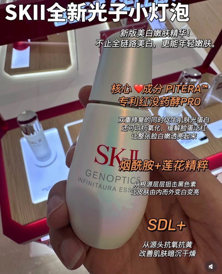 👑SK2光子小灯泡精华露50ml(2025) 💦在旧款小灯泡上配方升级,保留“美白、淡斑、均匀肤色”功效 😇新增多维度“肌肤综合调理力,真正从内到外发光” ✅质地偏柔润,触感更细腻,修护感更强 💥全肤质都可使用,一瓶搞定提亮+修护+初老预防 🔥无论你是肤色不均、容易泛红、换季敏感人群,它都可以安抚任何肌肤问题!