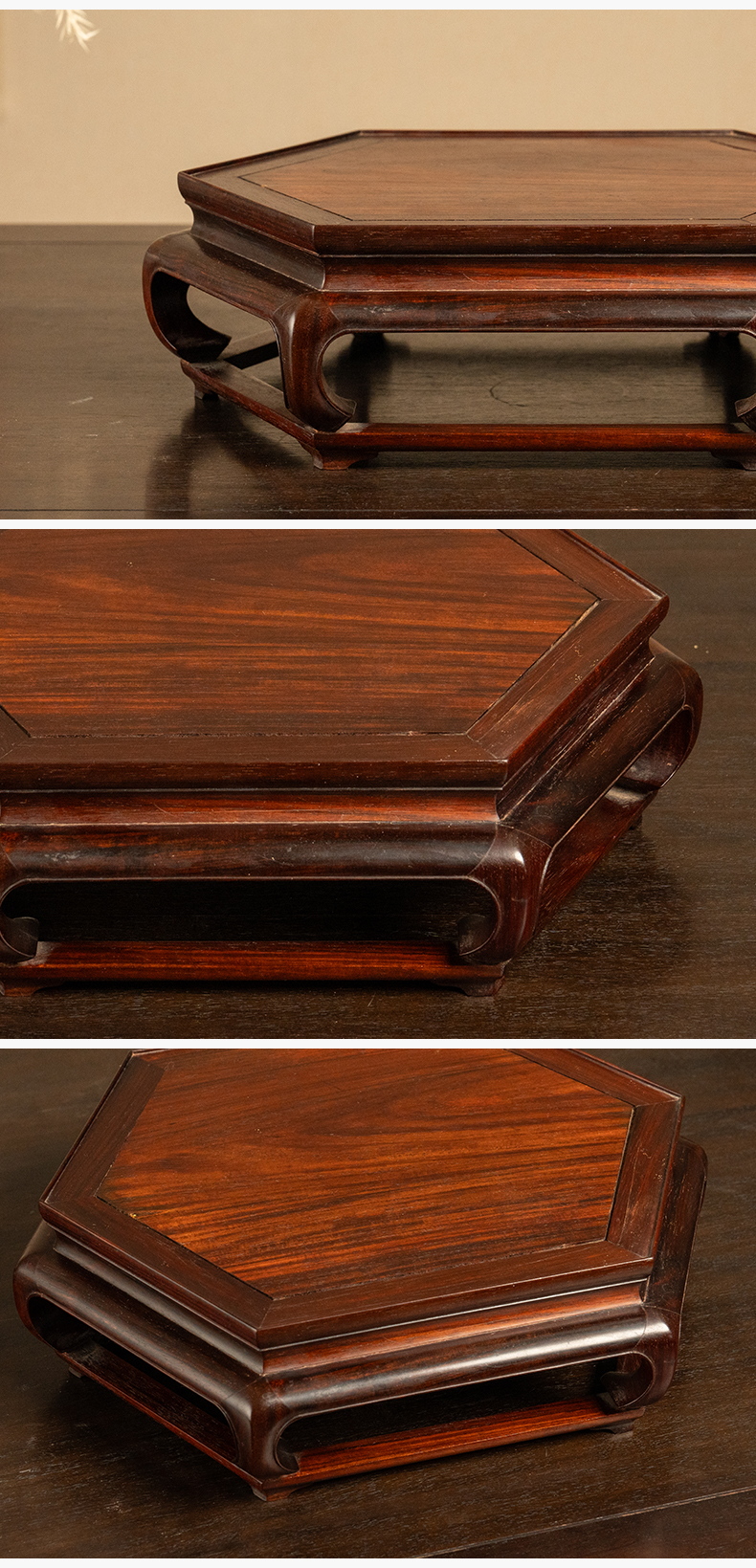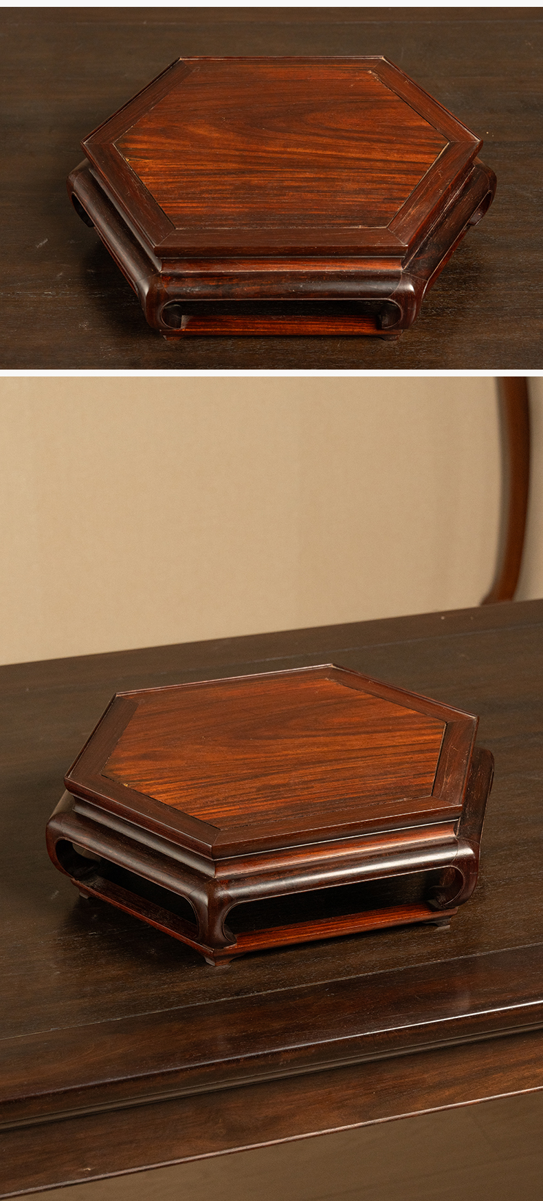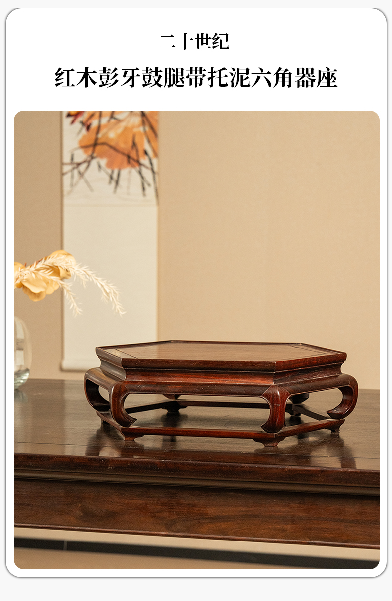 二十世纪 红木彭牙鼓腿带拖泥六角器座