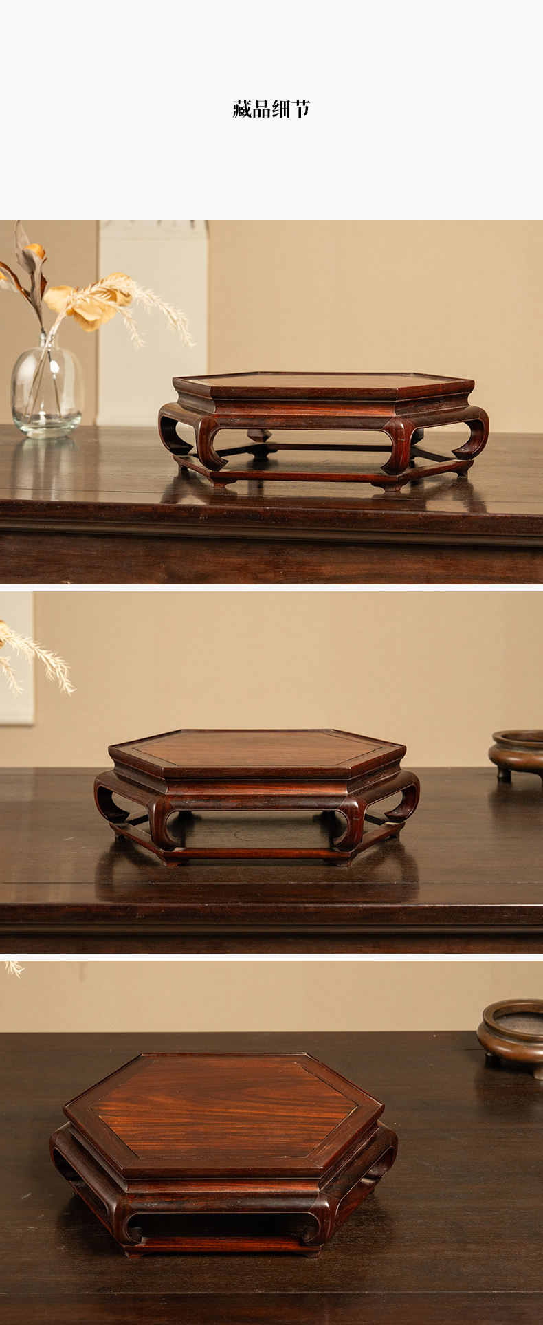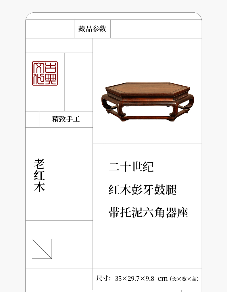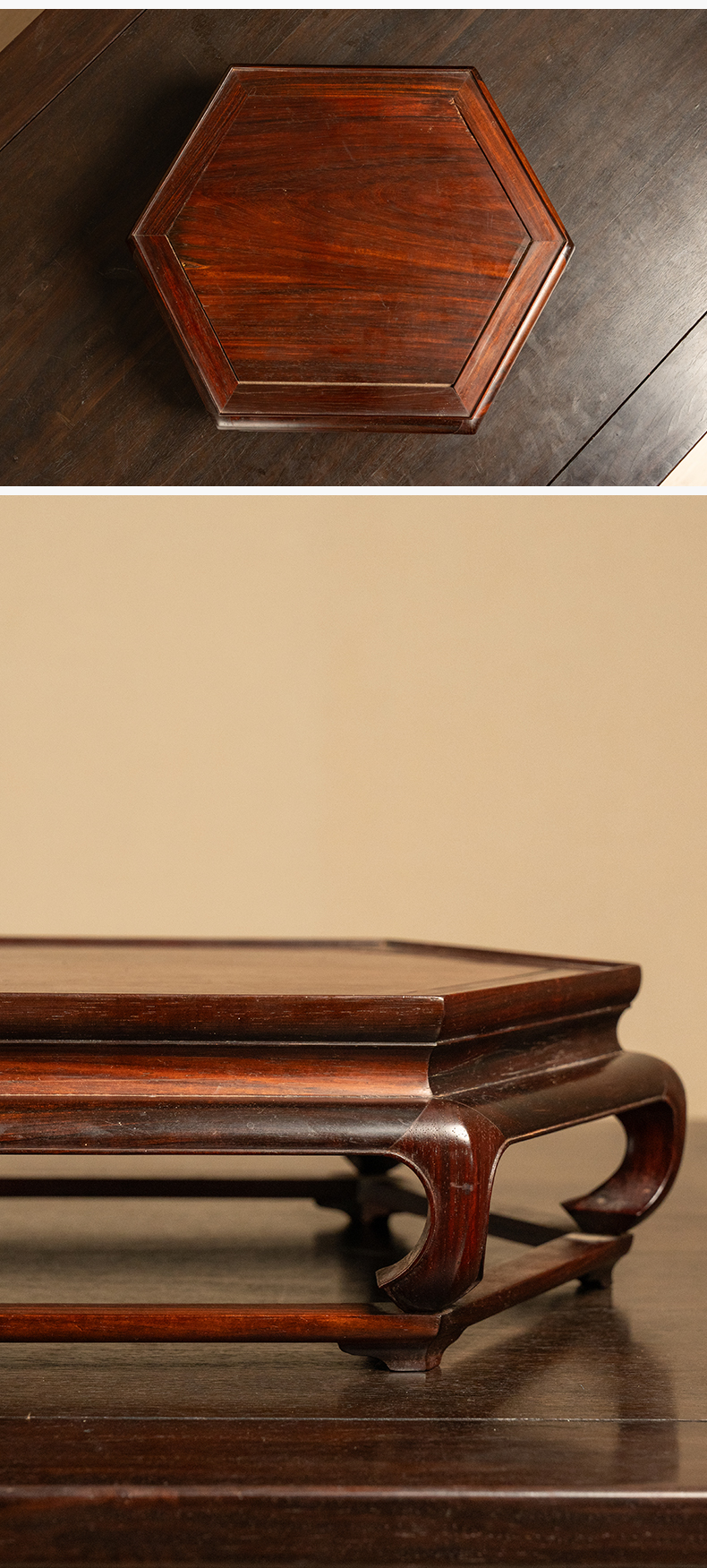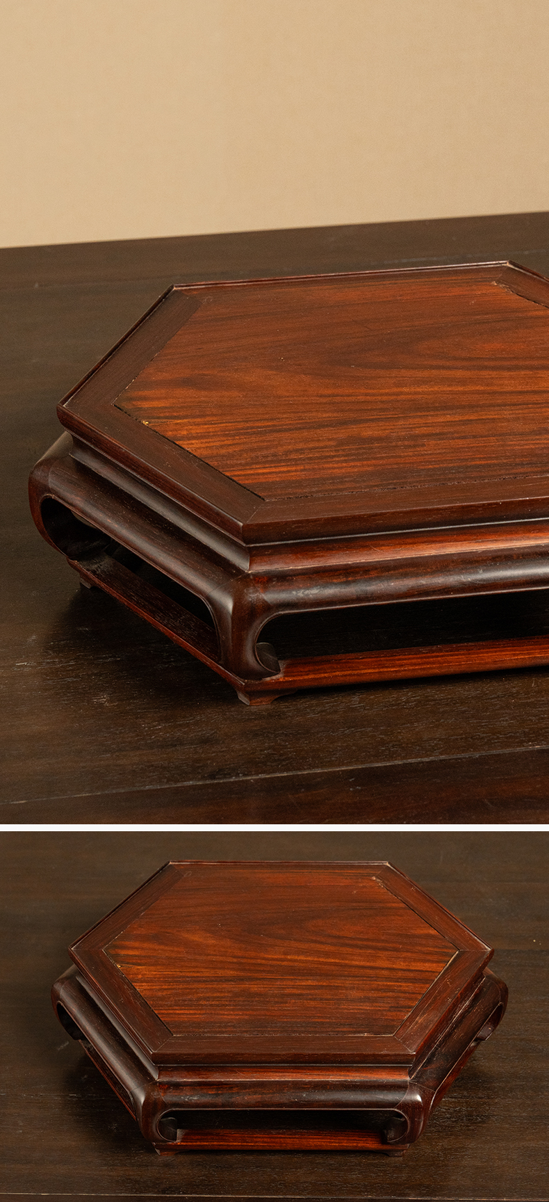 二十世纪 红木彭牙鼓腿带拖泥六角器座