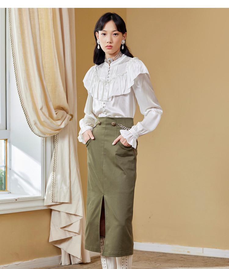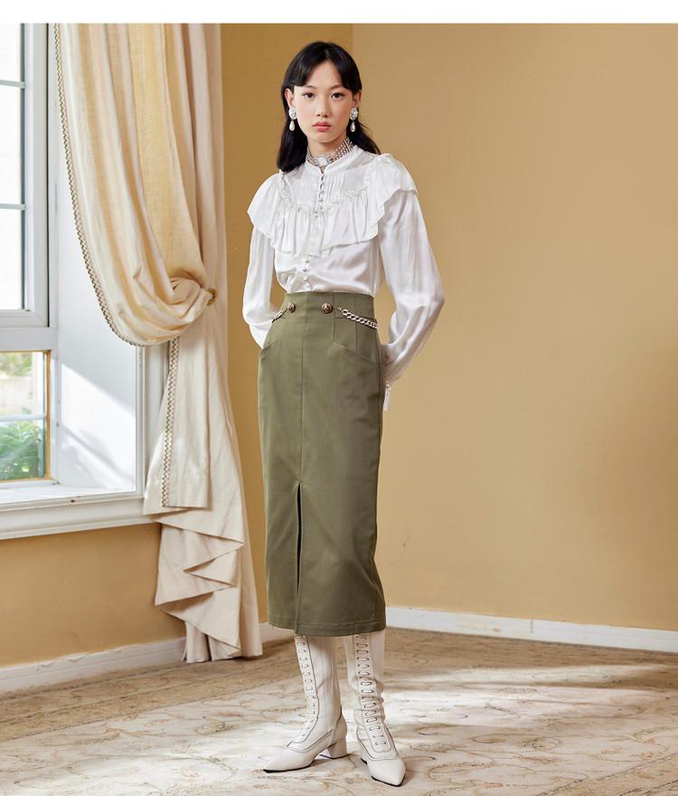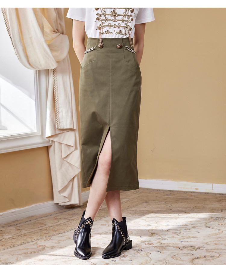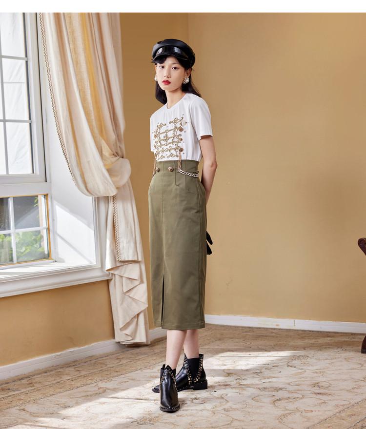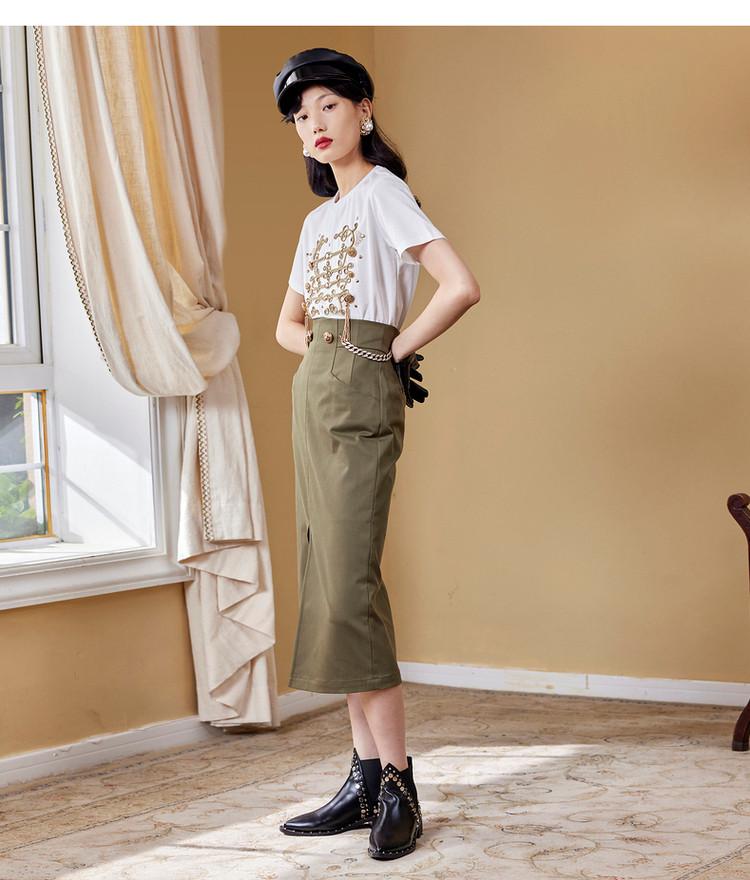 【商场同款】MAXRIENY女爵链条直筒裙2022秋复古高腰半身裙气质(货号:MC87SK511)