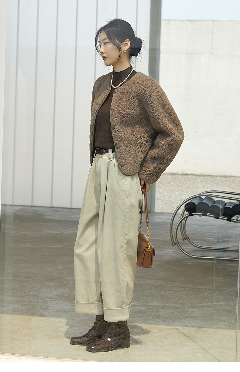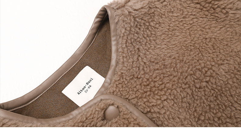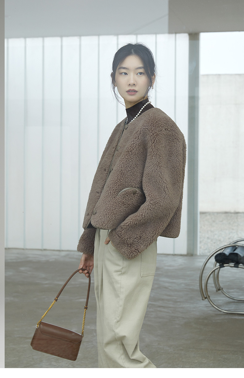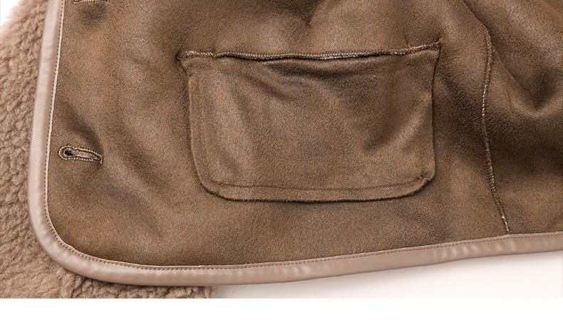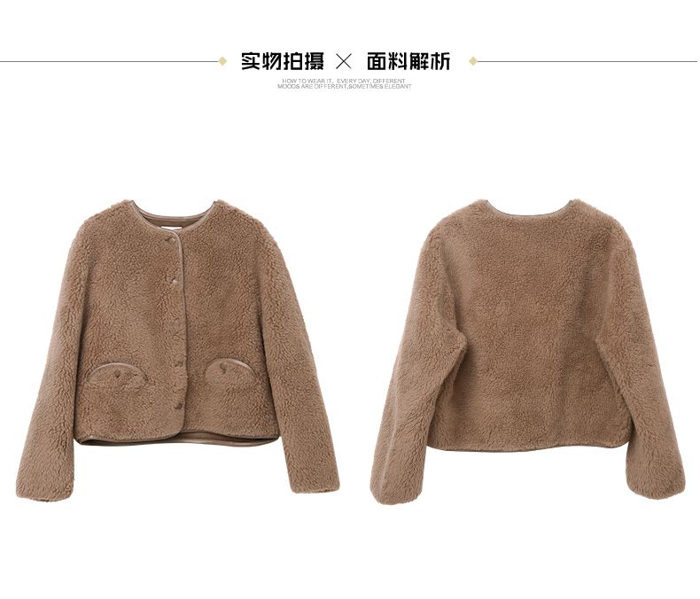 卡其色羊羔毛短款外套 复古风圆领单排扣皮毛一体上衣 冬季保暖显瘦百搭女式毛绒夹克
