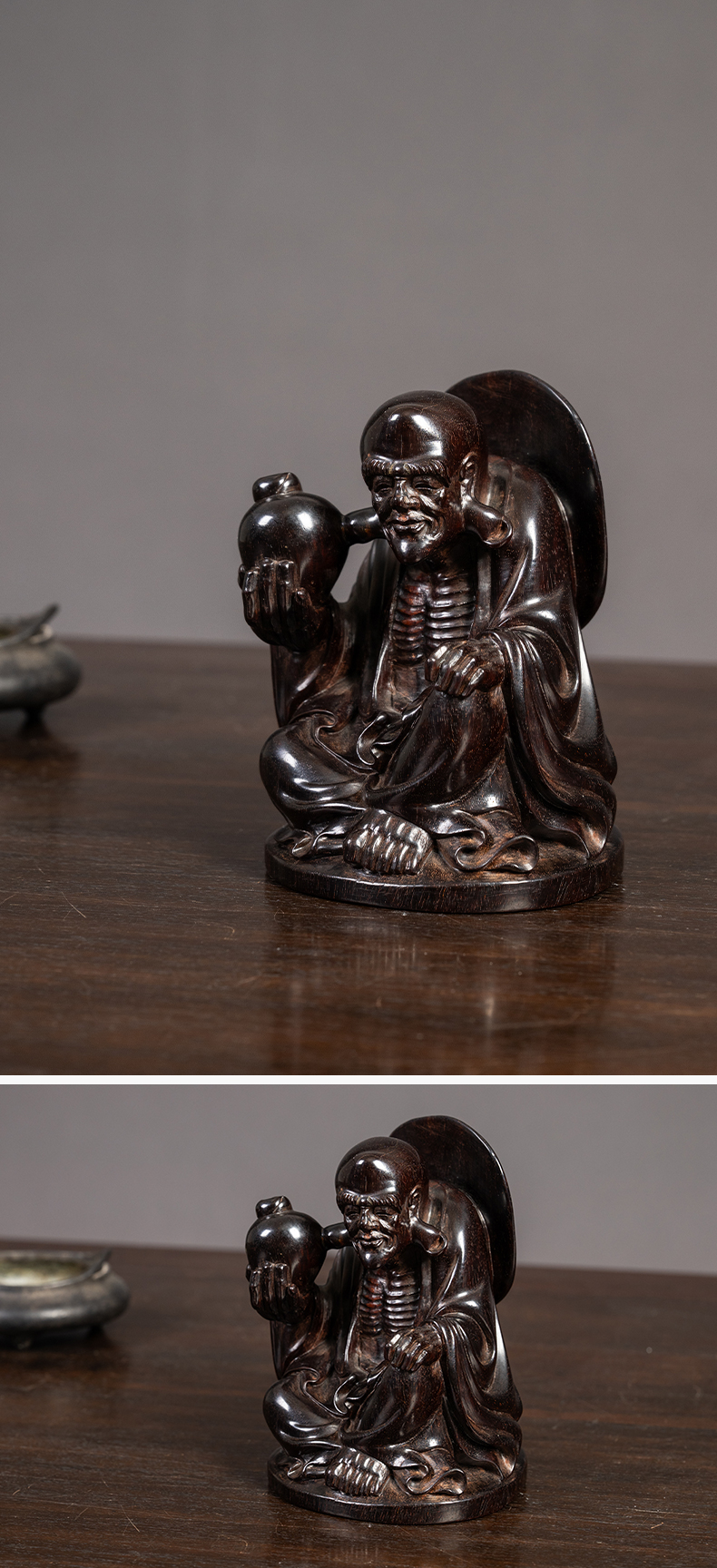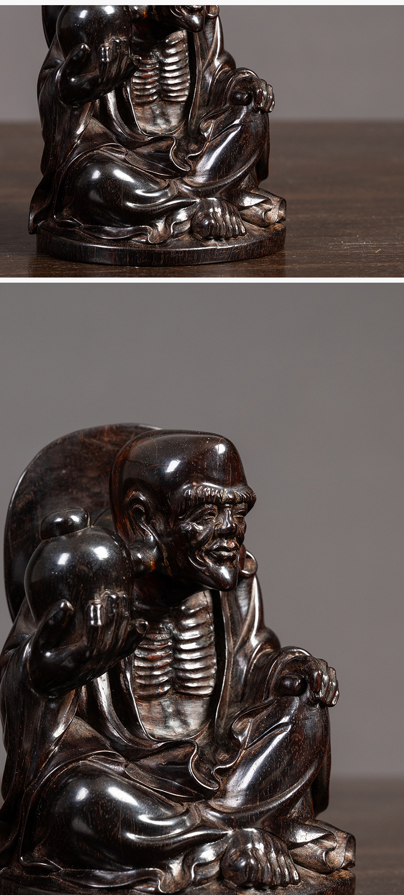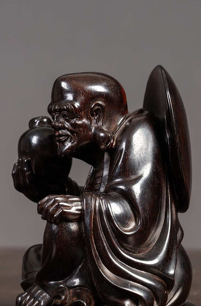 清 紫檀木雕长耳罗汉像