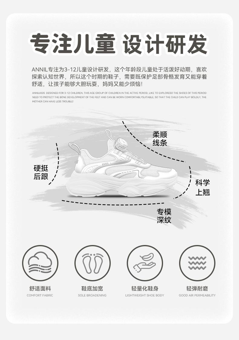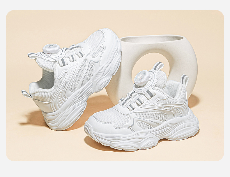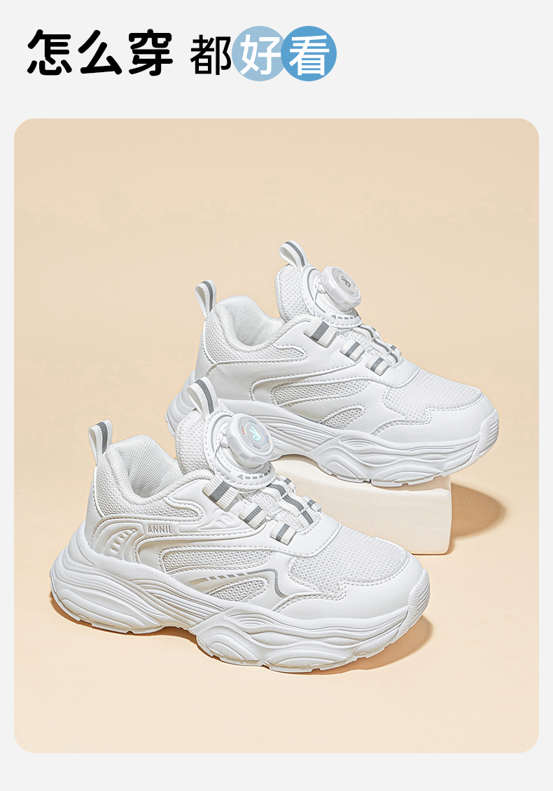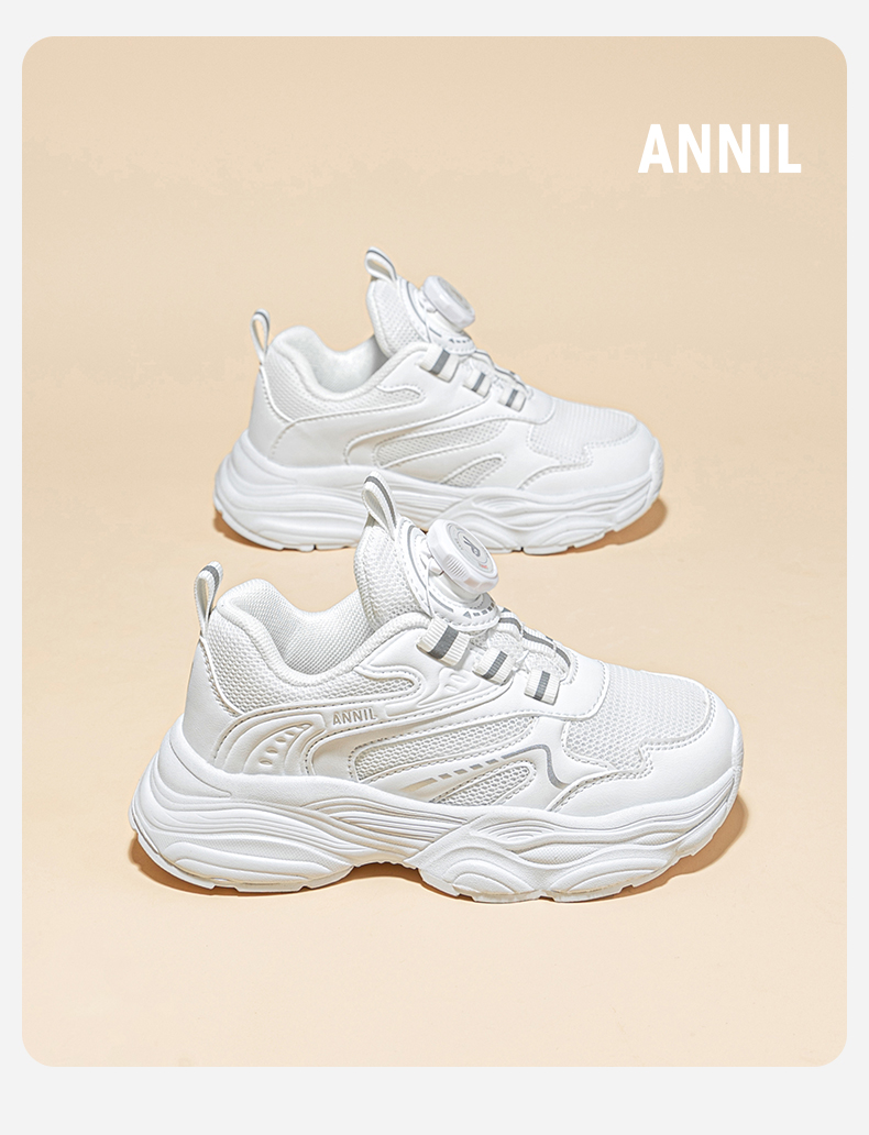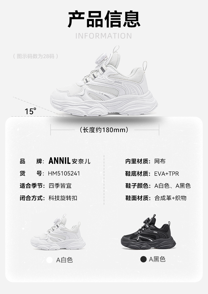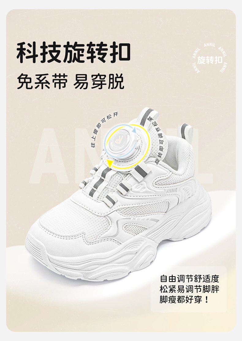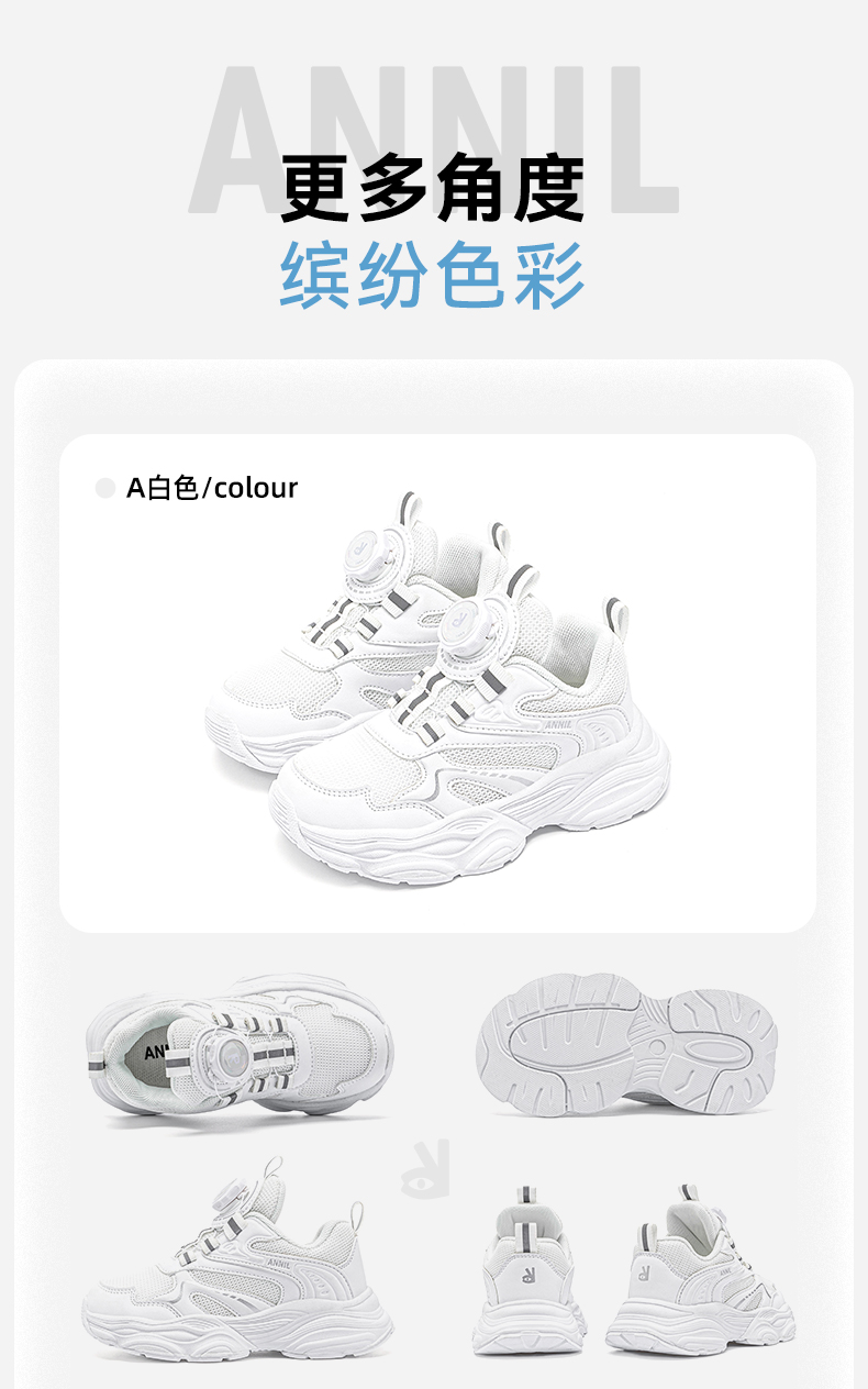ANNIL/安奈儿儿童运动鞋2025新款春季女童小白鞋透气网面男童旋钮跑步鞋HM5105241