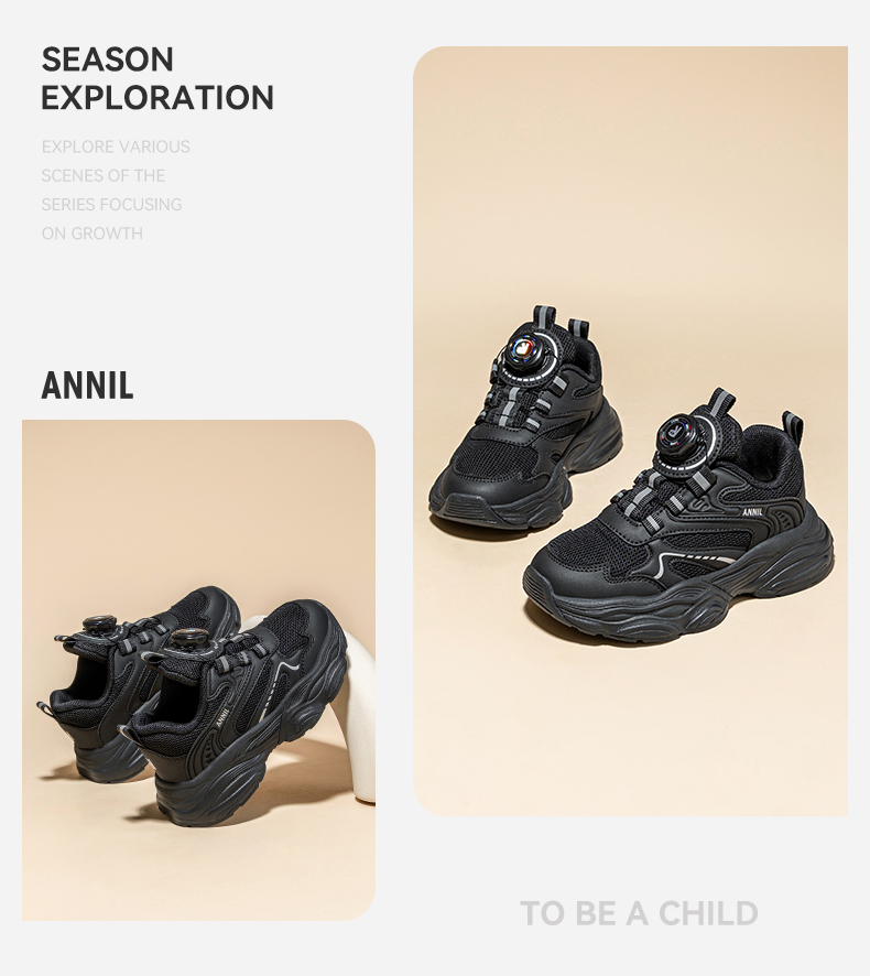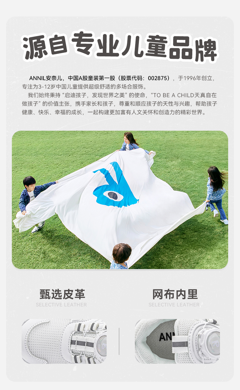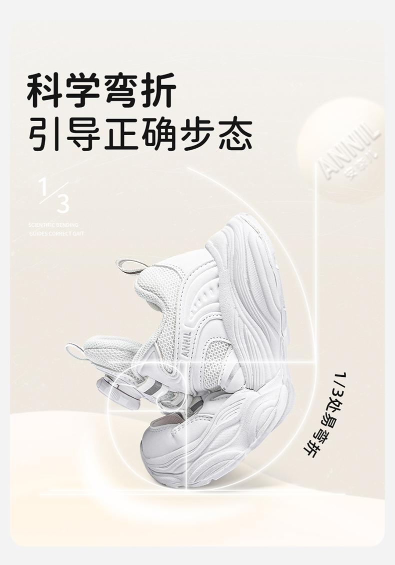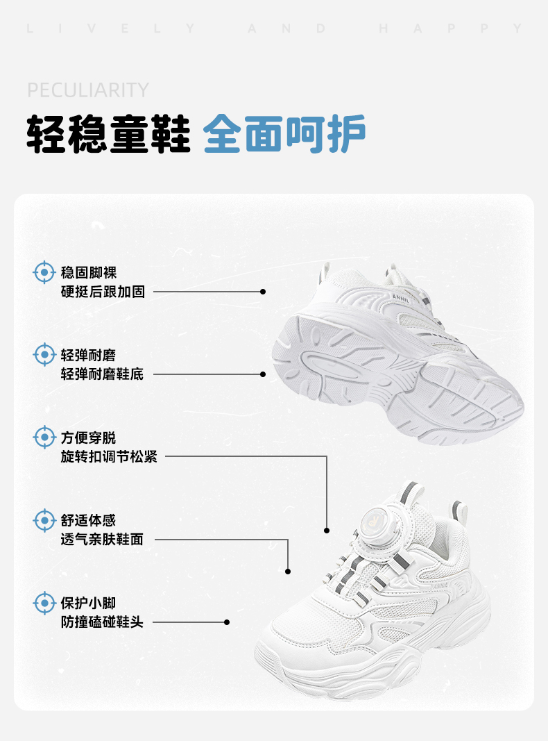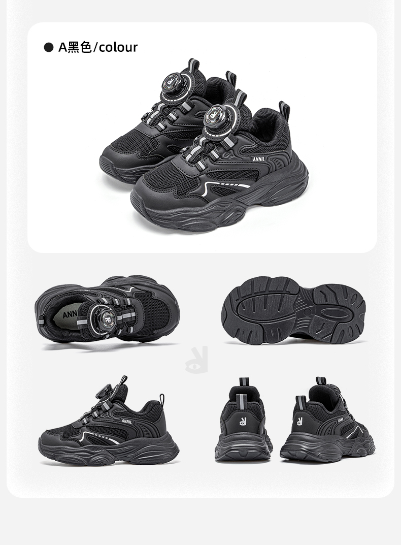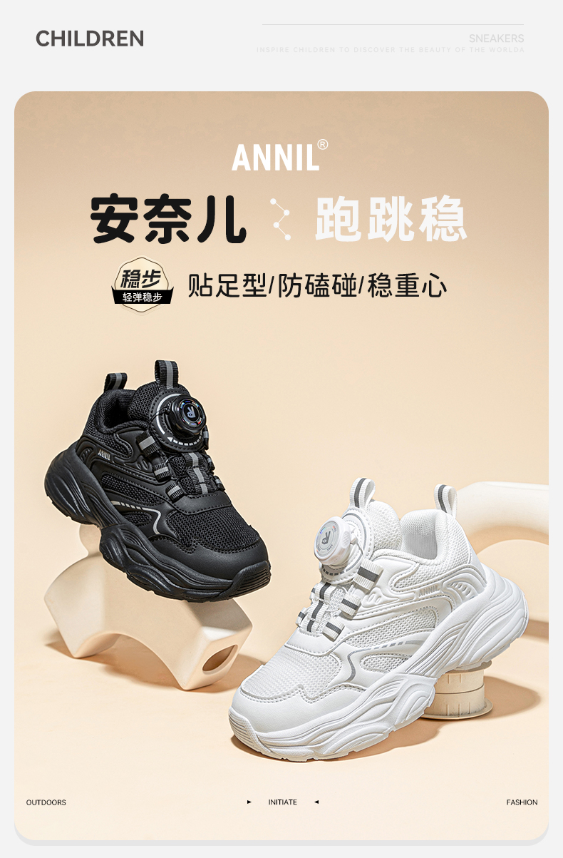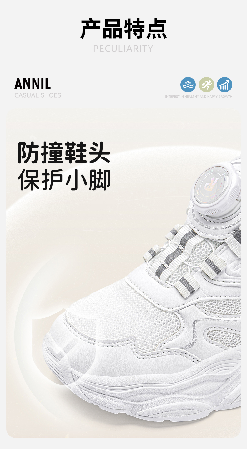 ANNIL/安奈儿儿童运动鞋2025新款春季女童小白鞋透气网面男童旋钮跑步鞋HM5105241