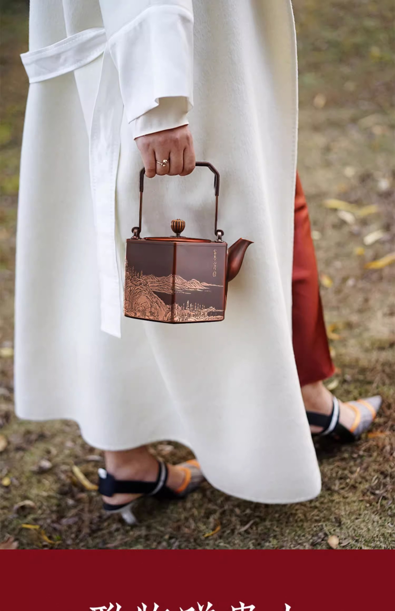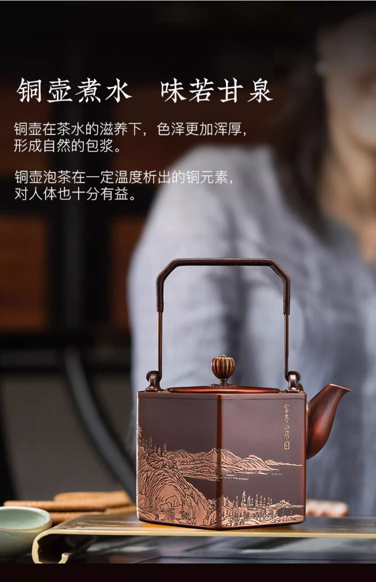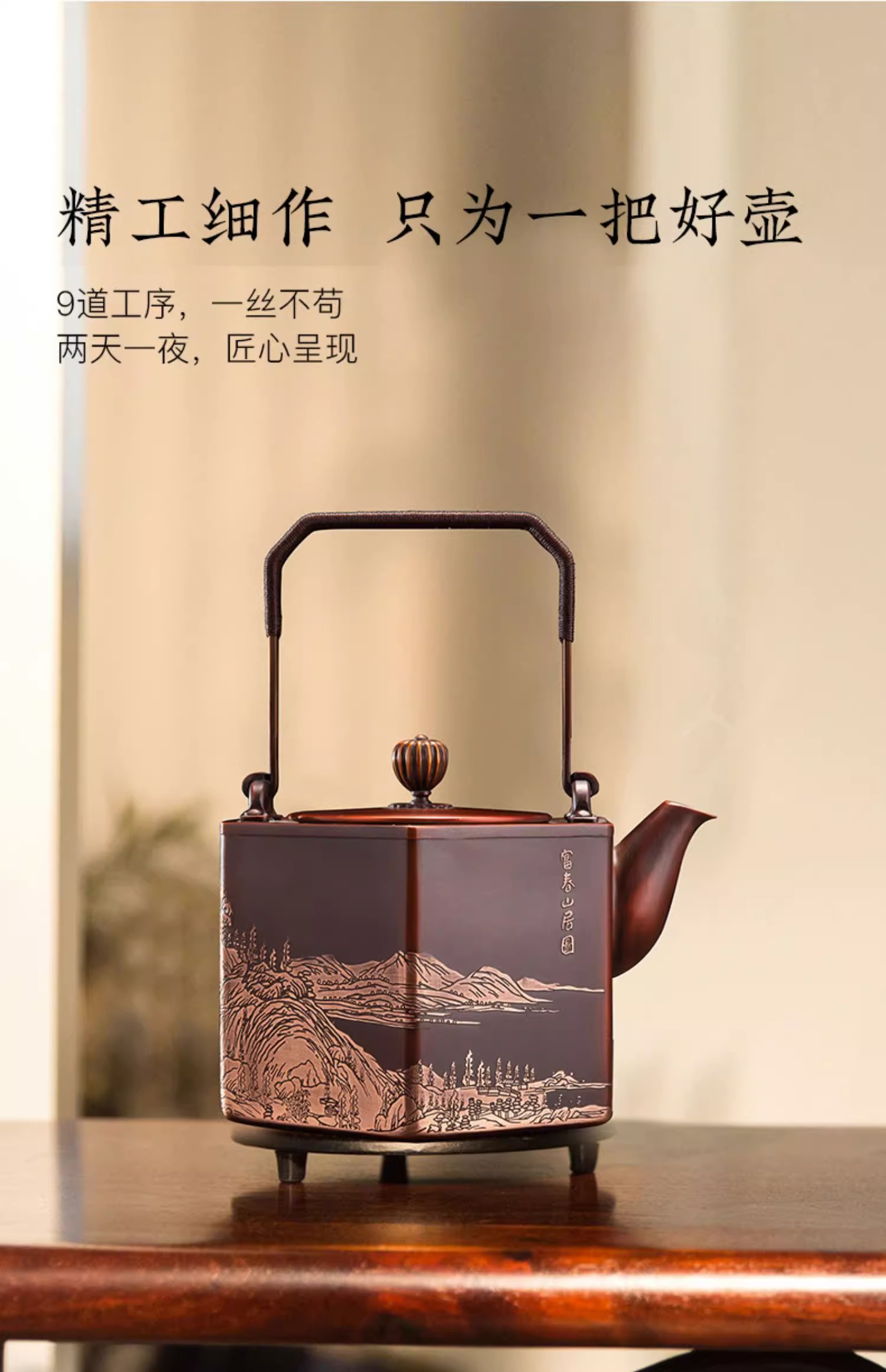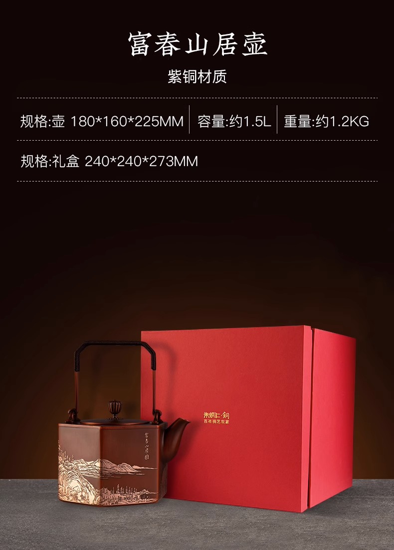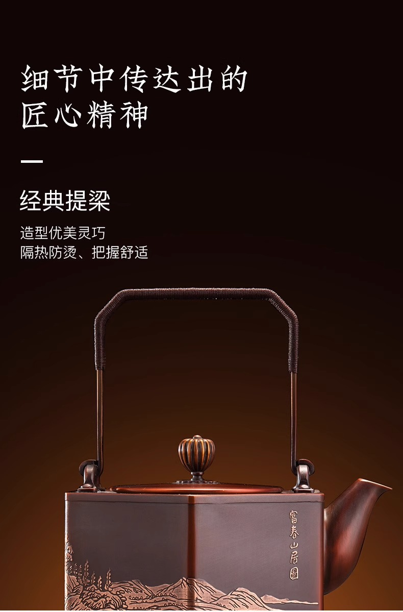 朱炳仁铜 富春山居壶 铜壶新中式复古煮茶壶家用大号烧水壶