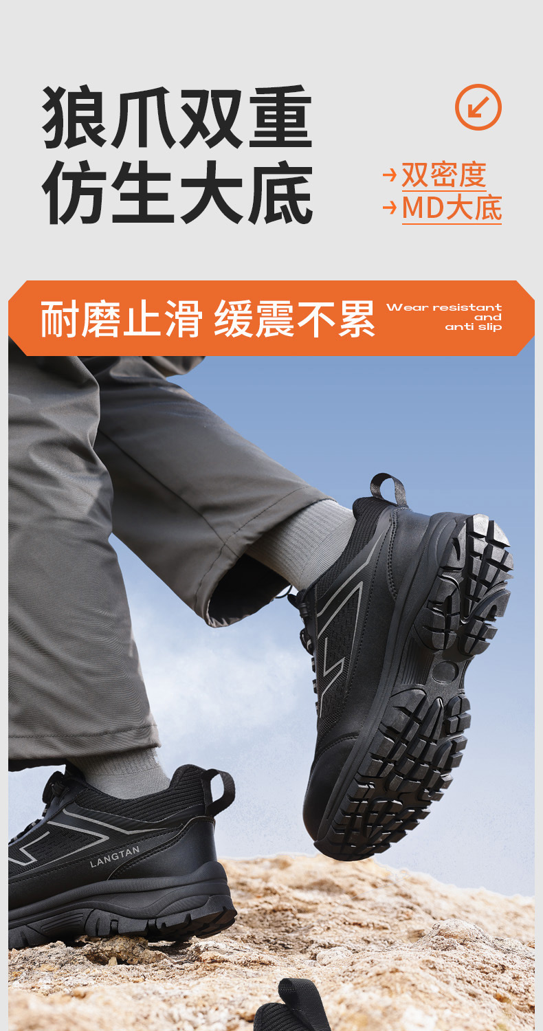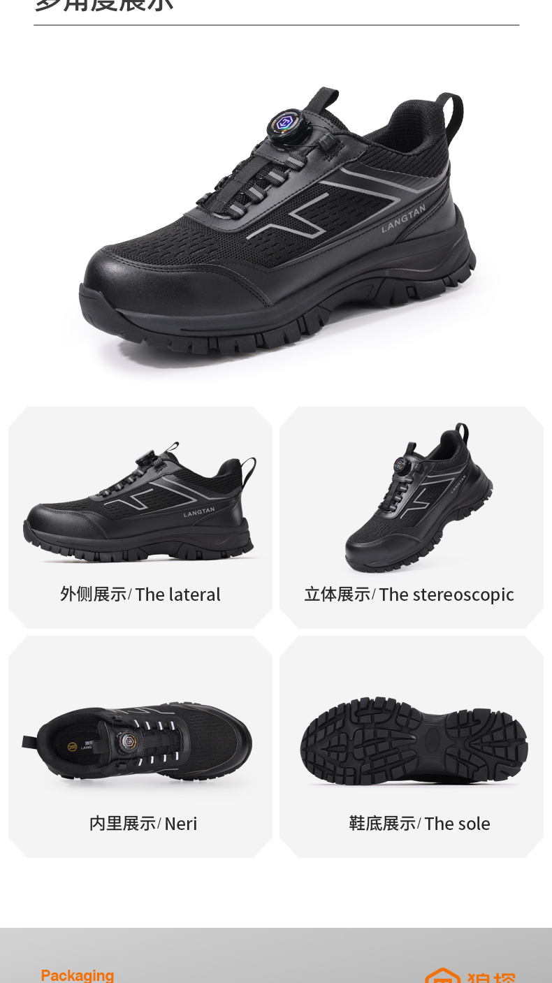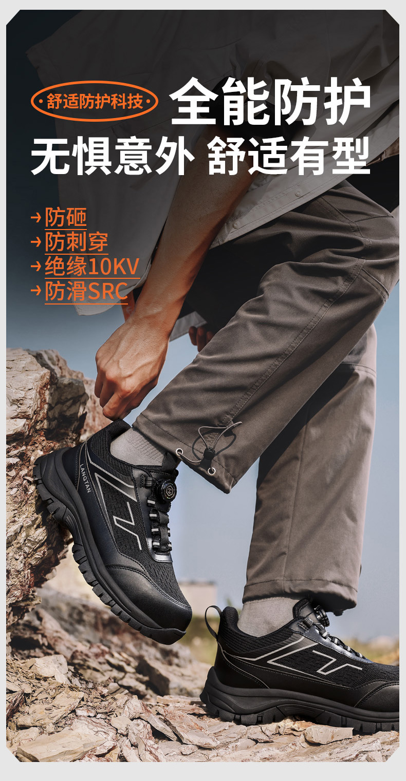 狼探新品透气劳保鞋男防砸防刺网布工地安全鞋实心底耐磨抗造