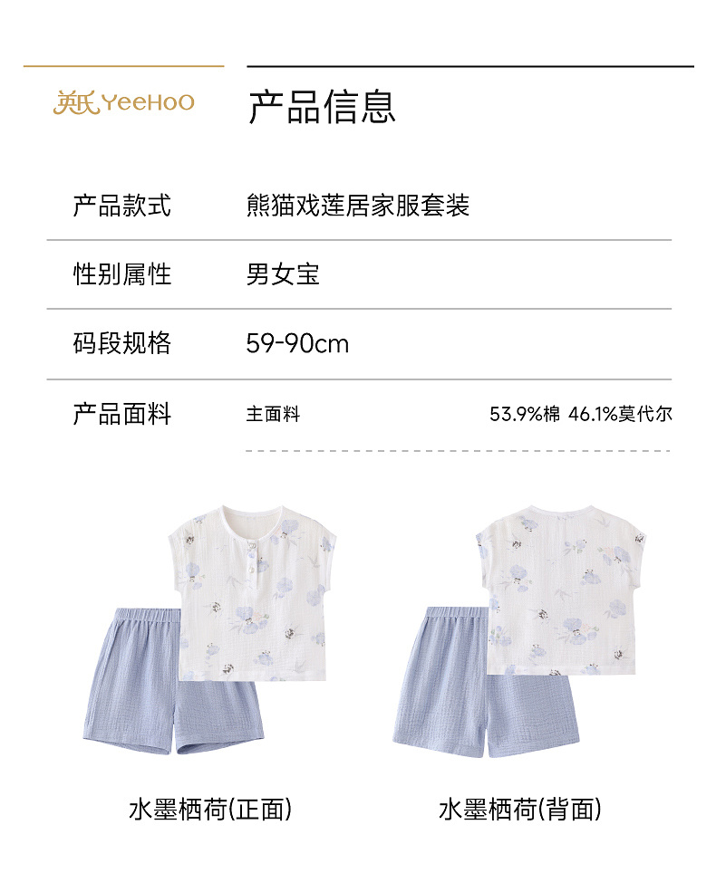 【商场同款】英氏儿童家居服男童女童短袖短裤套装夏季莫代尔新款