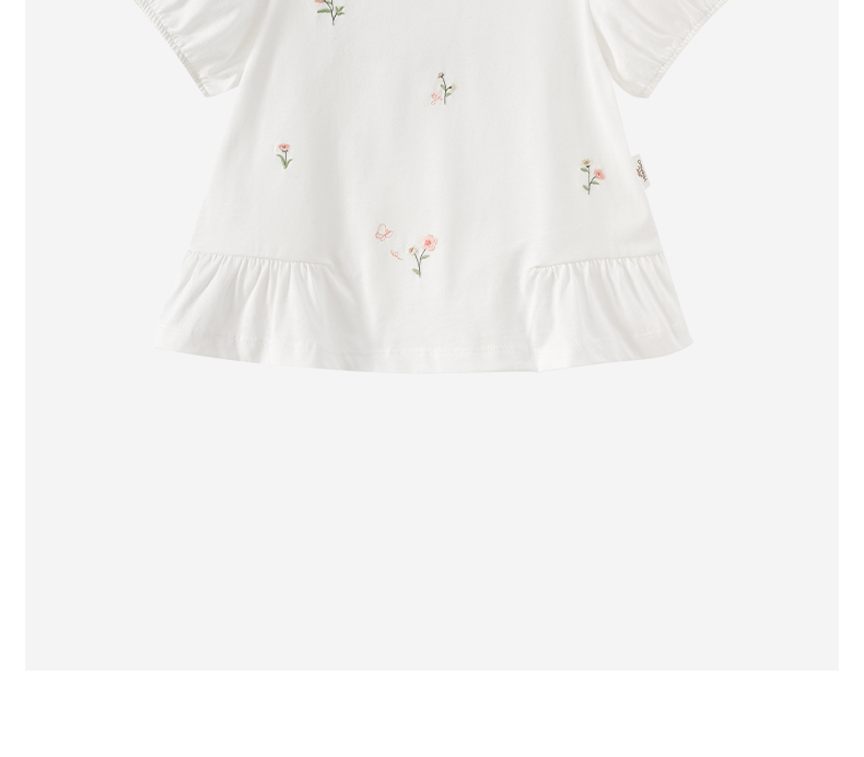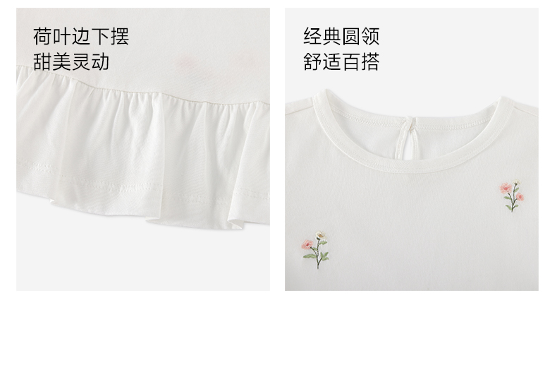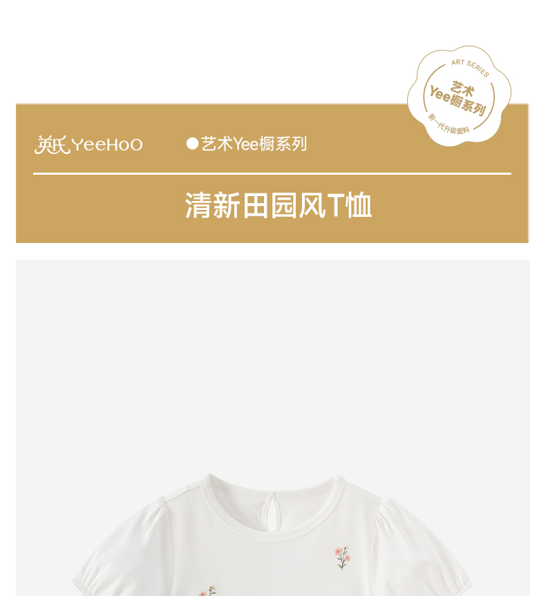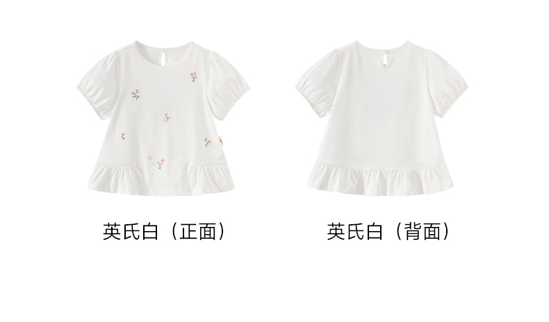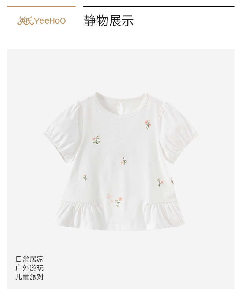 【商场同款】英氏女童上衣夏季2026新款女宝宝短袖圆领绣花T恤衫