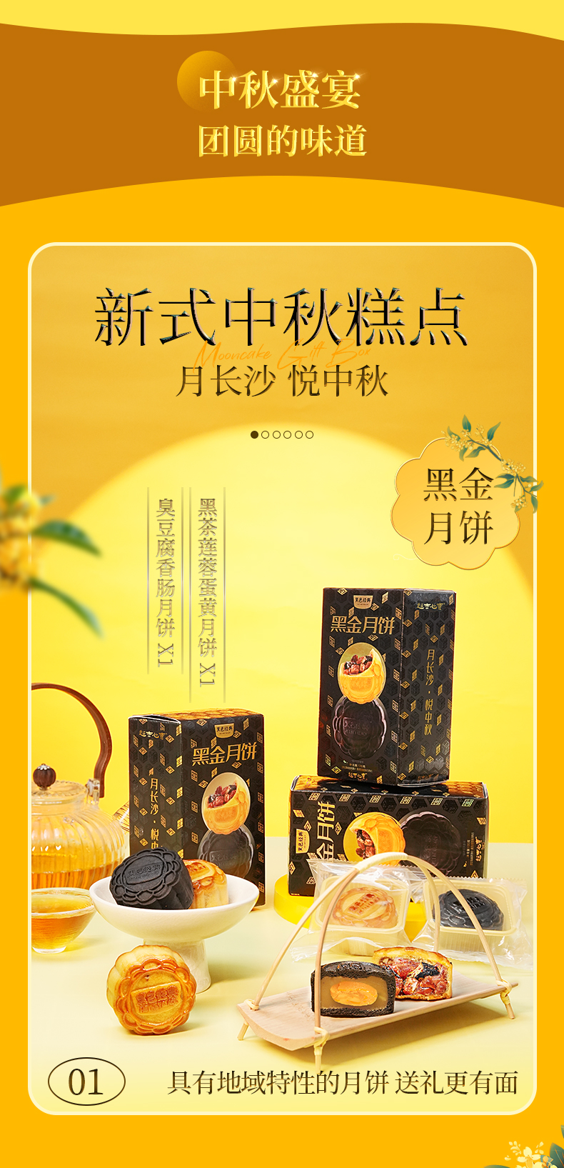 【中秋礼盒】黑色经典2024喜提中秋悦黑金月饼特产礼盒共1396g 送亲友送同事地域特产