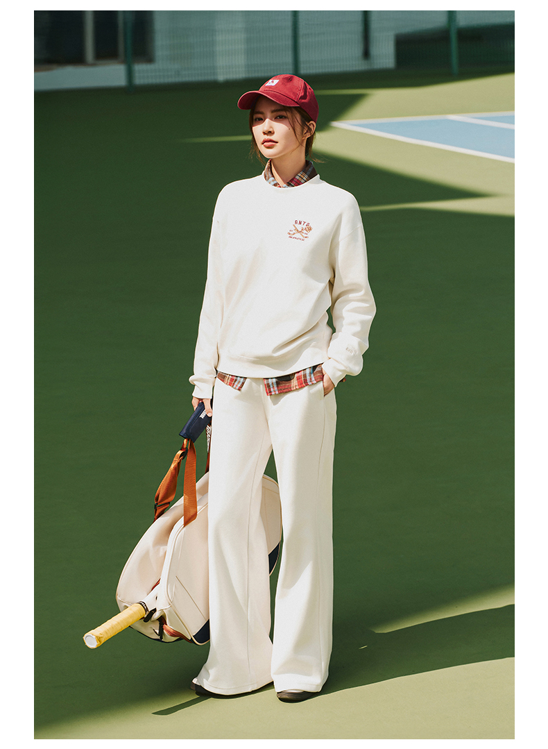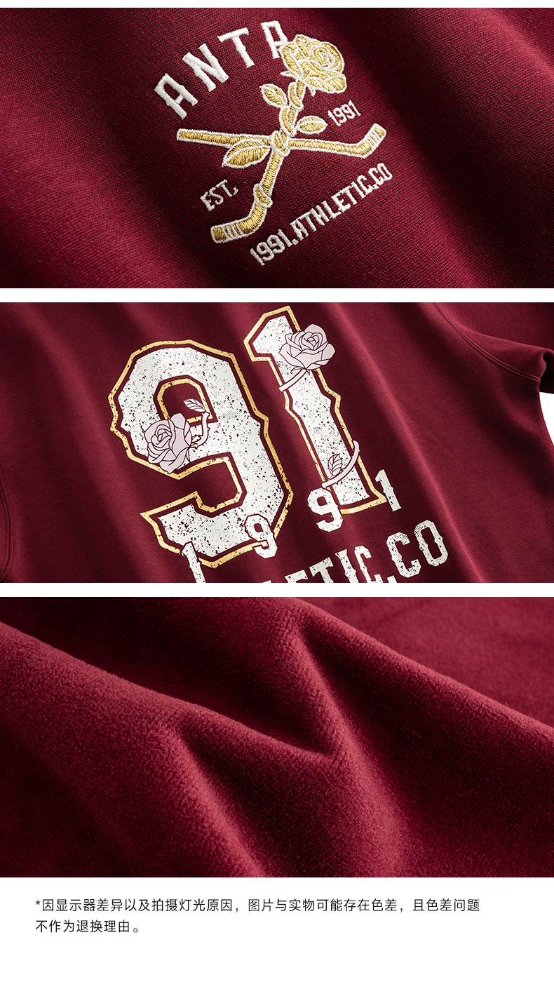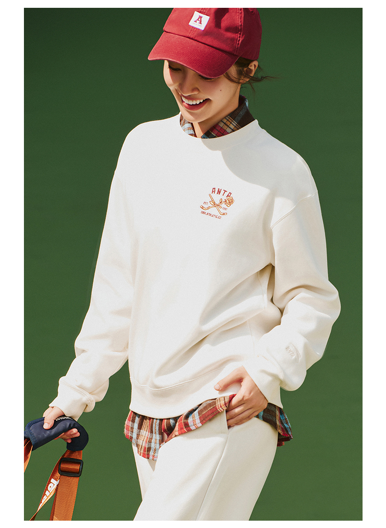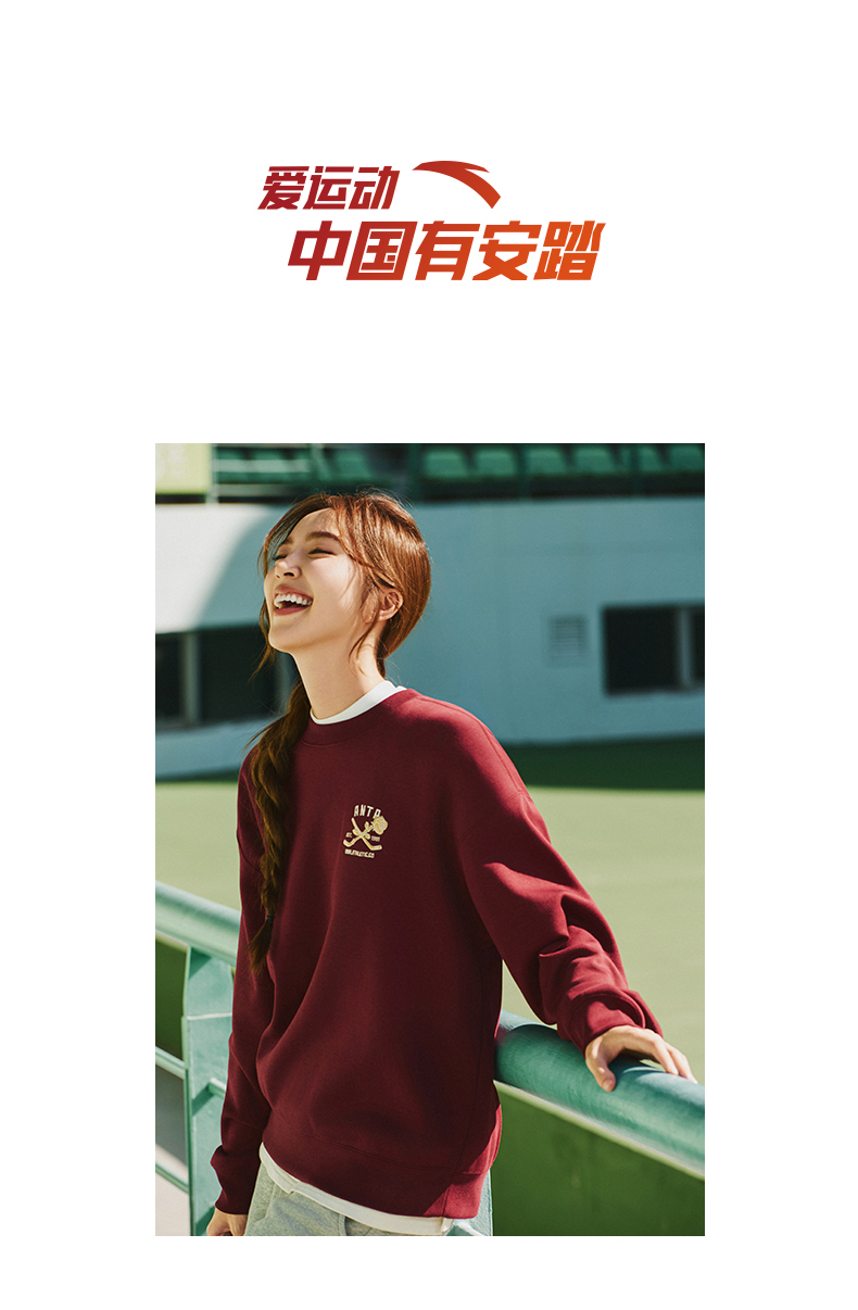 安踏落肩运动卫衣女冬季新款宽松圆领加绒休闲长袖上衣162548704N