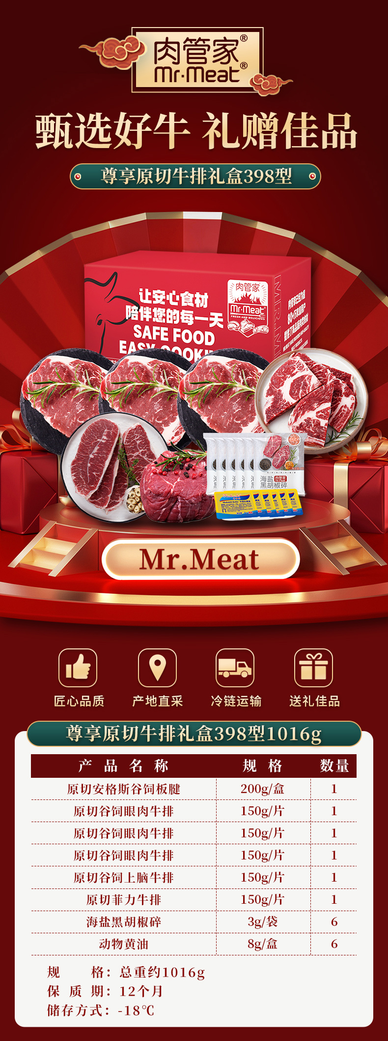 【直送到家】1016g肉管家Mr.Meat尊享原切牛排礼盒